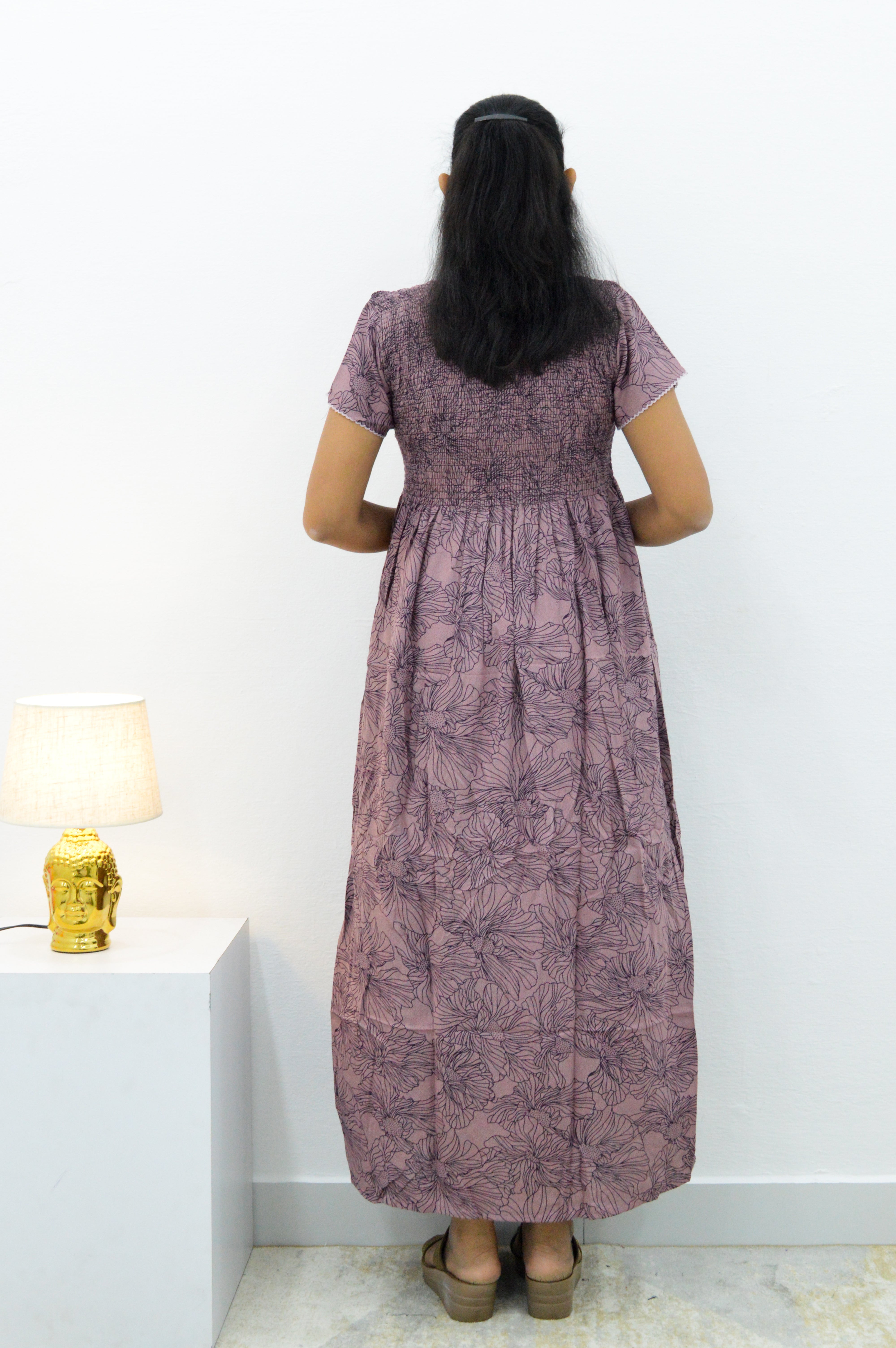 ALPINE Smocking Nighty | Beautiful Pleated Design | Side Pocket | Stylish Nighty for Trendy Women's | Your Perfect Nightwear Collection's (SAP)