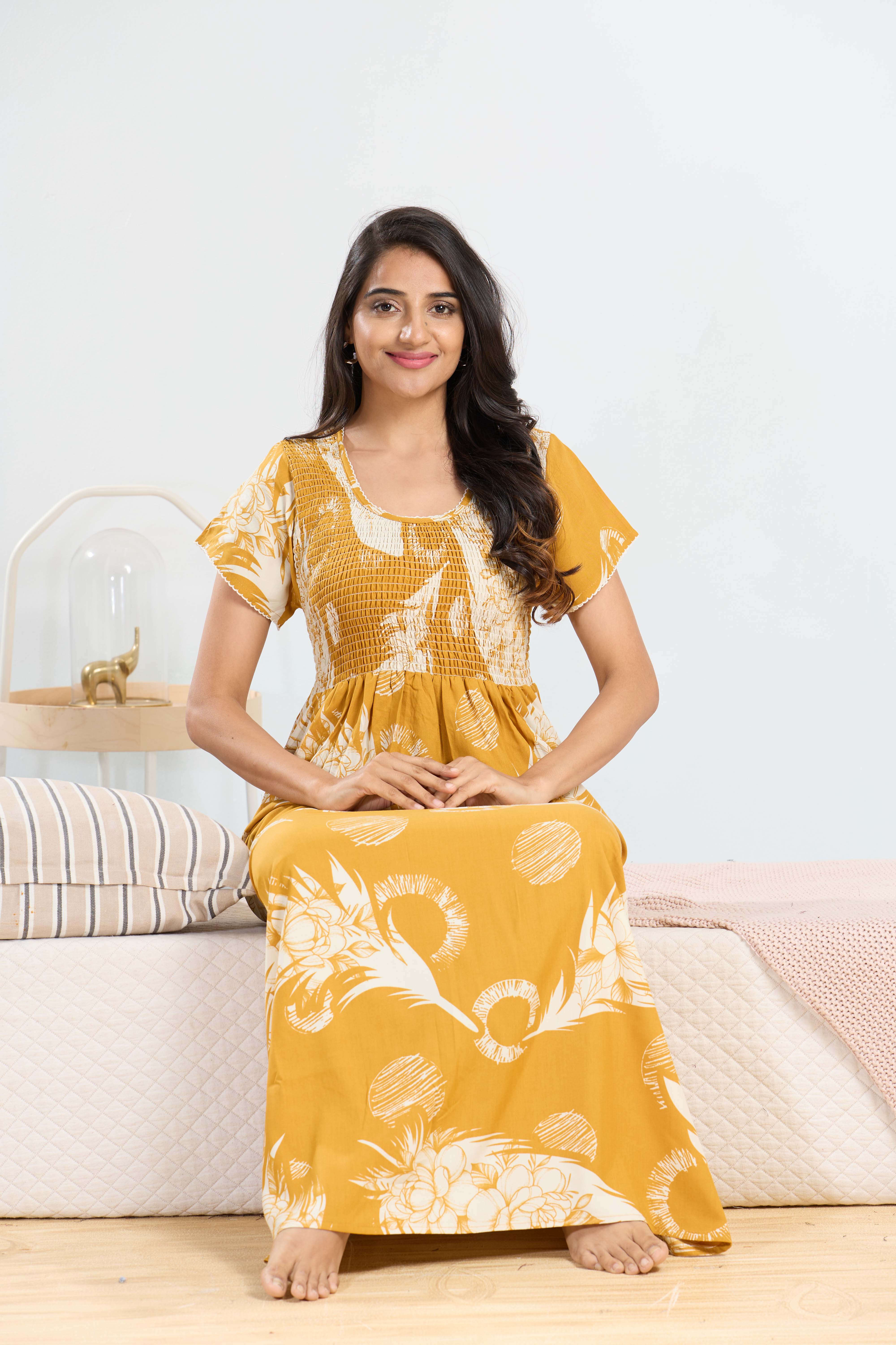MANGAI RAYON Smocking Nighty | Beautiful Pleated Design | Side Pocket | Stylish Nighty for Trendy Women's | Your Perfect Nightwear Collection's (SRN)