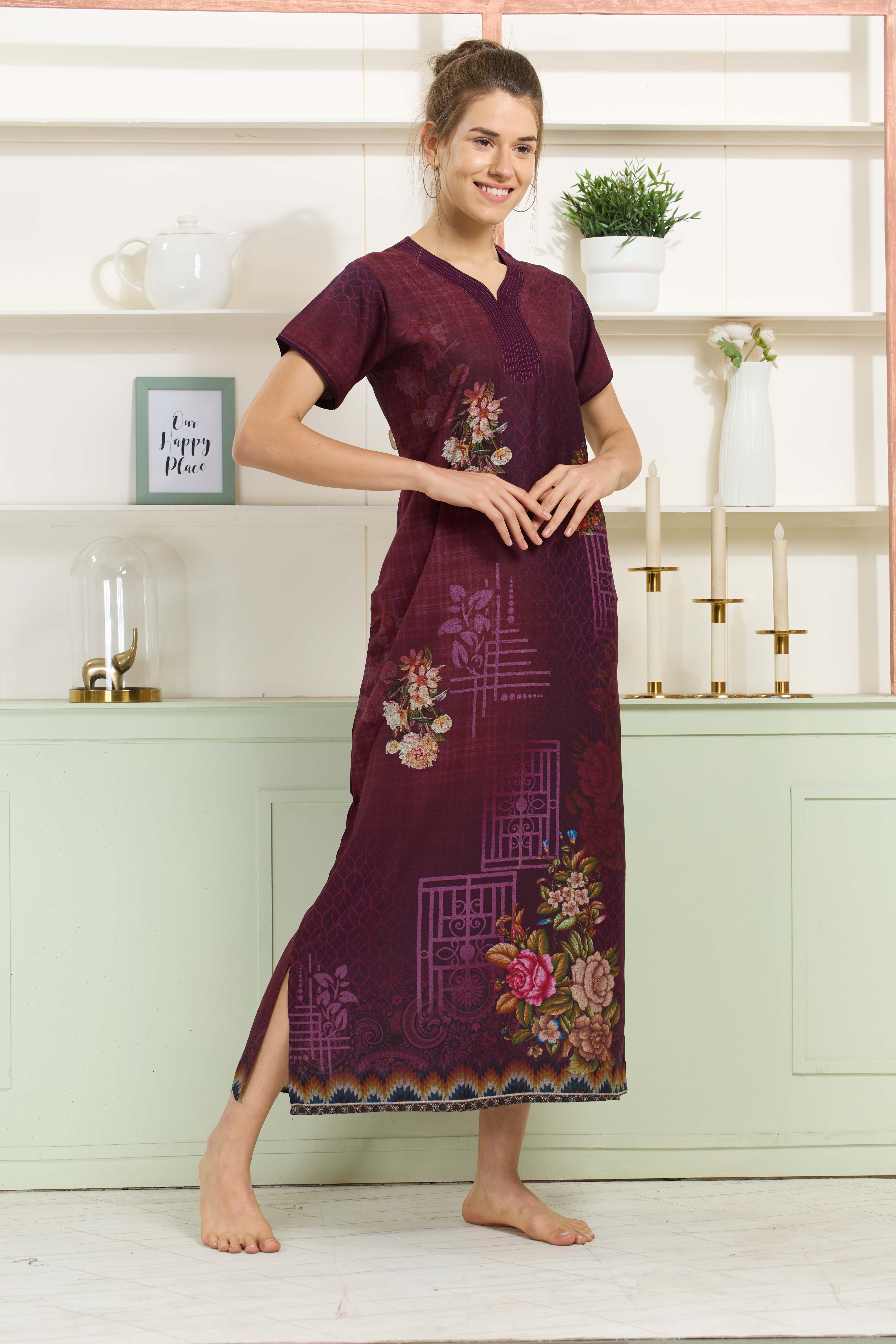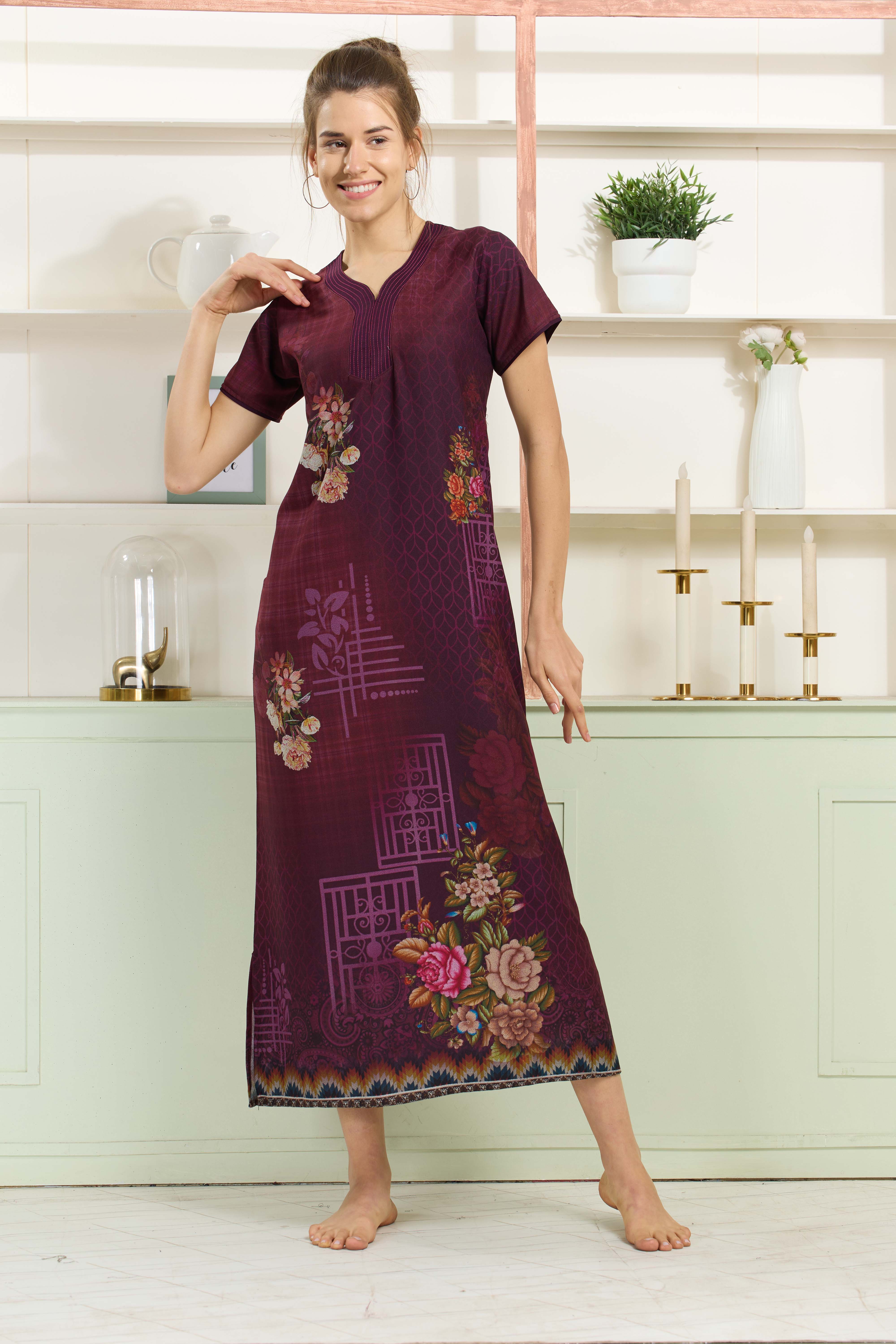 MANGAI Colourful Digital Panel Printed Alpine Fancy Nighty |All Over Print | Half Sleeve | Zipless Model | Side Pocket | Premium Night Wear (AFK)