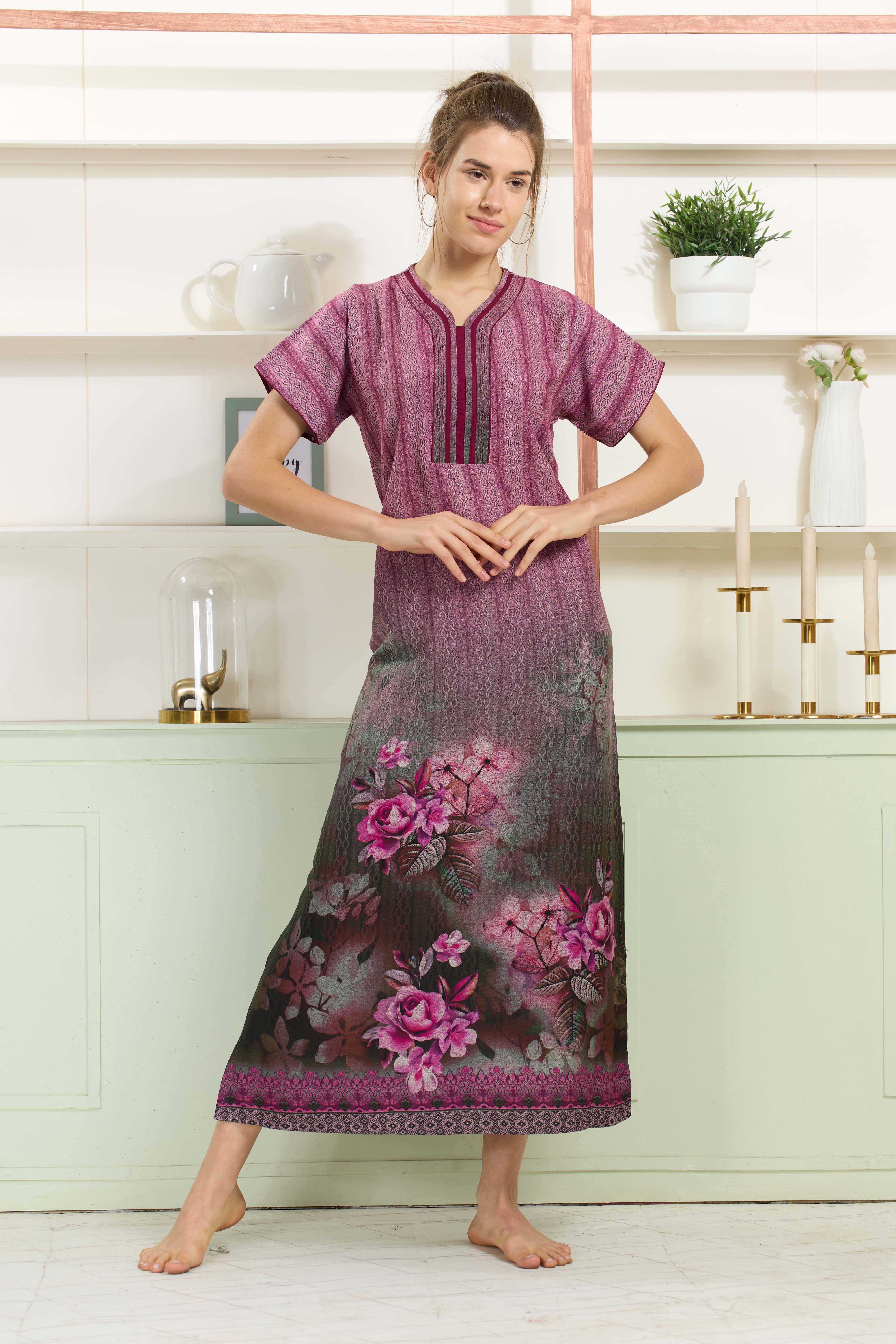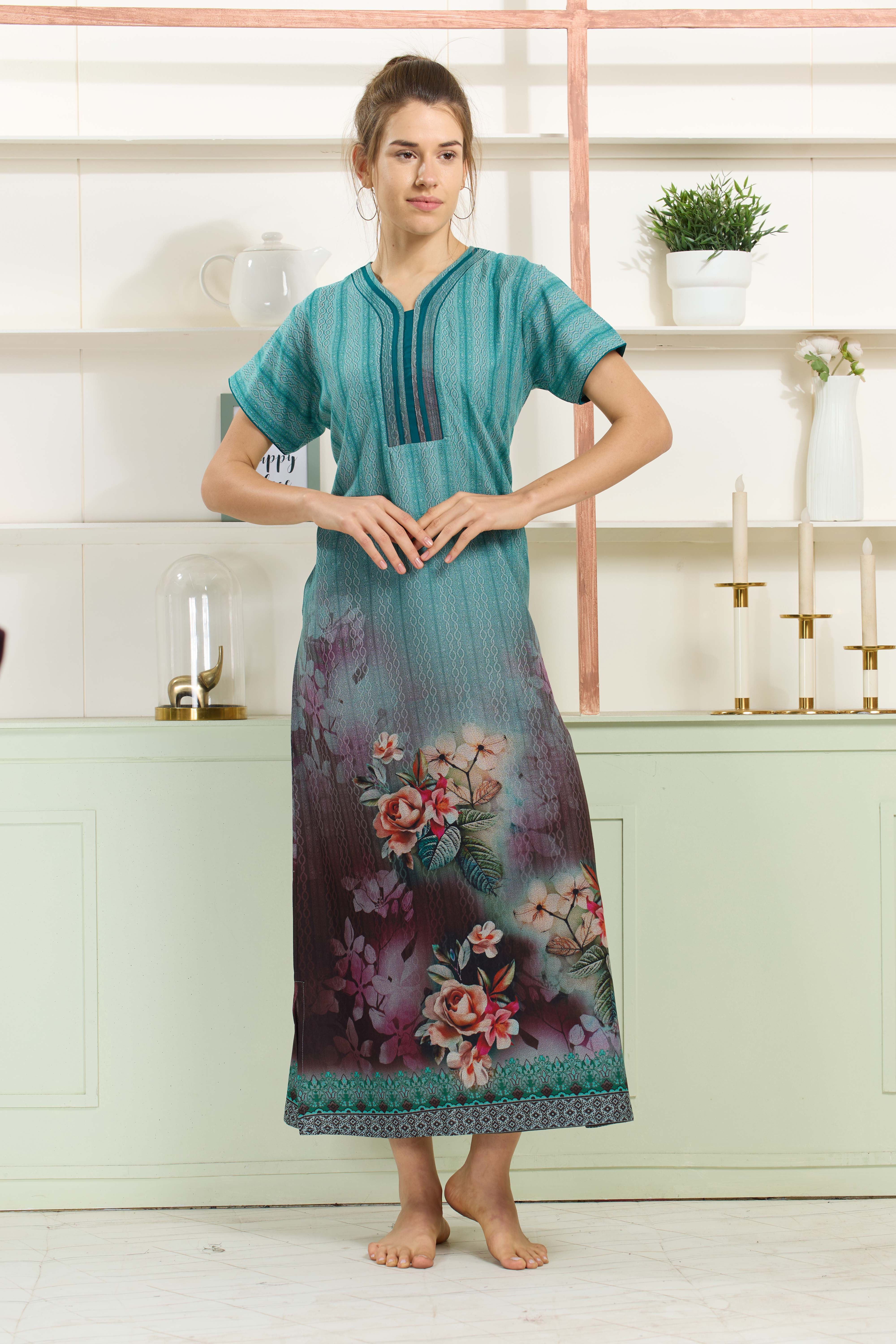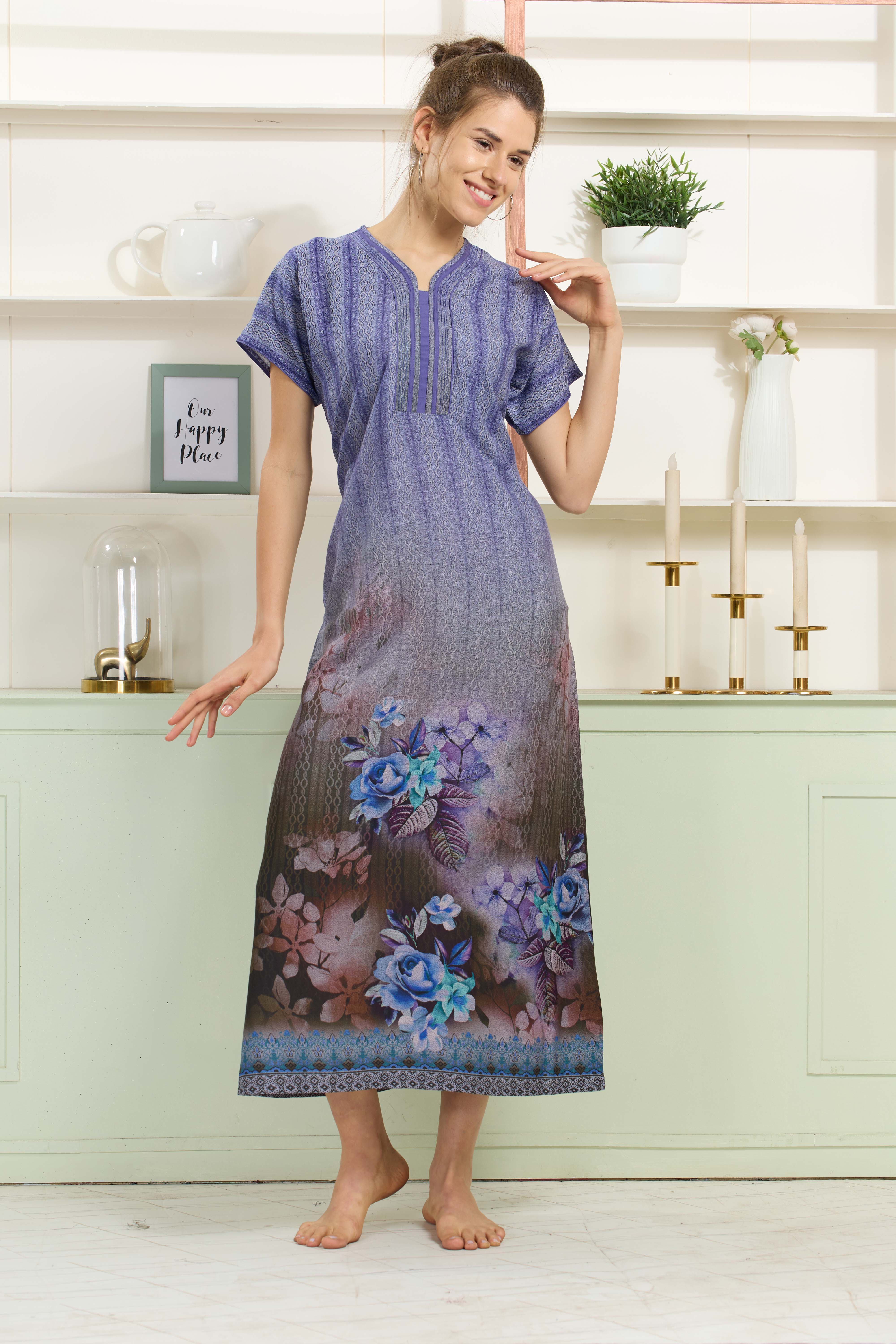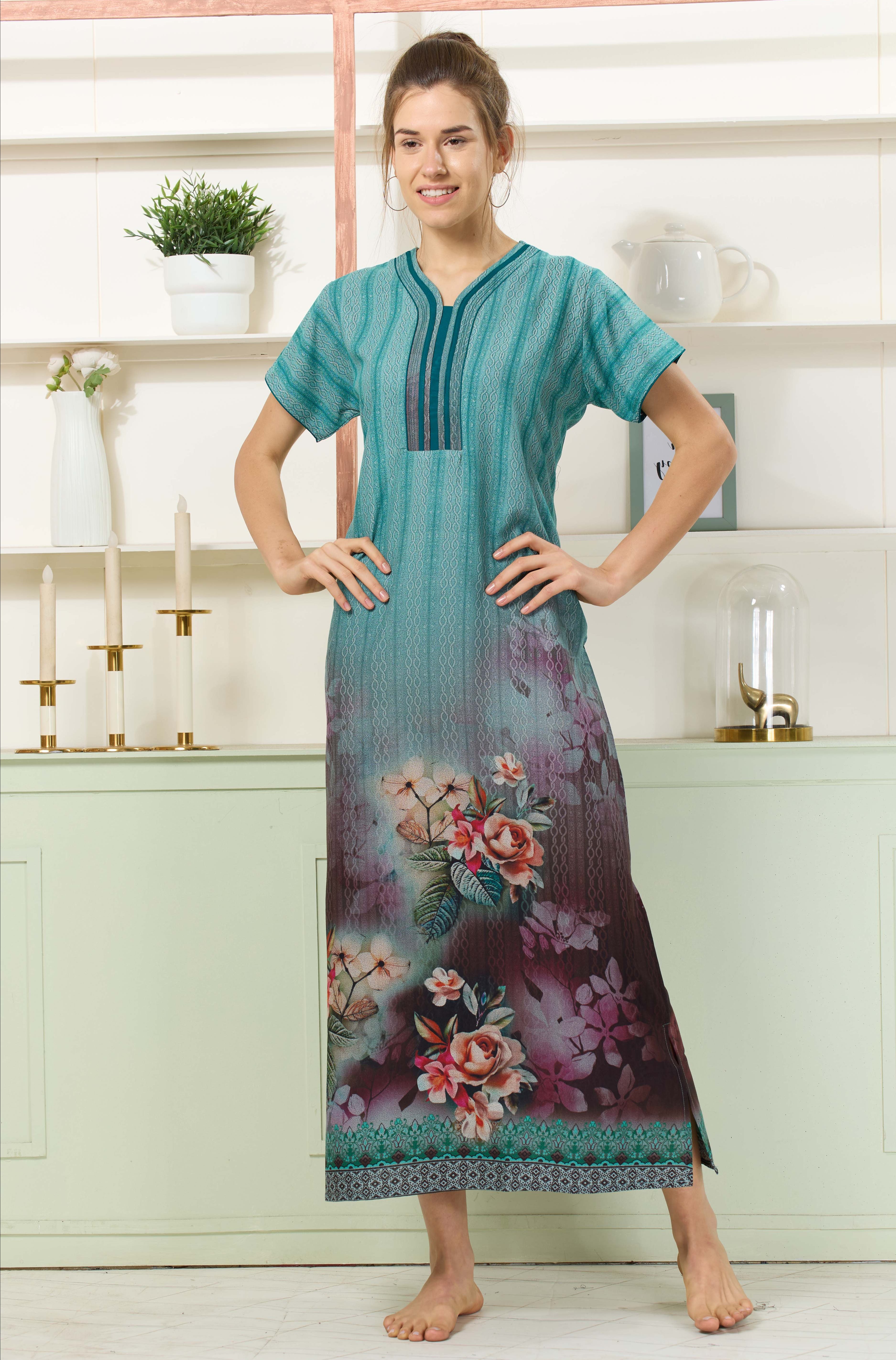 MANGAI Colourful Digital Panel Printed Alpine Fancy Nighty |All Over Print | Half Sleeve | Zipless Model | Side Pocket | Premium Night Wear (AFK)