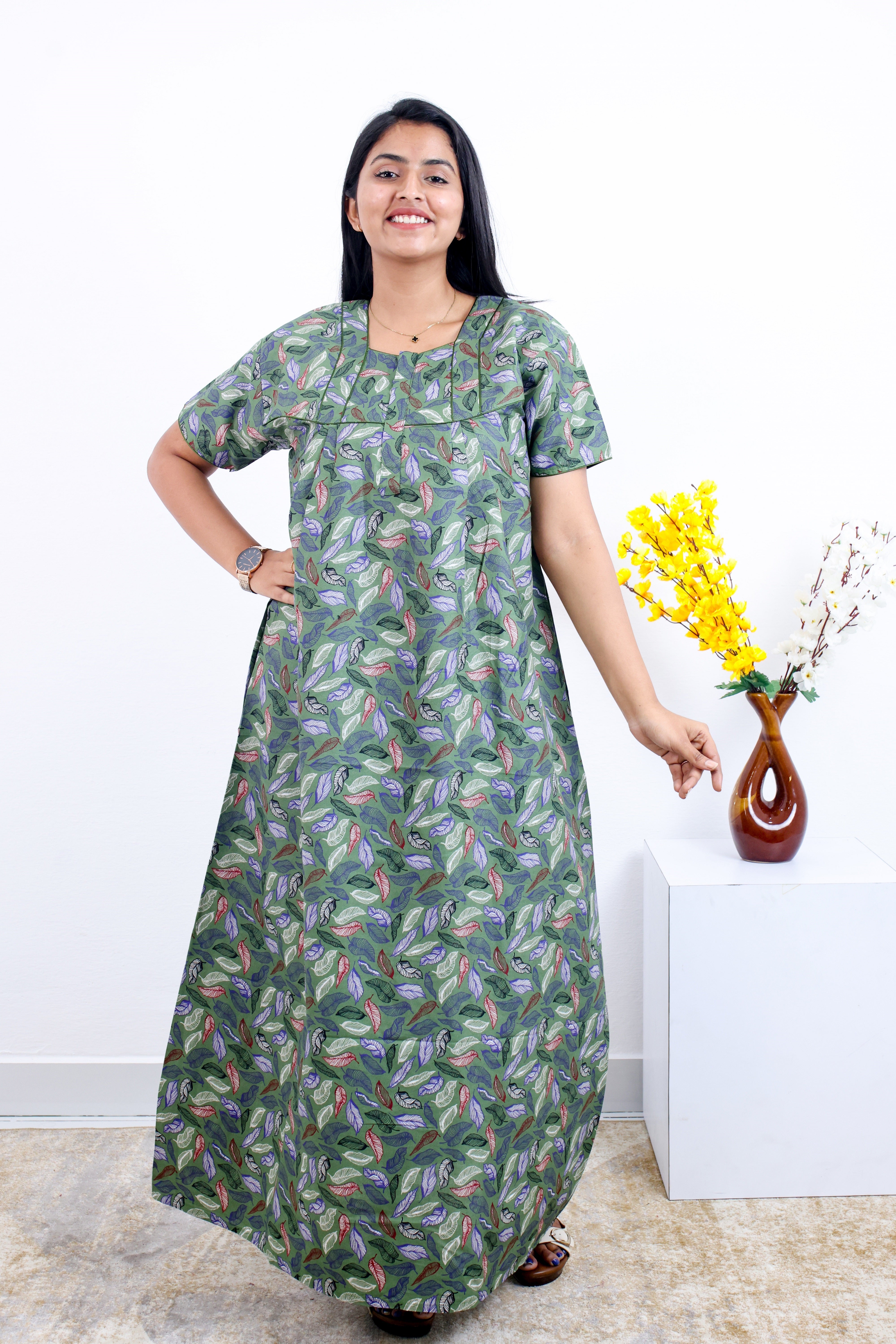 Upgrade your sleepwear collection with this beautiful and comfortable MANGAI cotton nighty. Order yours today!