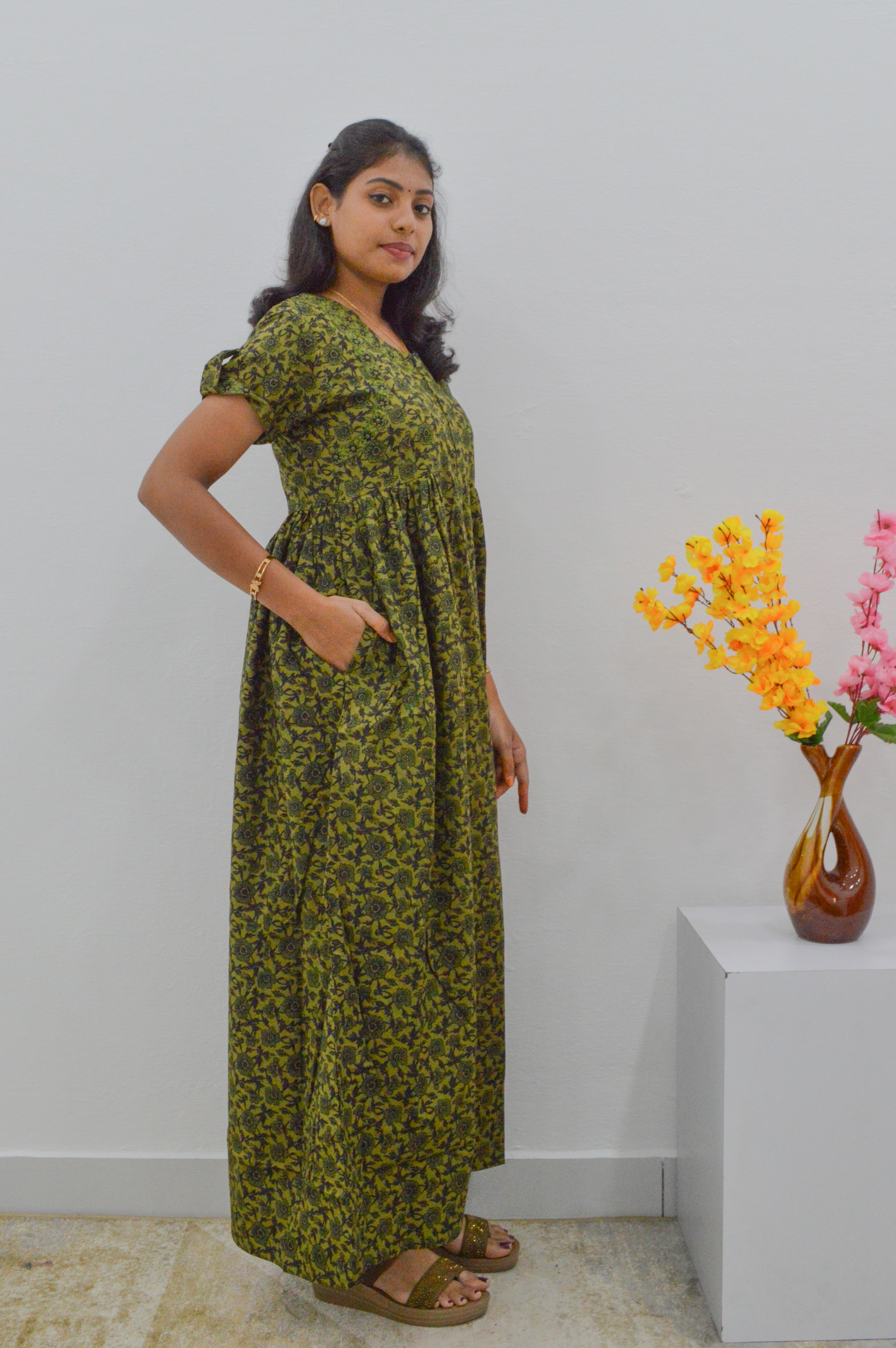 Elevate your everyday style with the MANGAI Premium Cotton Frock Nighty. This versatile piece is perfect for both casual wear and pregnancy. The elegant pleated design and soft cotton fabric make it comfortable and stylish.