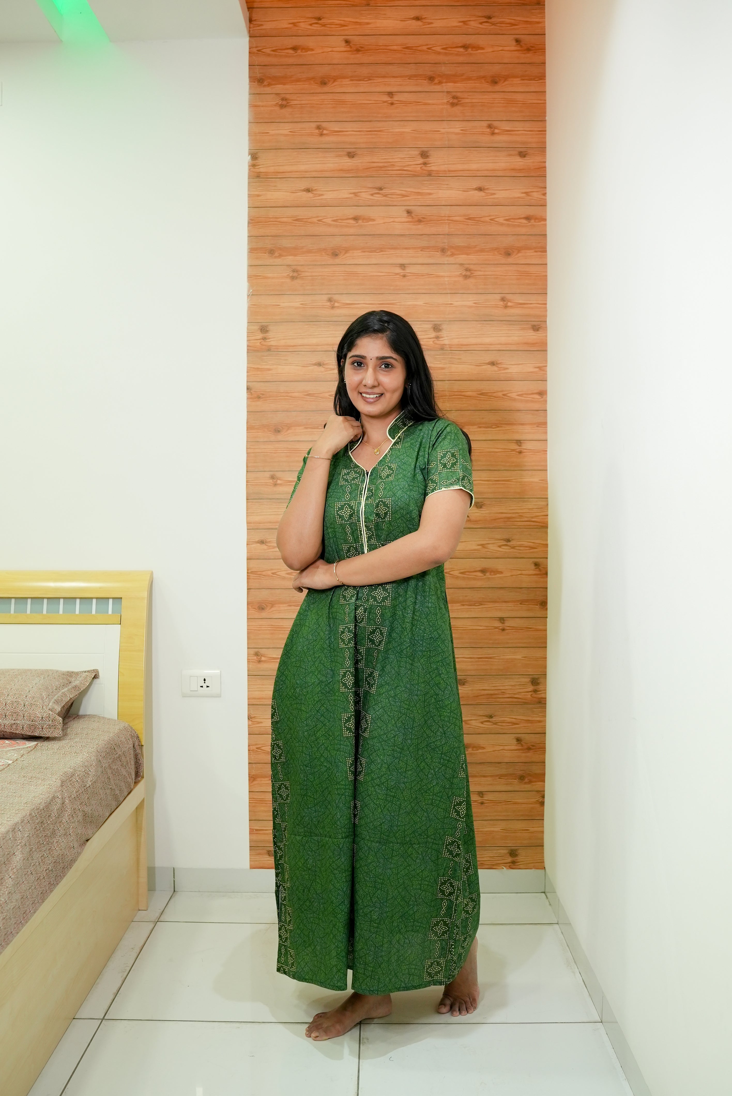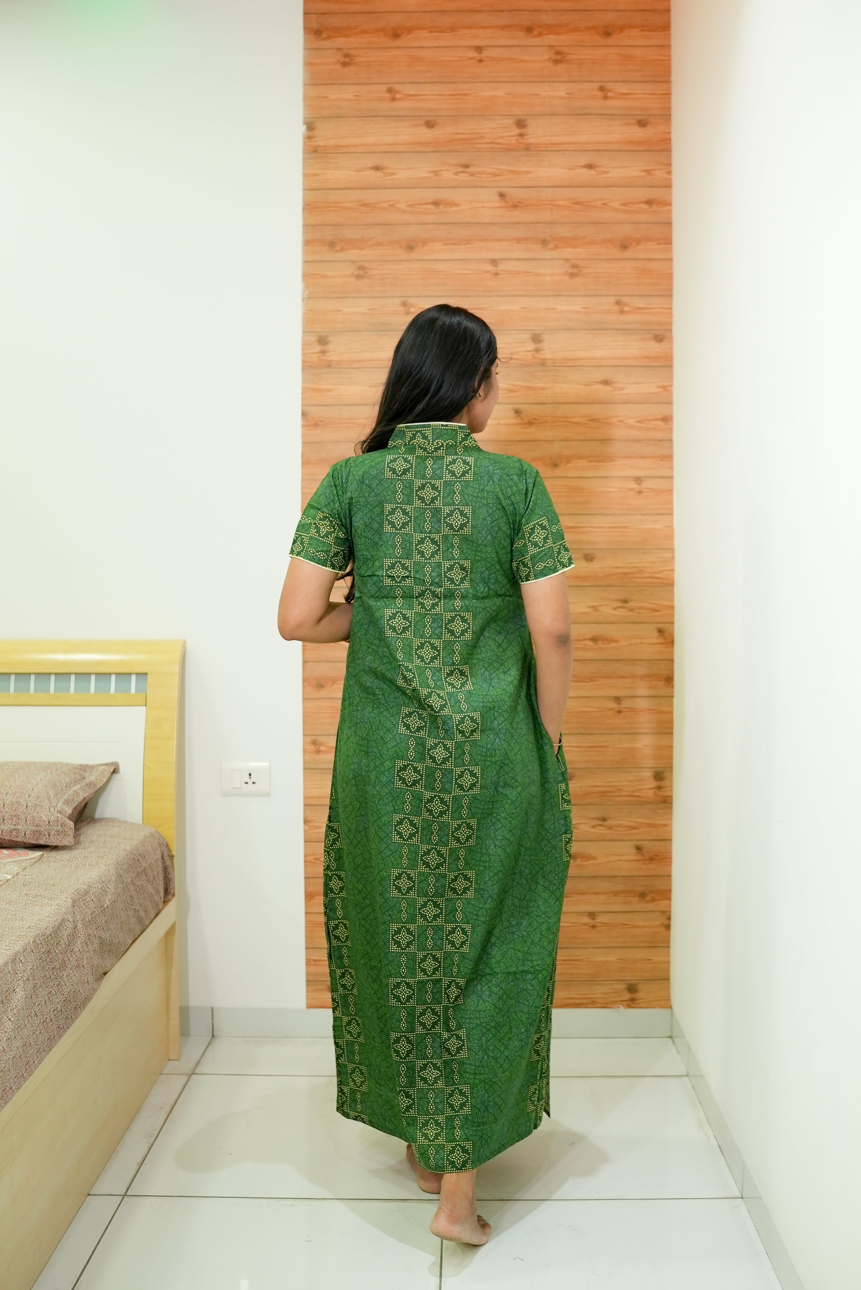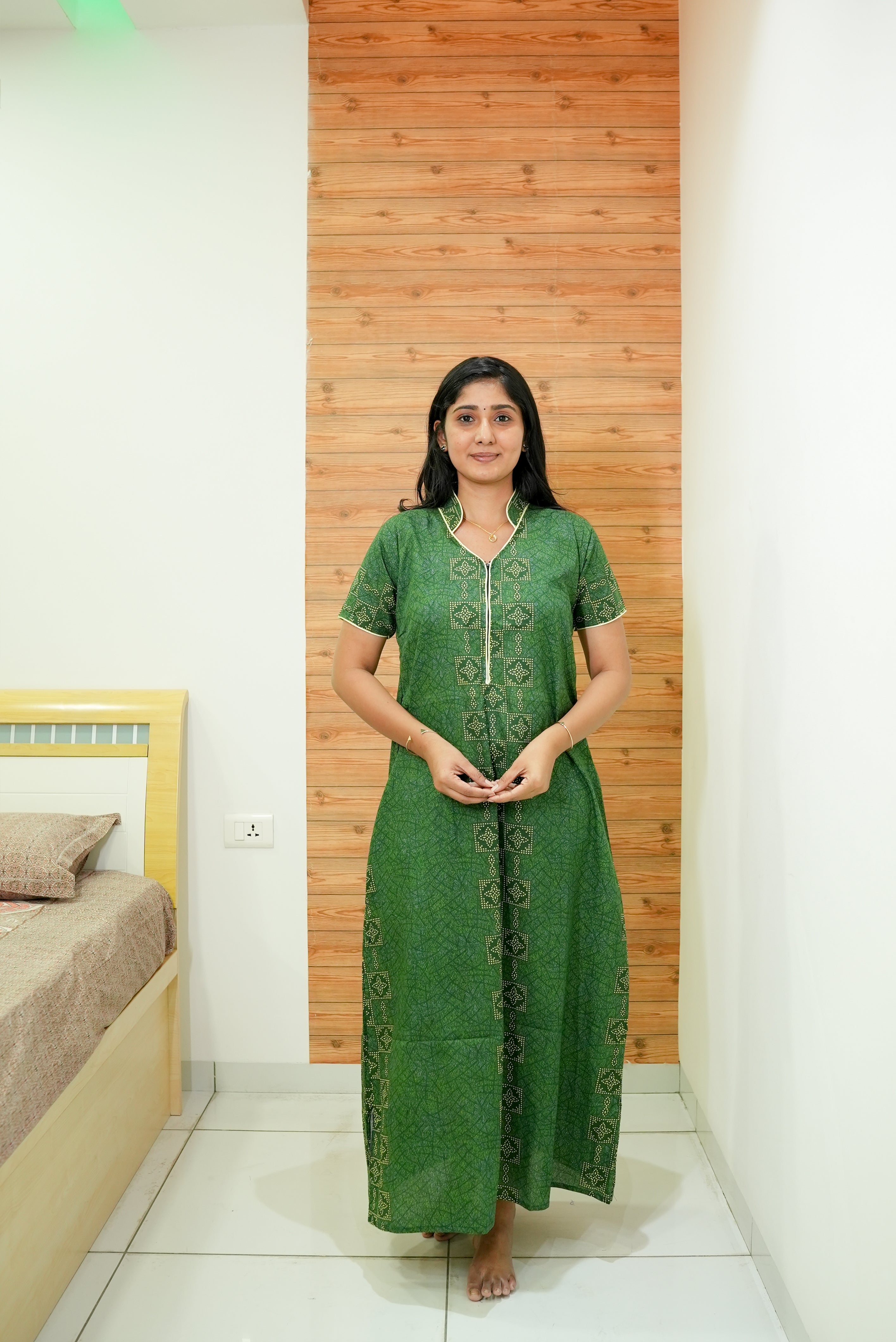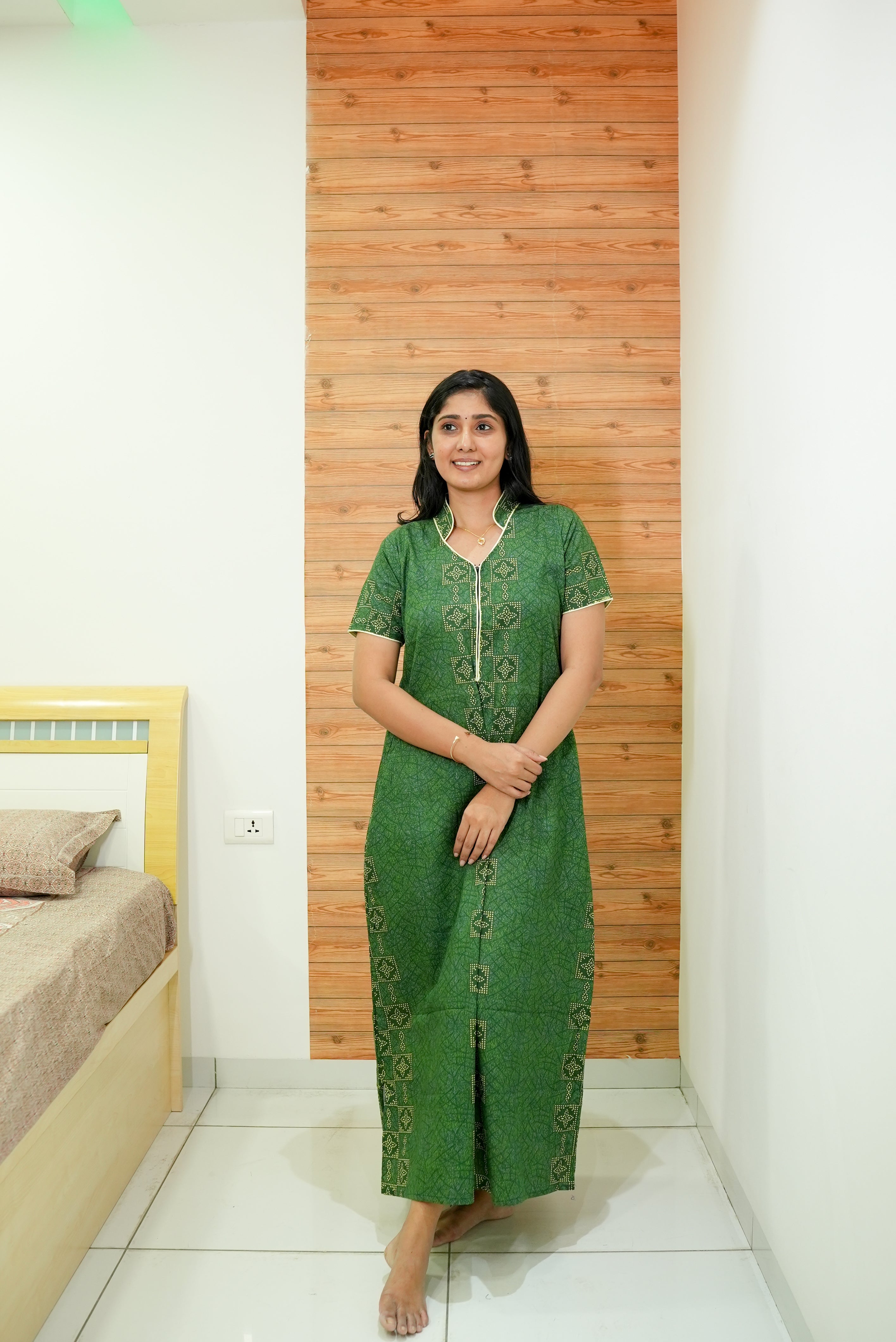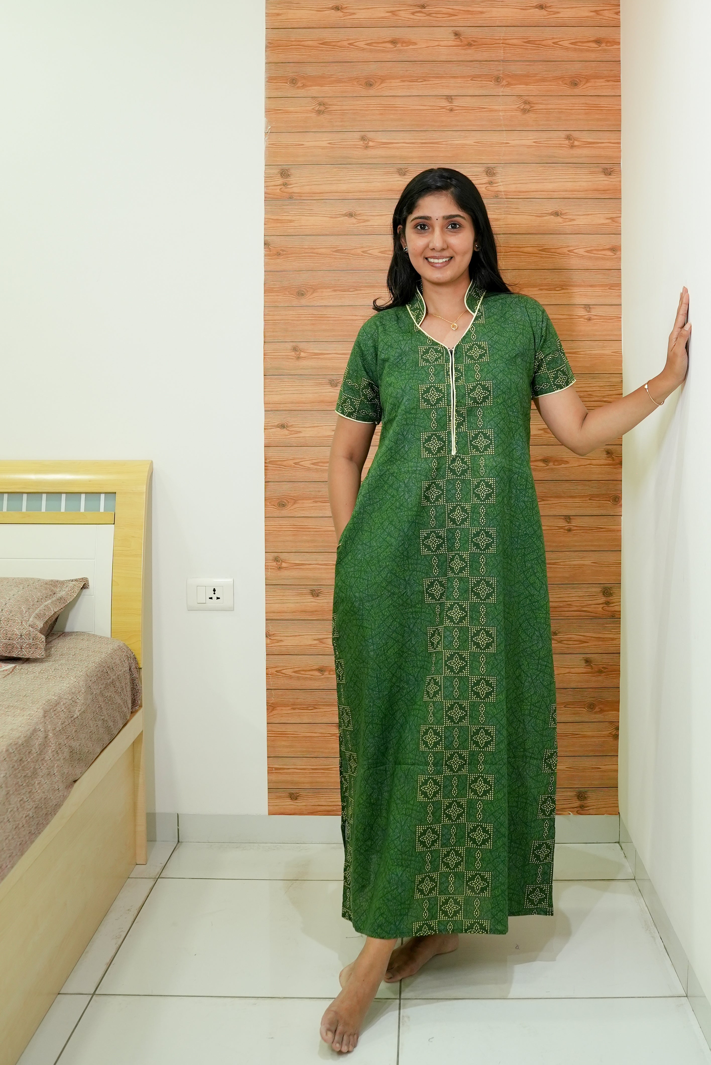 MANGAI Daily Wear Casual Comfort Fit Cotton Printed Nighties | Front open Zipper Model| Slit Open & Neck Collar Comfort Fit Daily Wear Nighties (DRN)