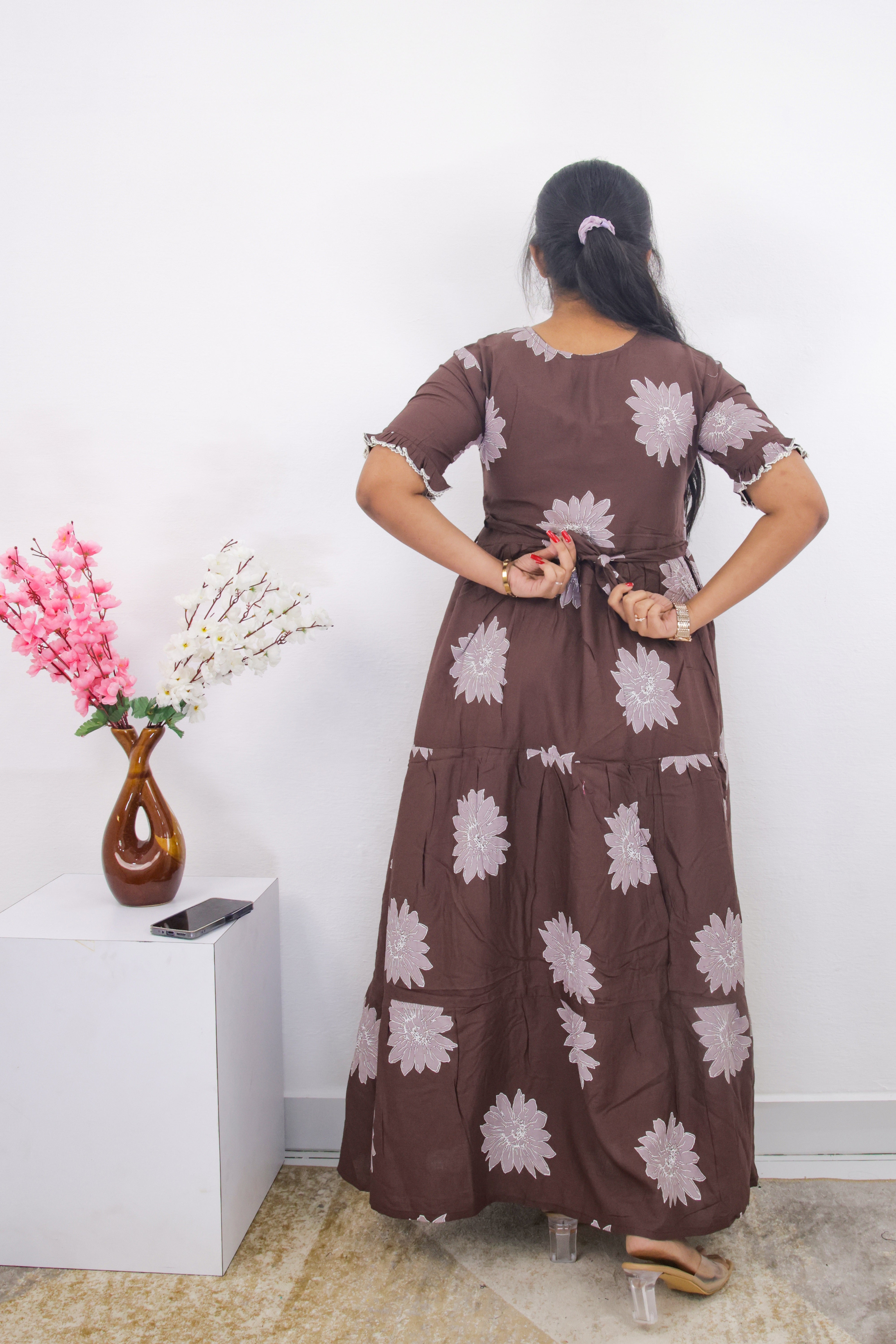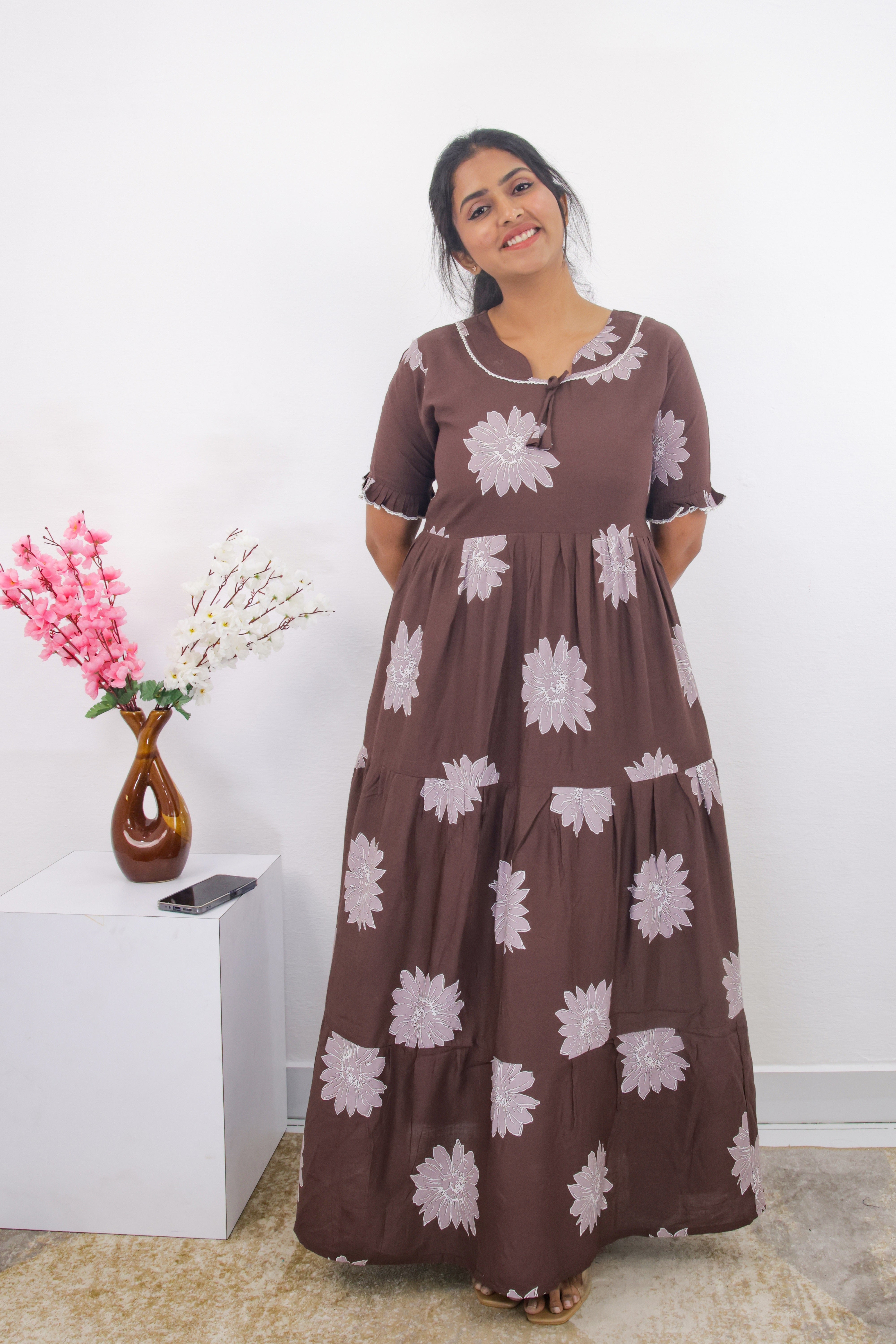 Mangai 3 Layer Frock Model Nighties Soft and Smooth Premium Quality Rayon Material , Fancy Frilled Sleeve, Side Pocket , Back tie Rope , Stylish Collection's for Trendy Women's (MRK)