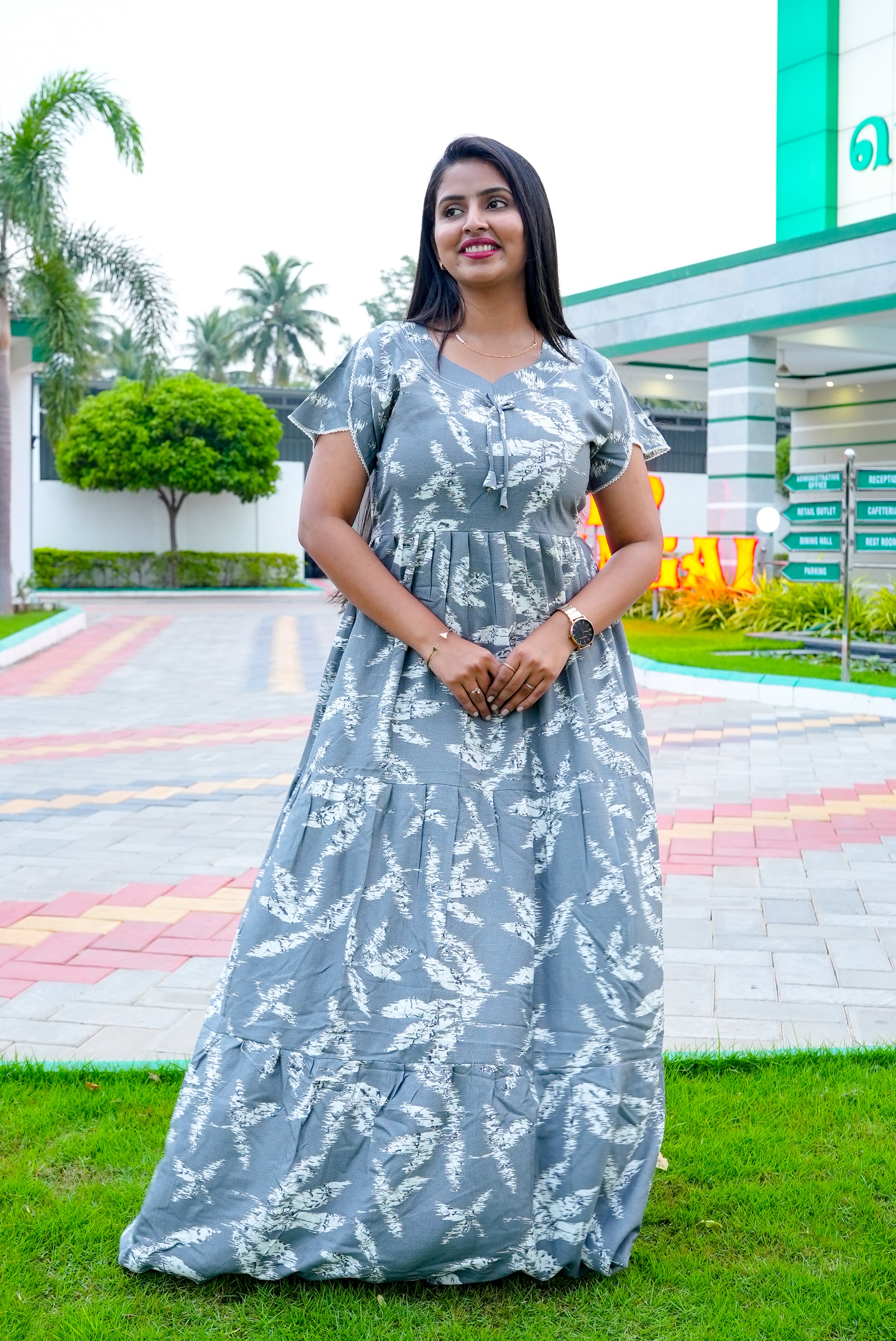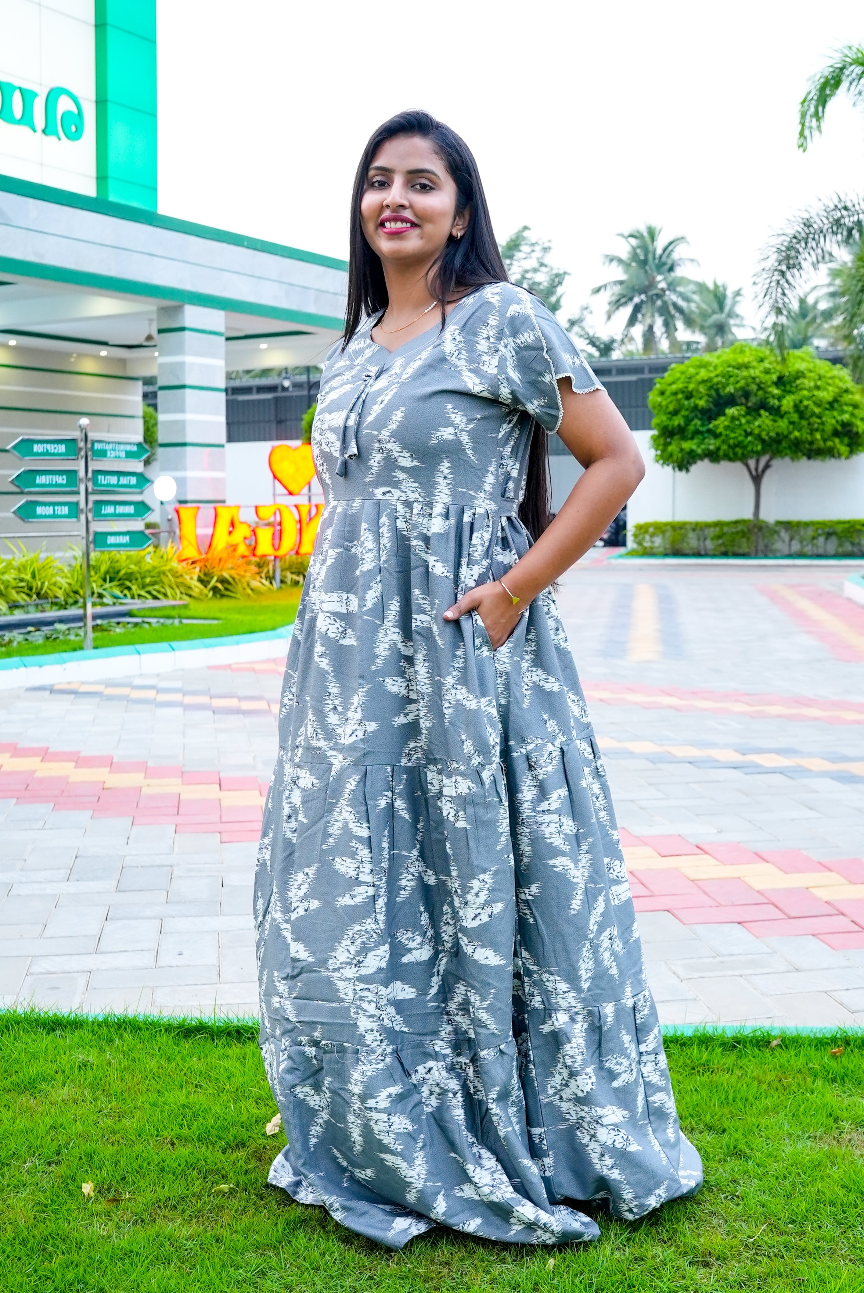 Stylish Alpine 3 Layer Frock Model Nighties| Fancy Sleeves & Neck Pattern| Side Pocket with Back Tie Rope | Perfect Nightwear Trendy Women's (AFK)