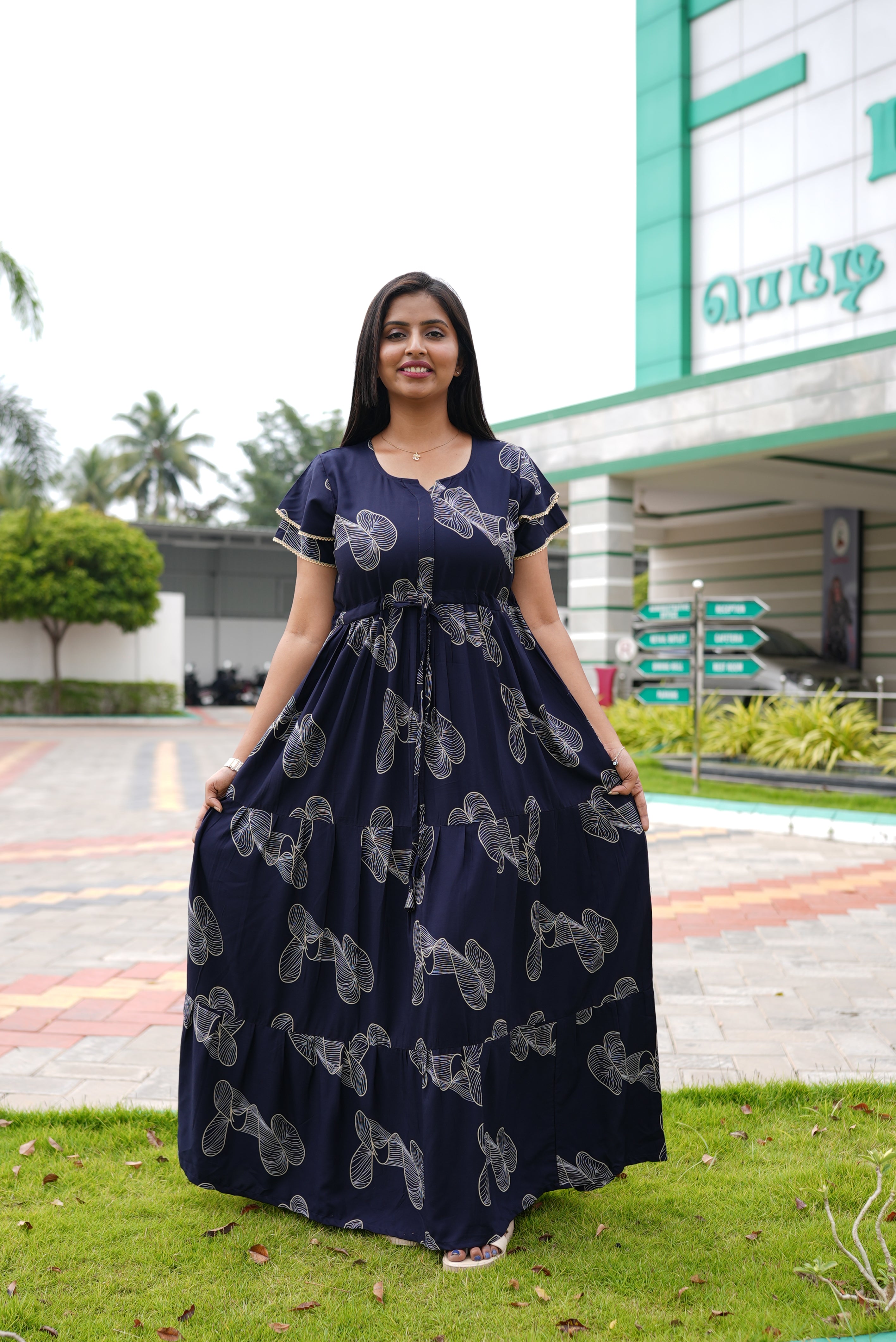 Stylish Arrivals – Rayon Gathering Flared Frock Model Night Gown