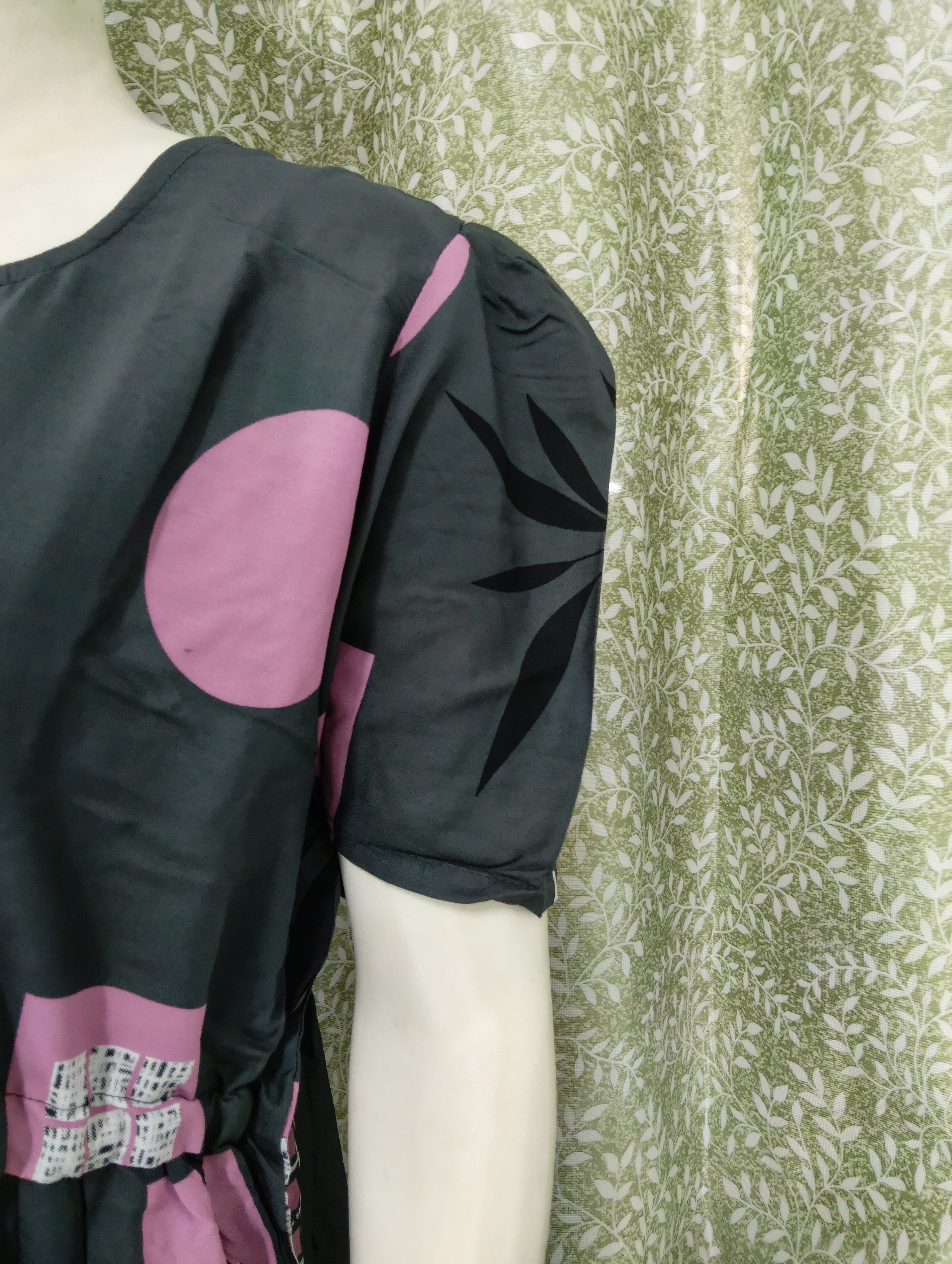 Gathering Frock Style: The gathering detail likely provides a flattering, relaxed fit with a slightly voluminous silhouette, making it ideal for comfort and style.