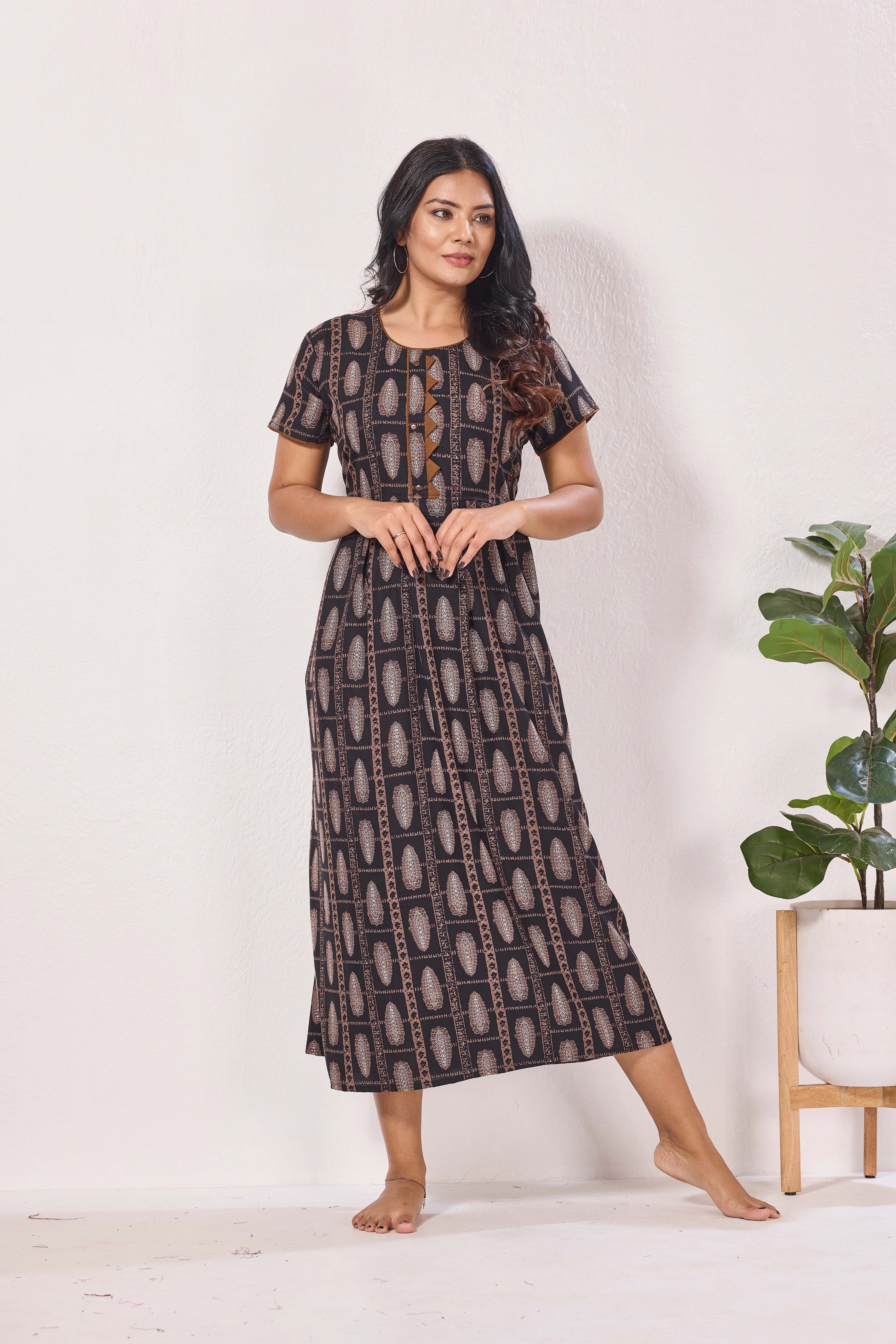 Alpine KURTHI Style Nighties| Fancy Half Sleeve | Zipless Model | Stylish Round Neck | Updated Collection's for Stylish Women AK (H/S)