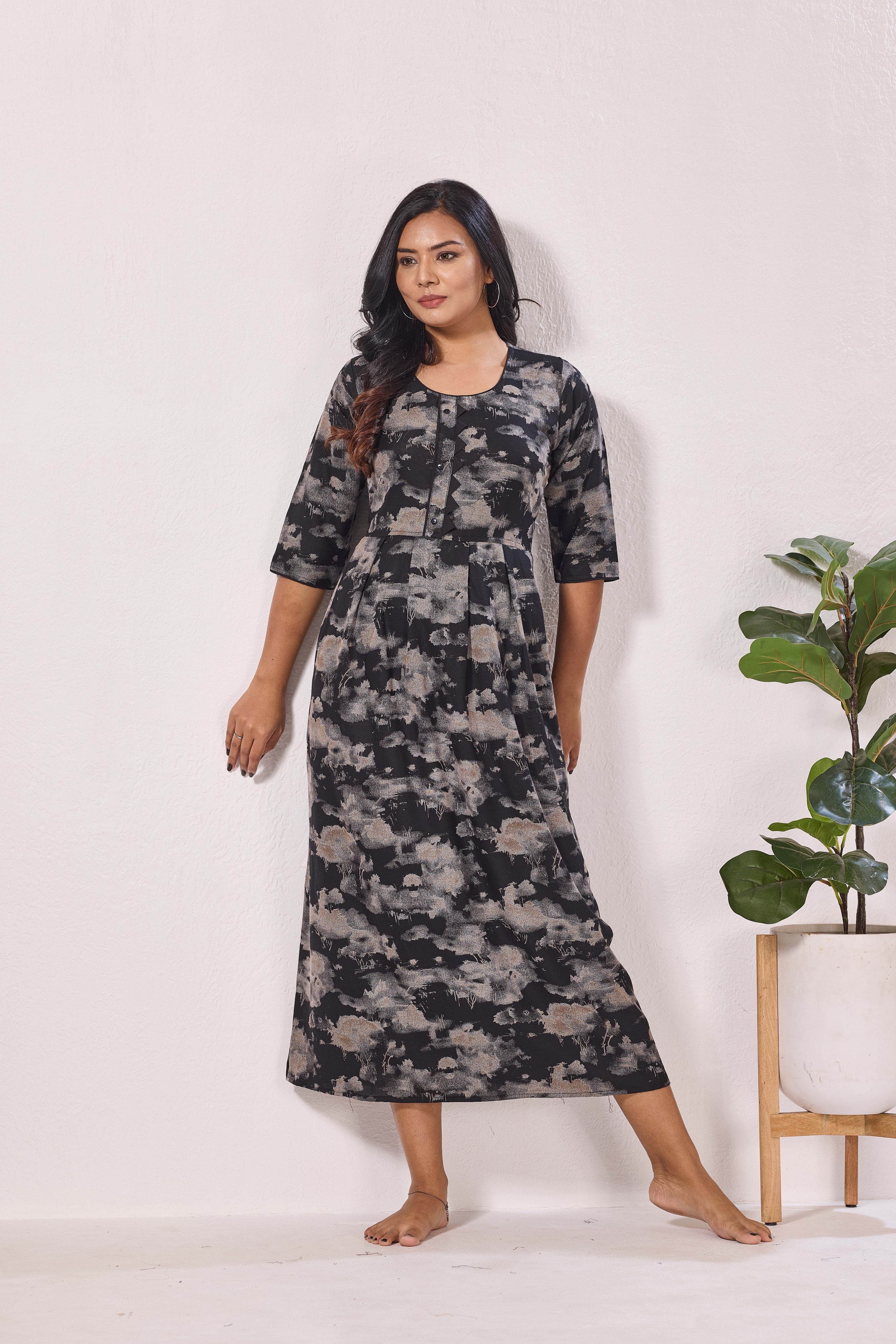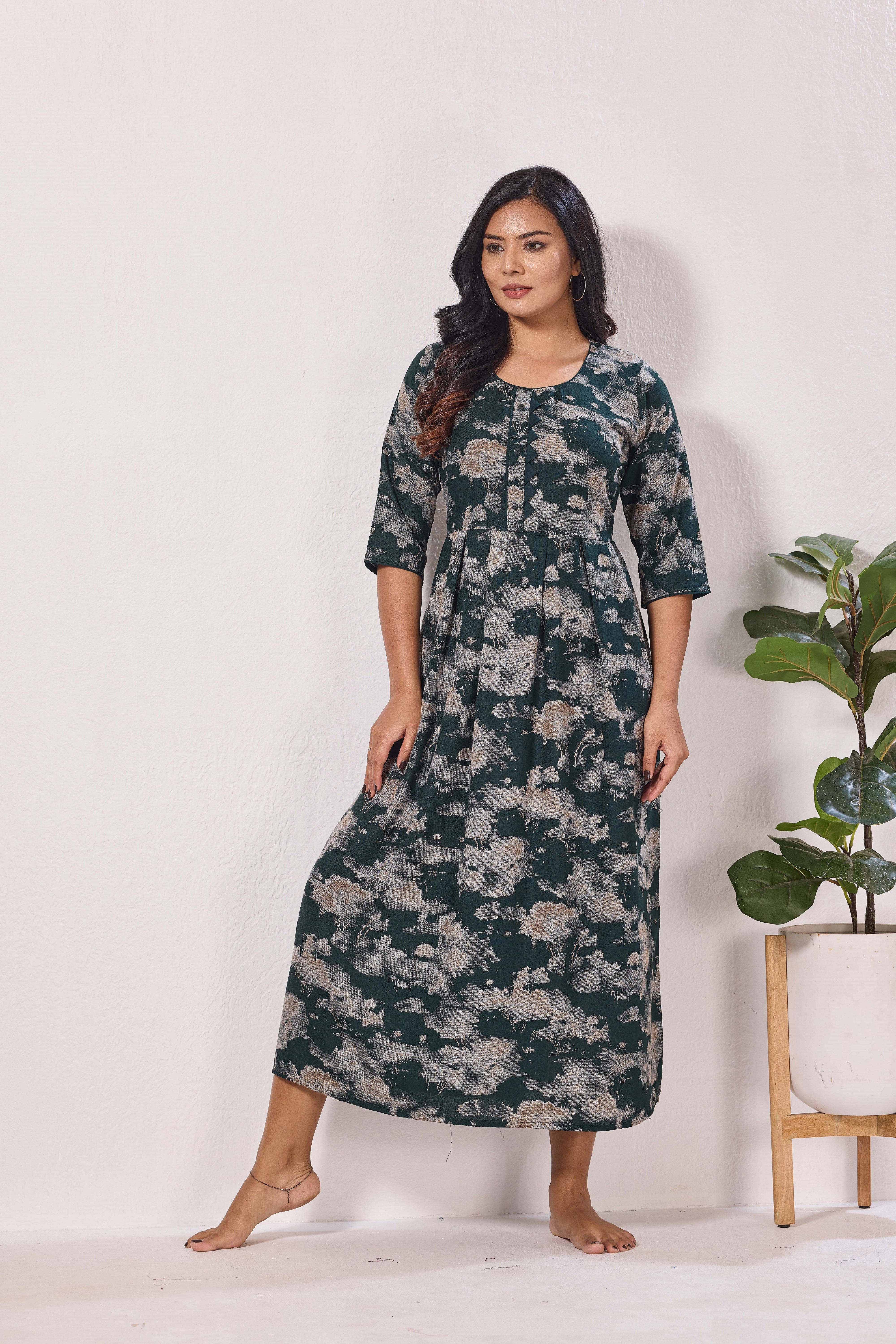 Experience the ultimate in comfort and style with the MANGAI Alpine Kurti Style Nighty. This elegant nightwear piece features a beautiful Kurti design with a relaxed fit, making it perfect for a restful night's sleep.