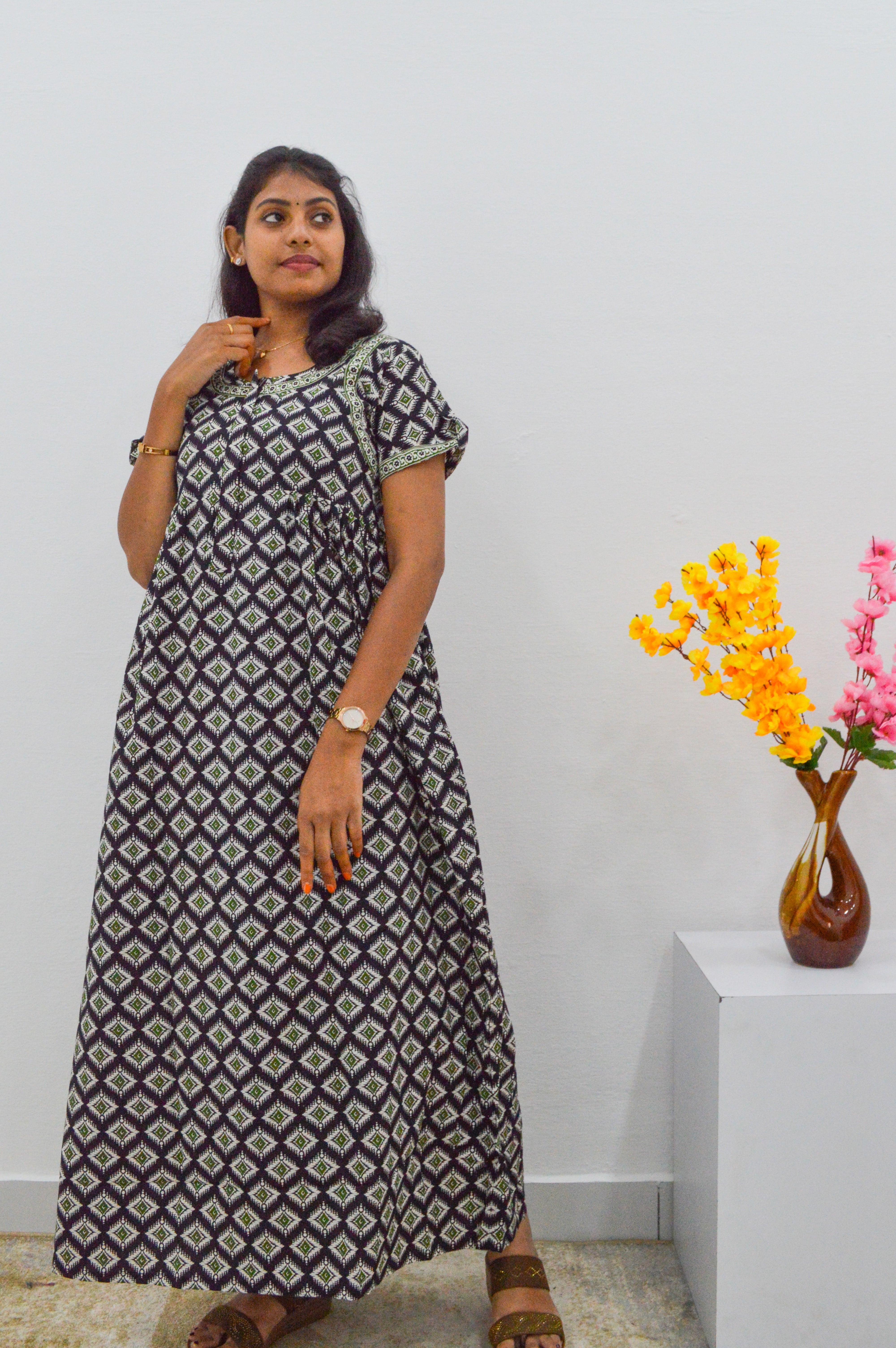 MANGAI Premium Cotton Frock Nighty - Stylish and Versatile Nightwear.