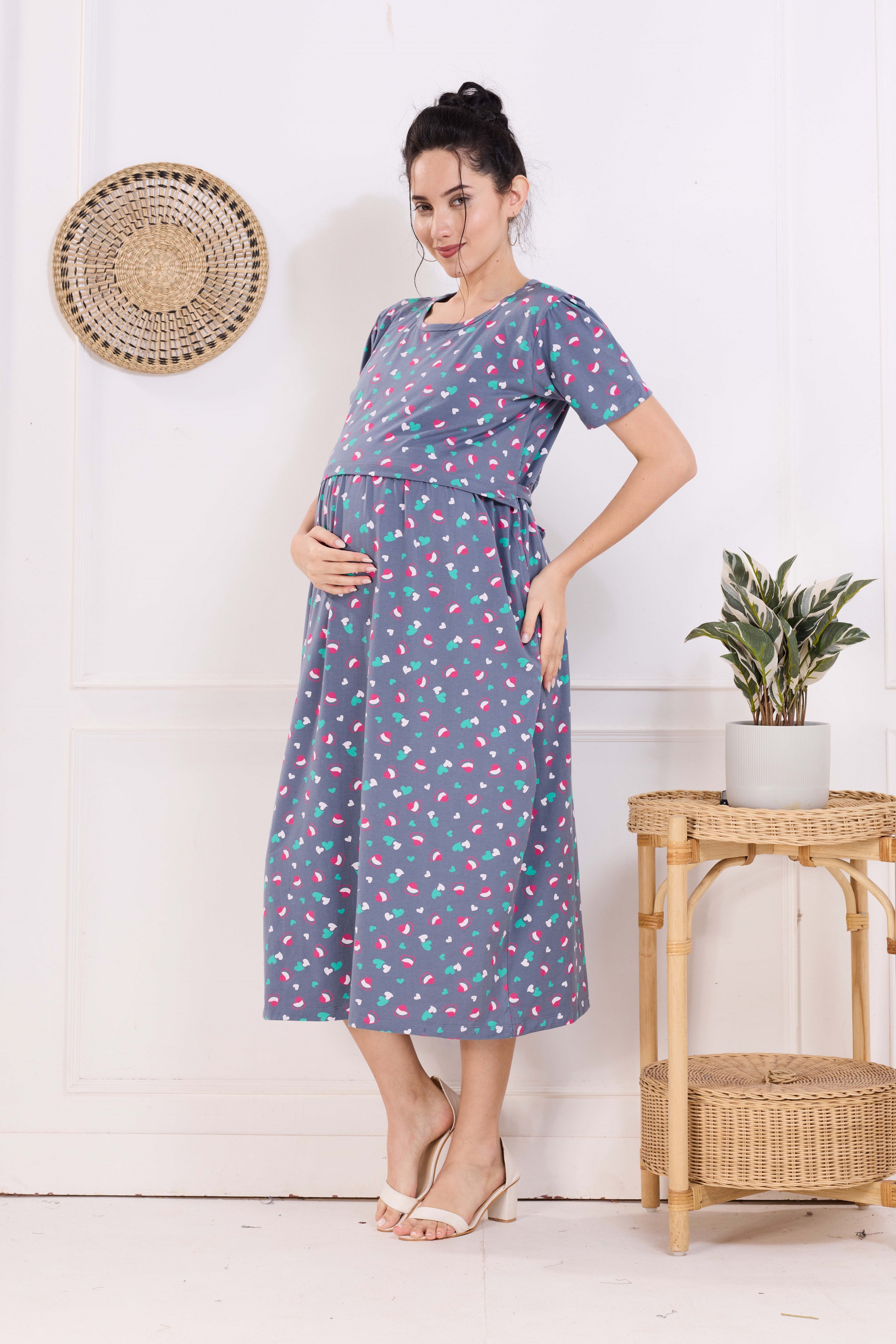 MANGAI HOSIERY Cotton Zipless Feeding Wear | Fancy Sleeve with Round Neck | Flap Open Zipless Feeding wear for Pregnancy Women (MMG)