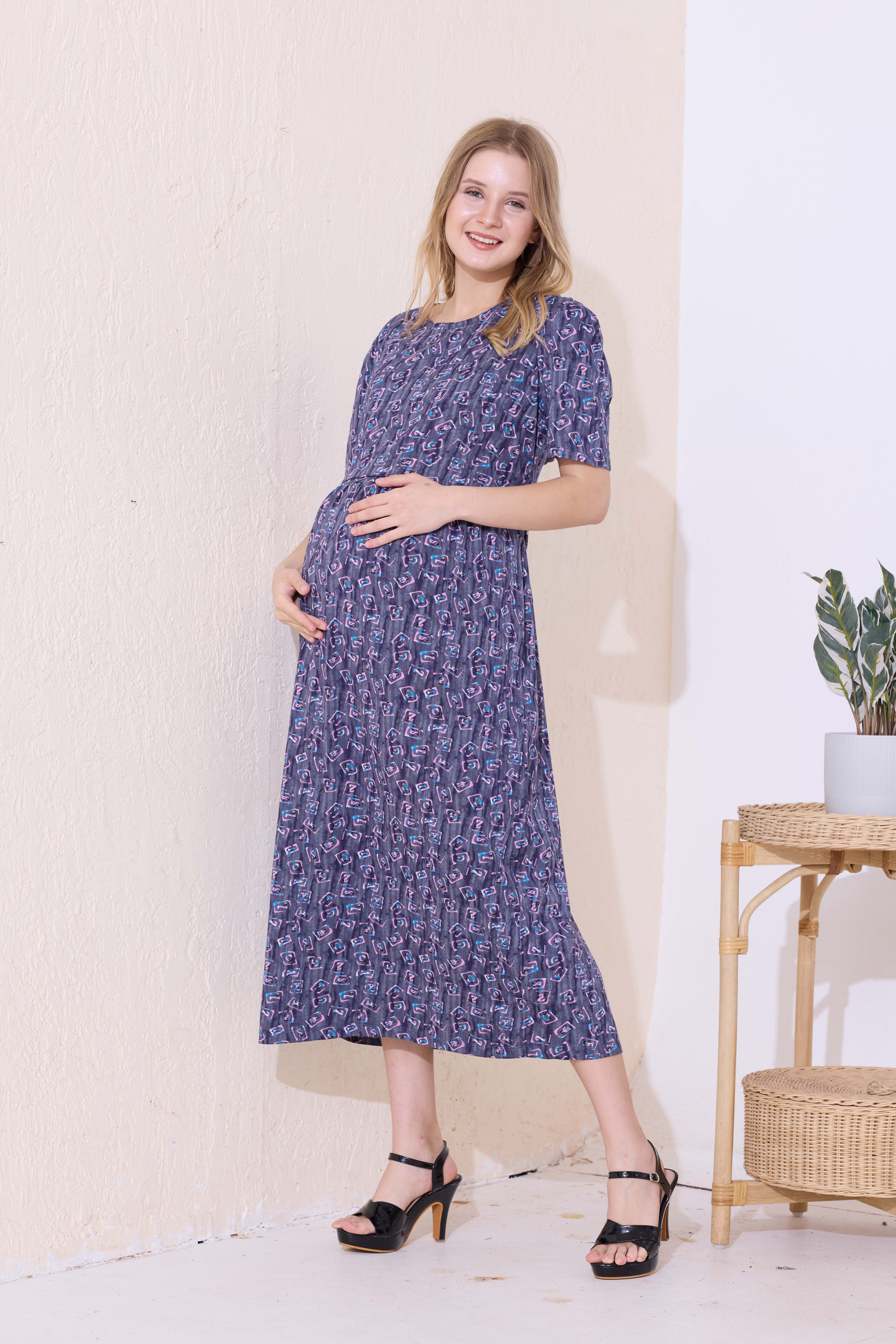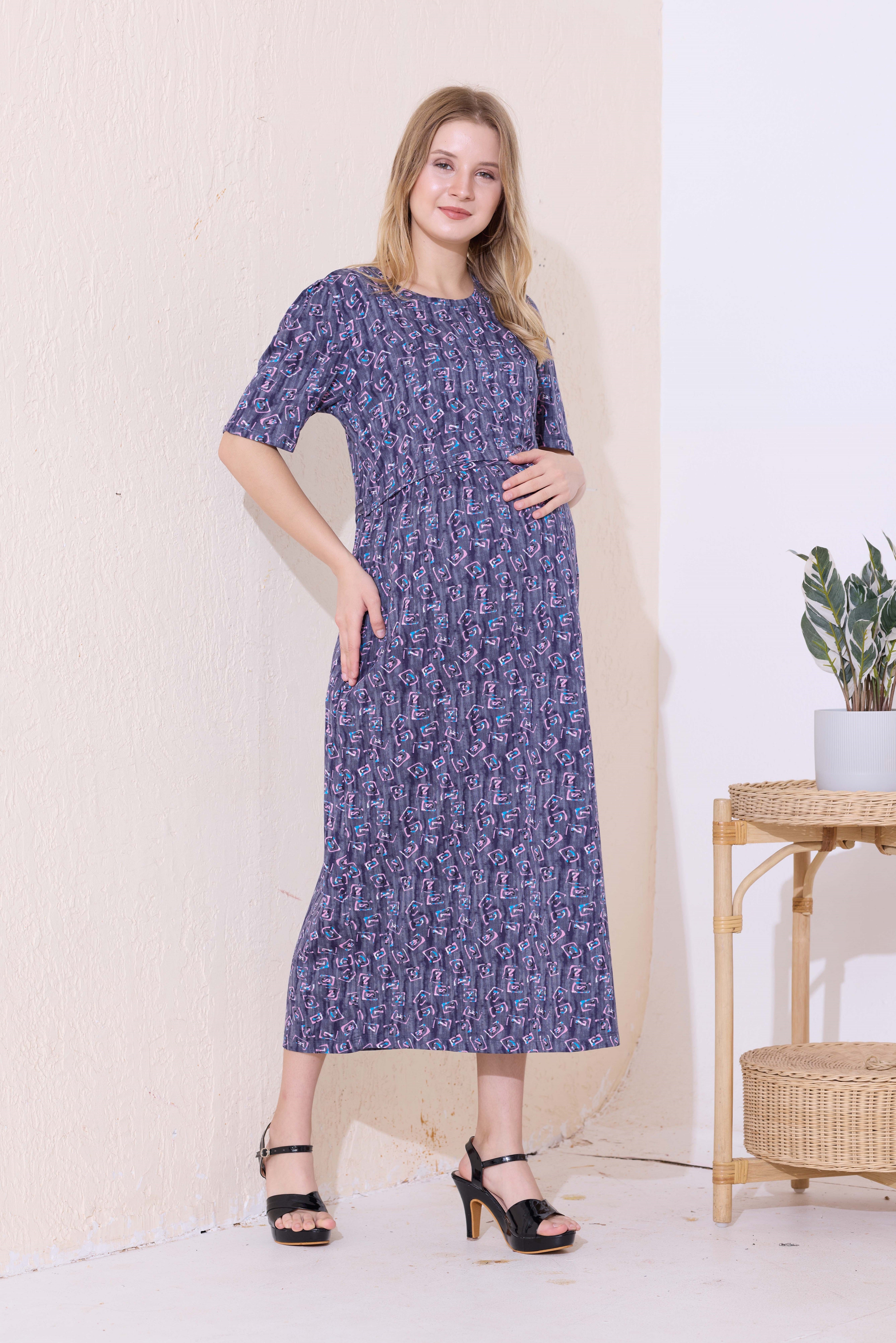 MANGAI HOSIERY Cotton Zipless Feeding Wear | Fancy Sleeve with Round Neck | Flap Open Zipless Feeding wear for Pregnancy Women (MMG)
