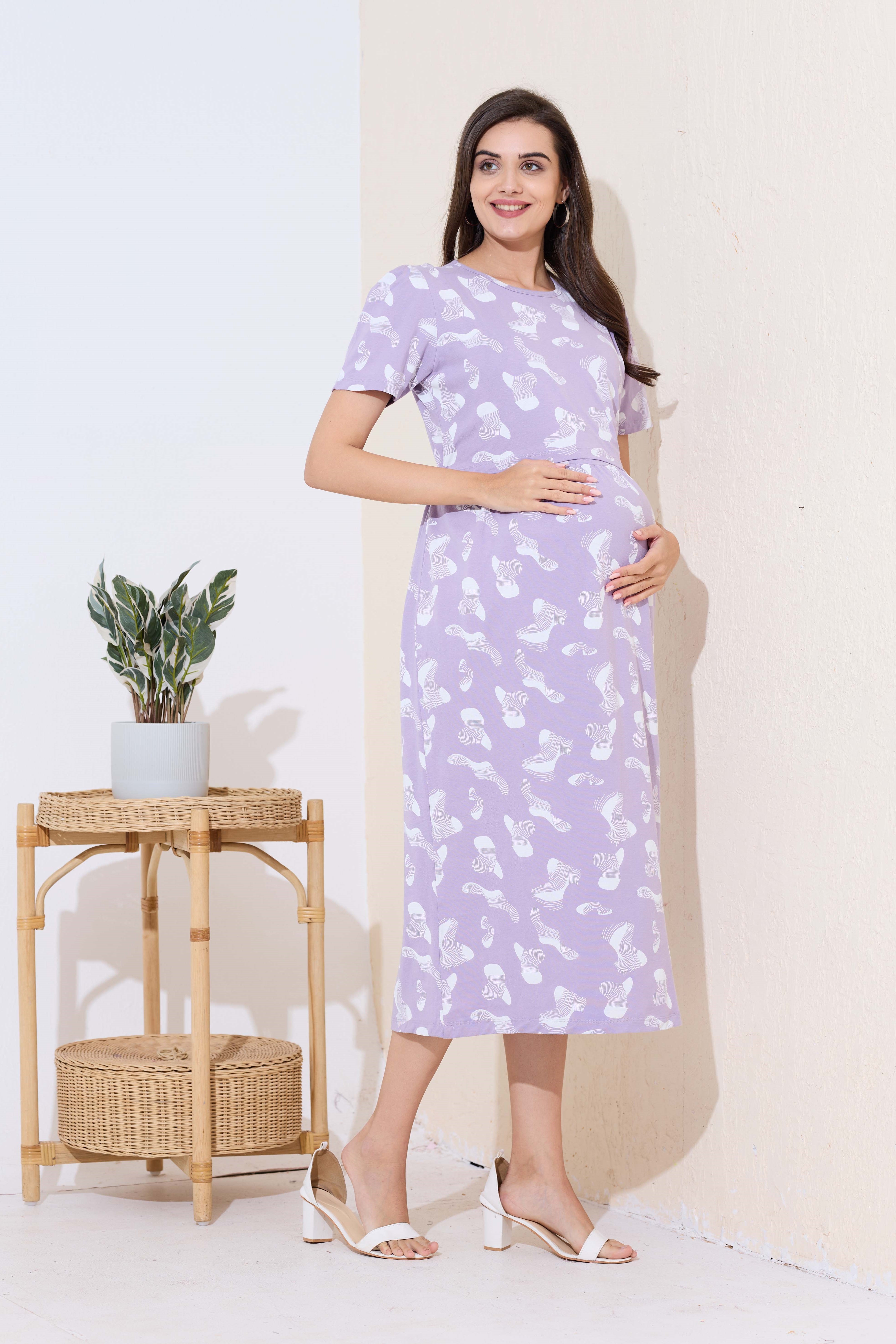 MANGAI HOSIERY Cotton Zipless Feeding Wear | Fancy Sleeve with Round Neck | Flap Open Zipless Feeding wear for Pregnancy Women (MMG)