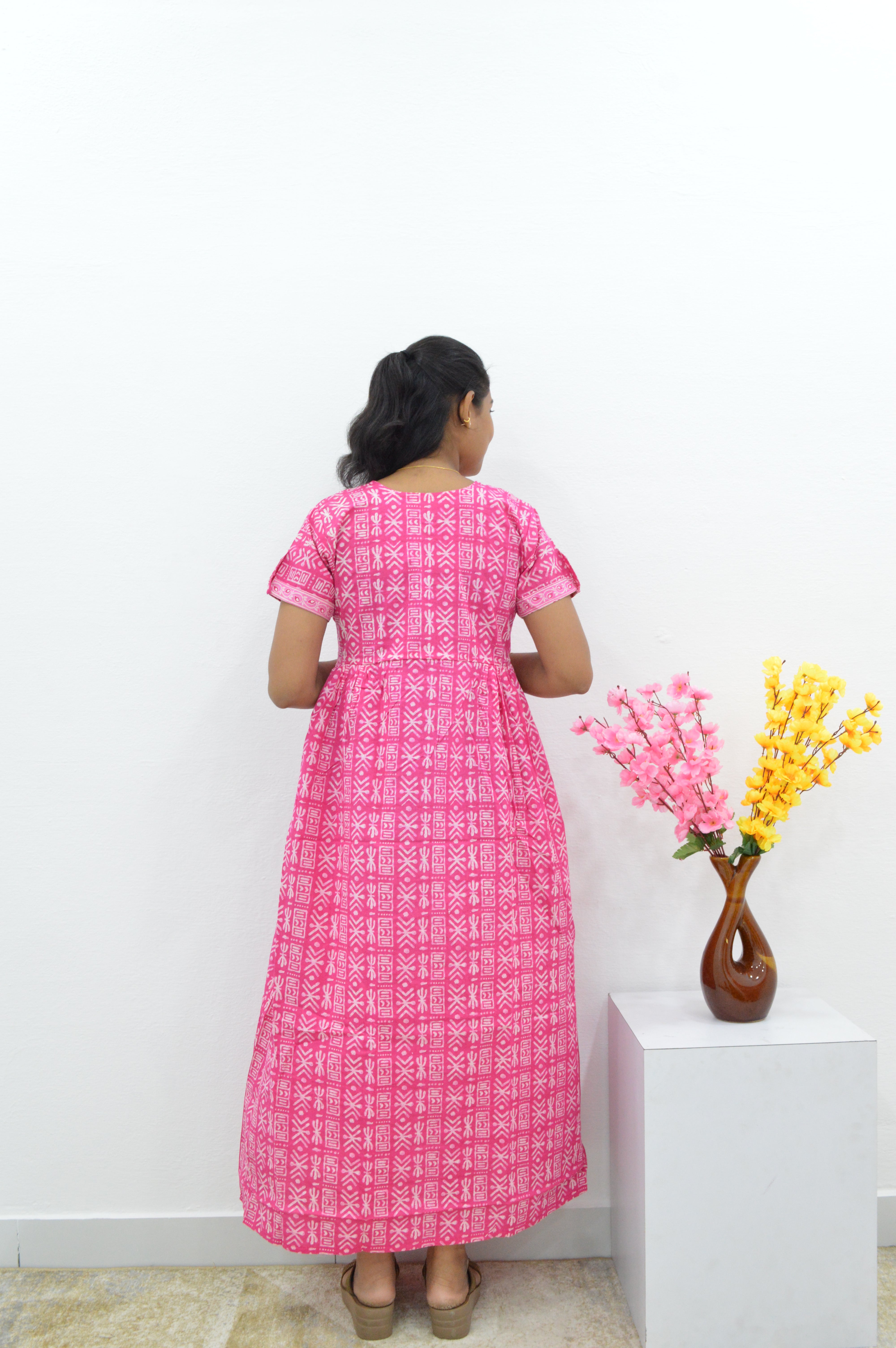 Elevate your everyday style with the MANGAI Premium Cotton Frock Nighty. This versatile piece is perfect for both casual wear and pregnancy. The elegant pleated design and soft cotton fabric make it comfortable and stylish.