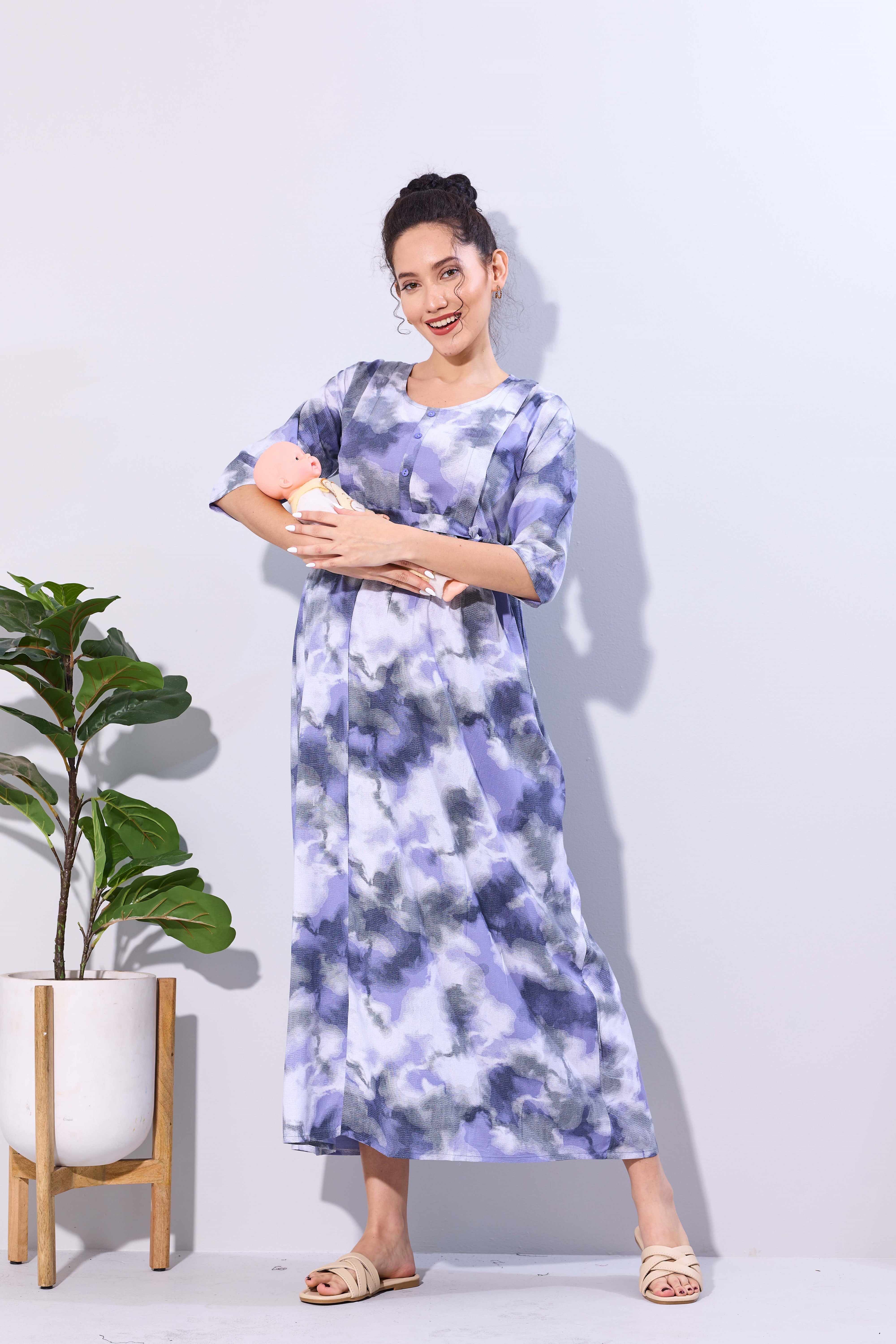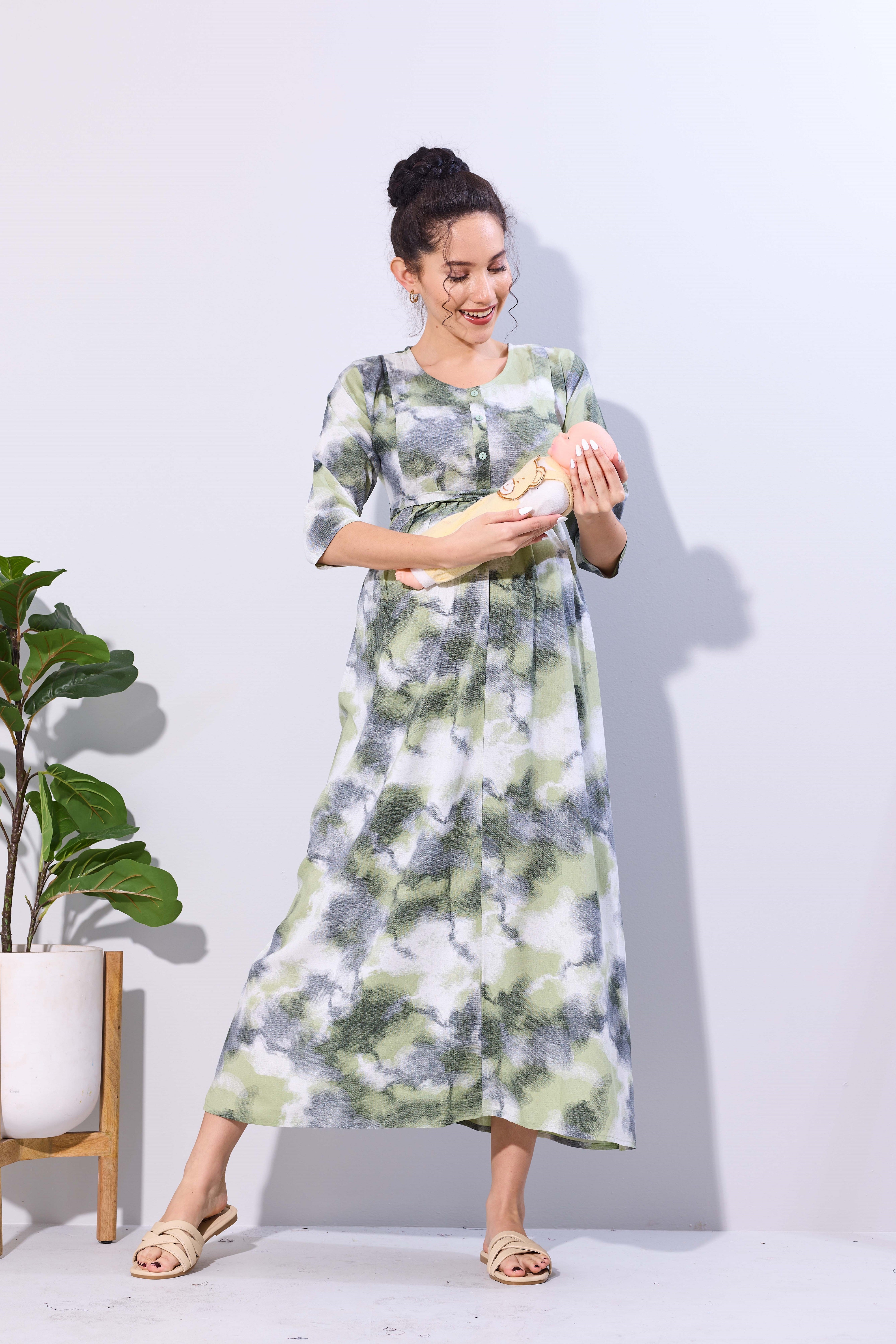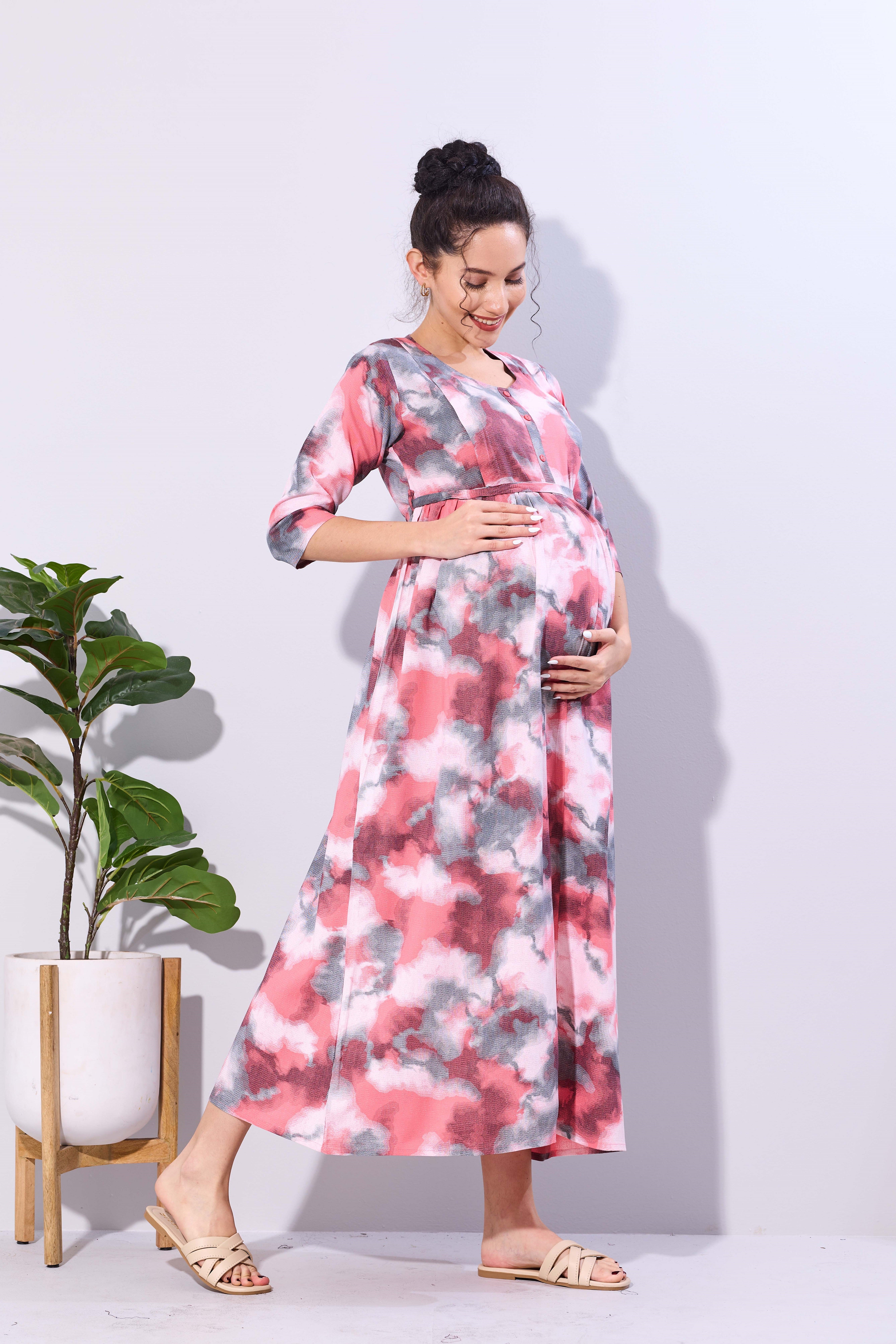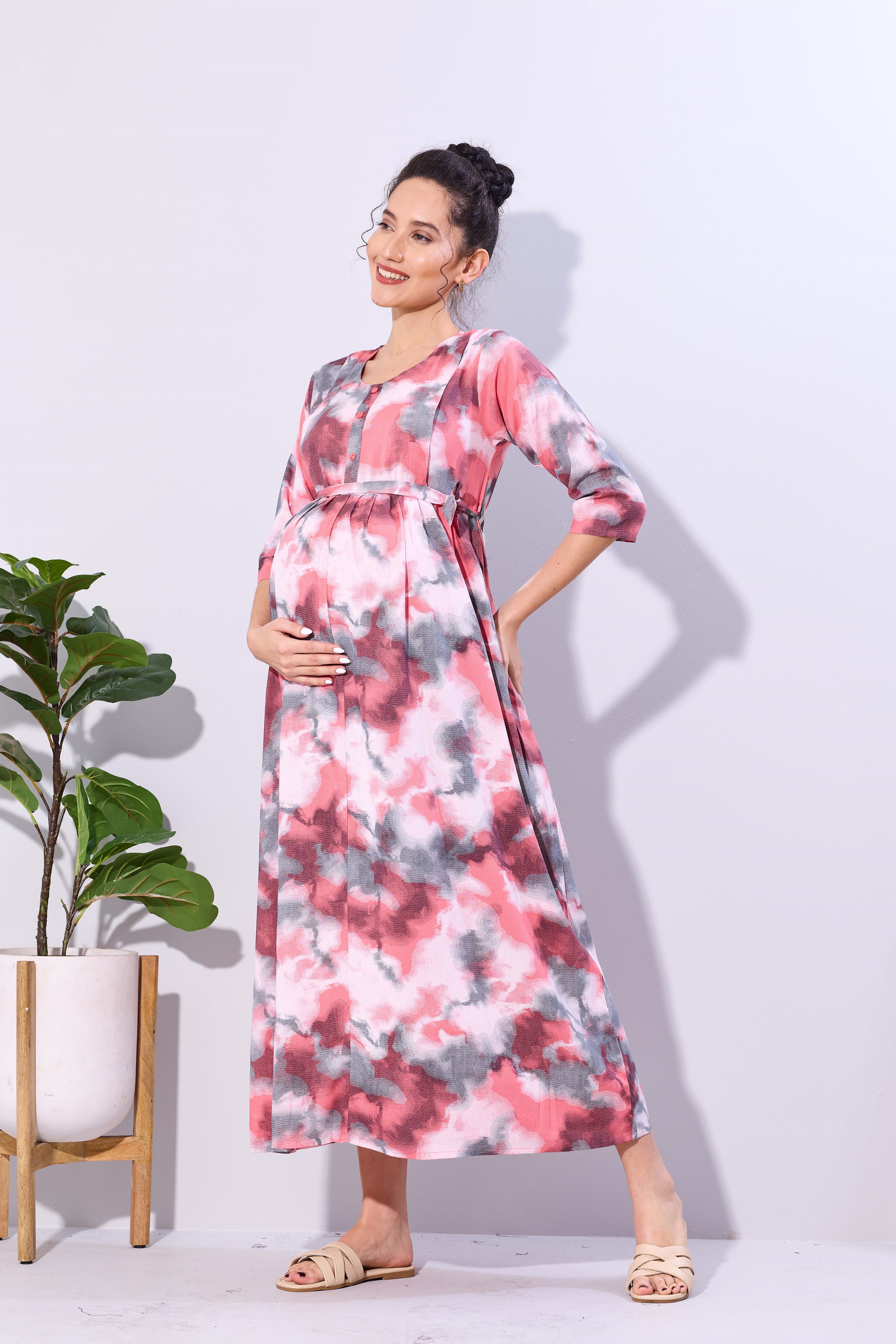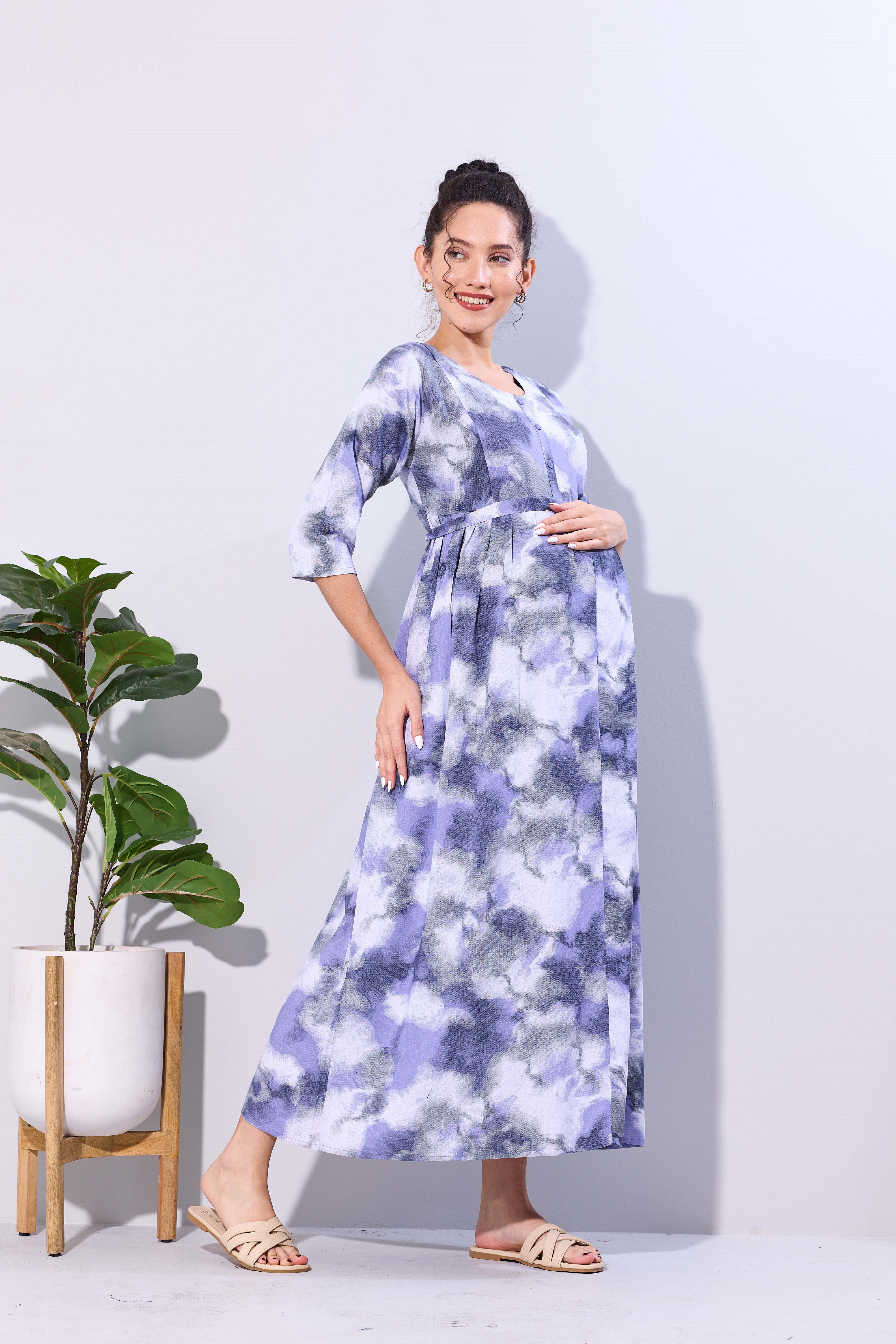 Soft Rayon4-IN-ONE Mom's Feeding & Casual Wear| Pre & Post Maternity Wear | Fancy Long Frock | Best Choice for Pregnancy Women (FIO-F)