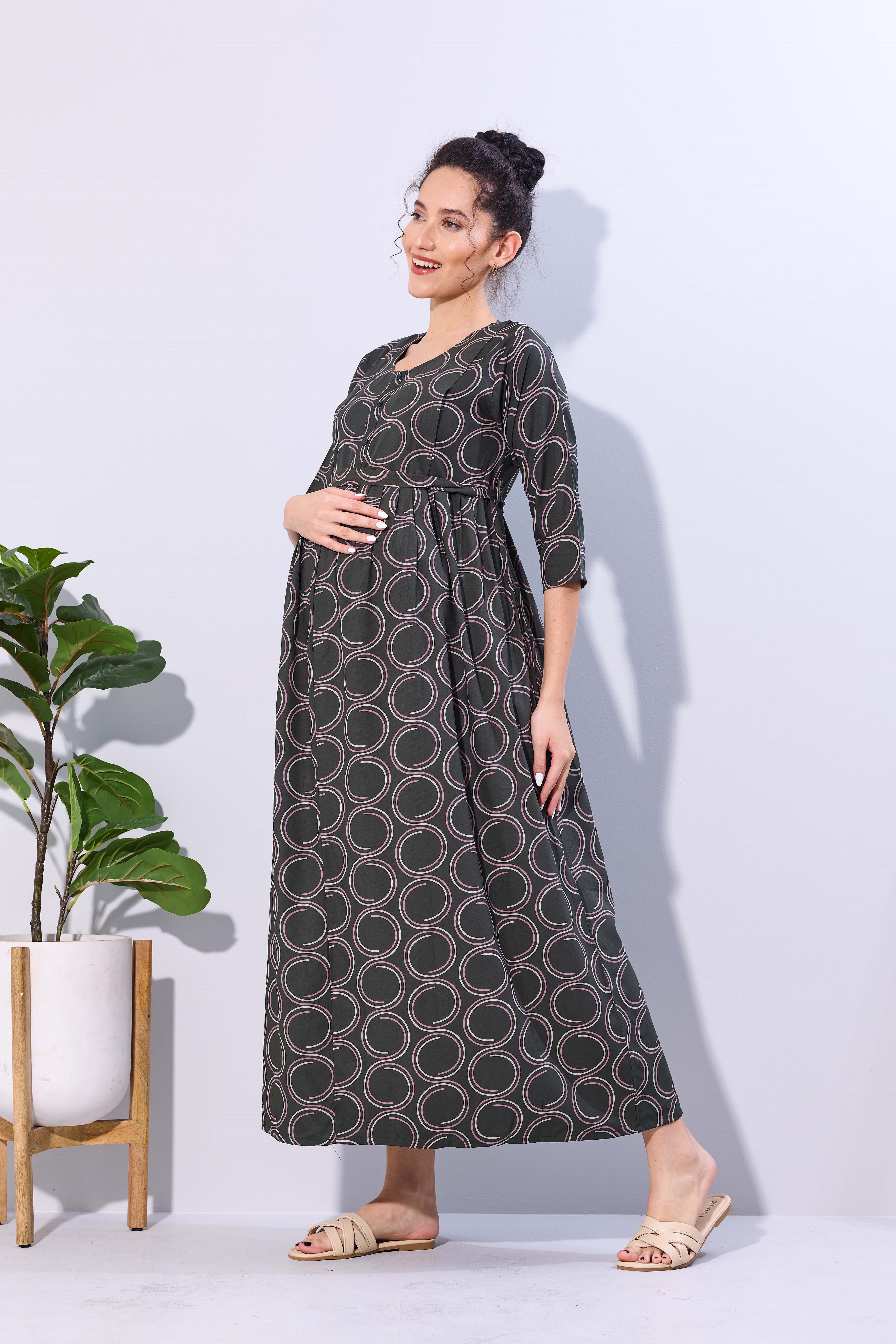 Soft Rayon4-IN-ONE Mom's Feeding & Casual Wear| Pre & Post Maternity Wear | Fancy Long Frock | Best Choice for Pregnancy Women (FIO-F)
