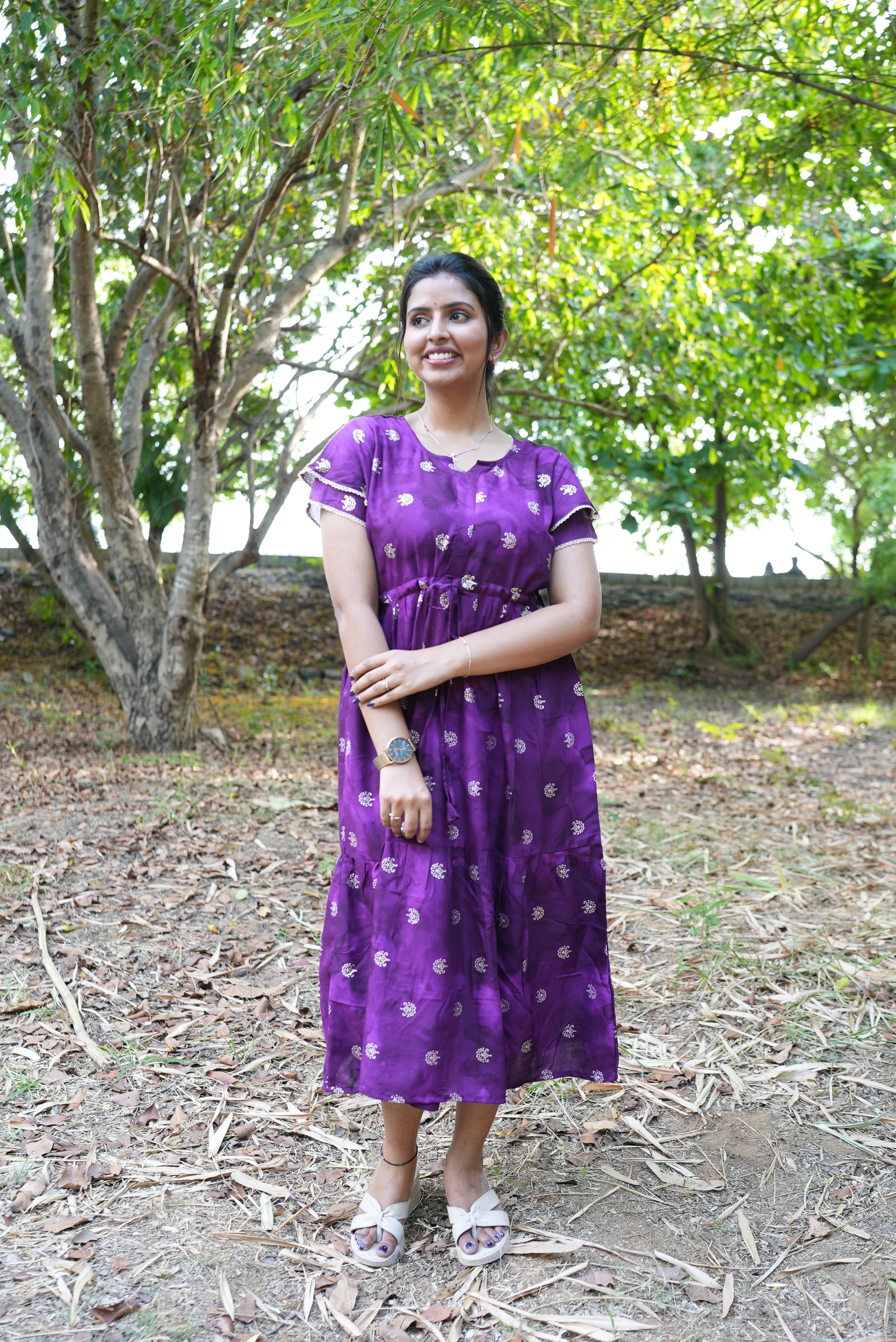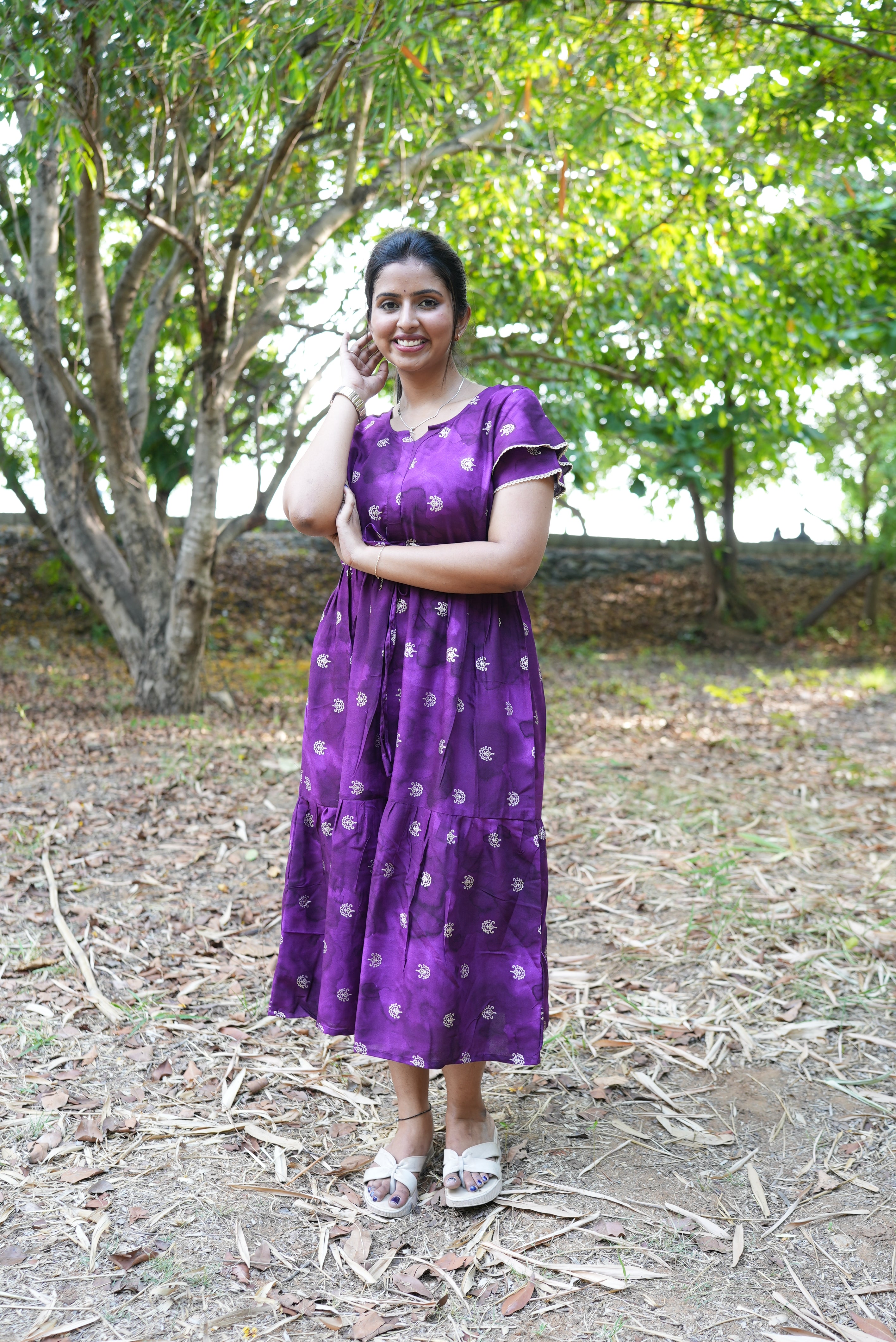 Unique Double-Layer Sleeves: Designed with stylish double-layer flutter sleeves that add a delicate, feminine volume and a modern twist to the classic maxi silhouette.