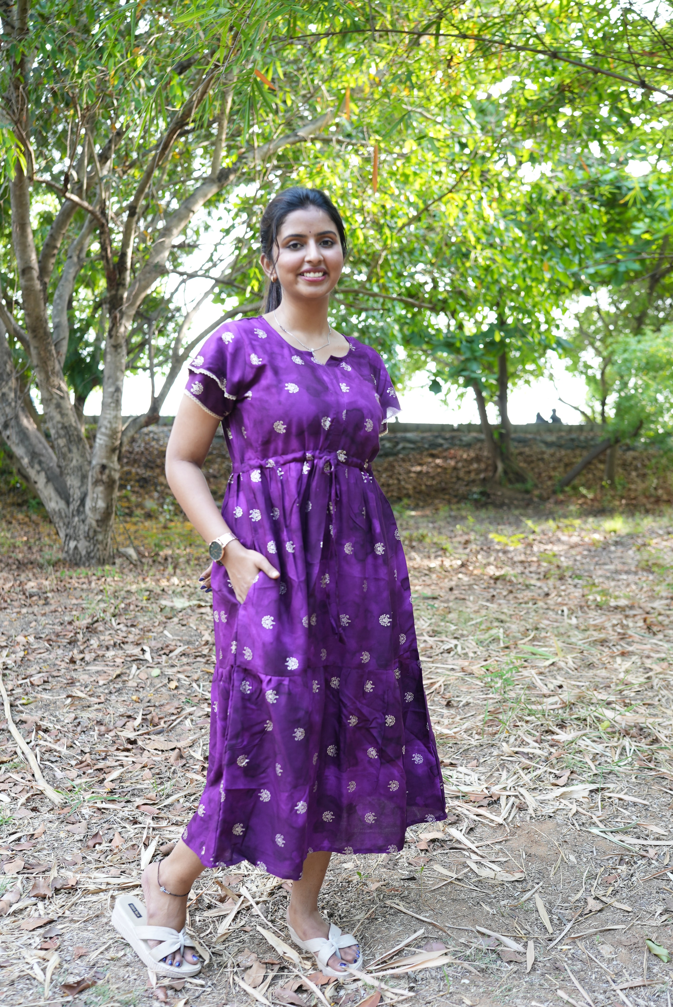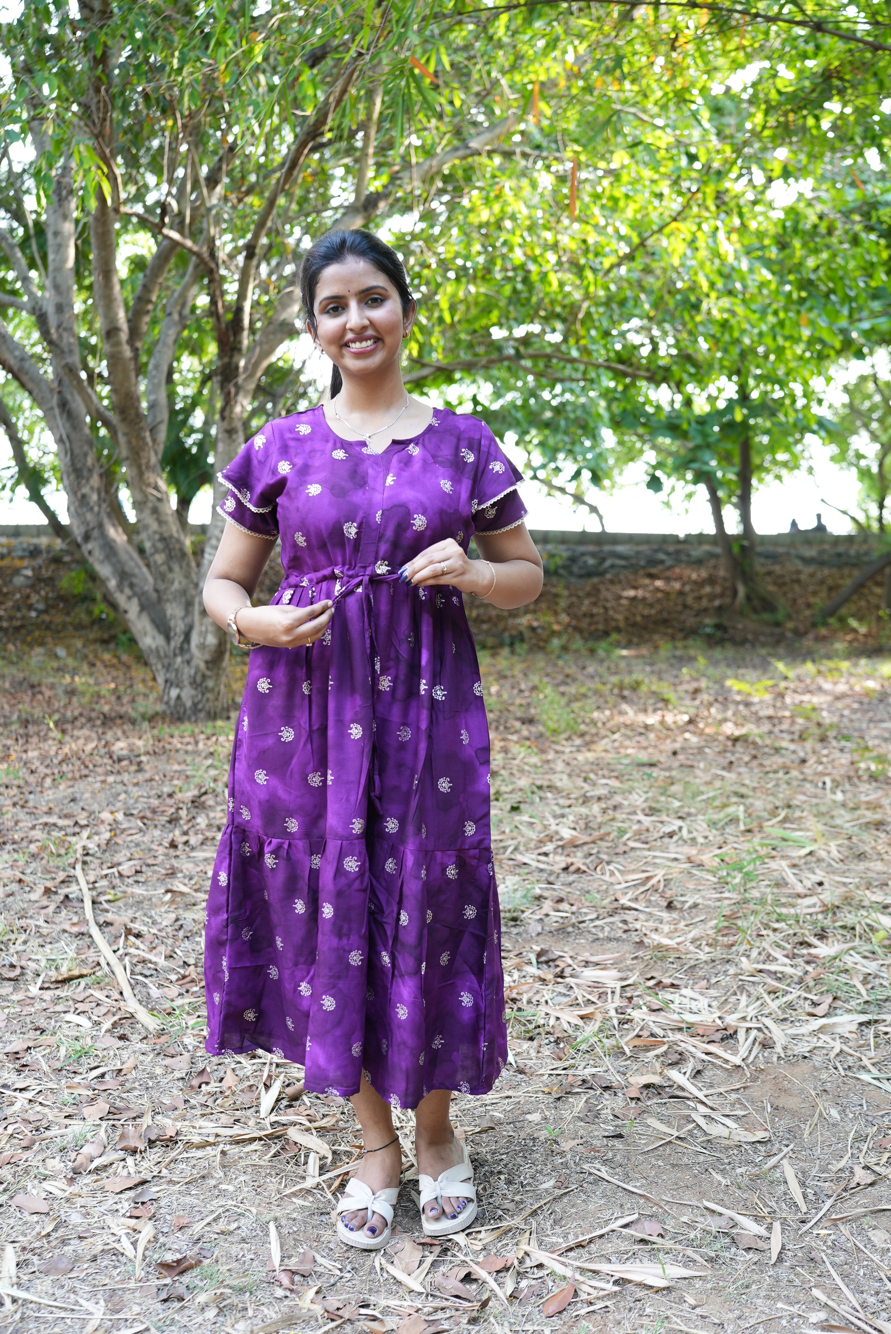 Customizable Gathering: The "Front-Tie Gathering Rope" allows you to define your waistline or keep it relaxed for a breezy, comfortable fit.
