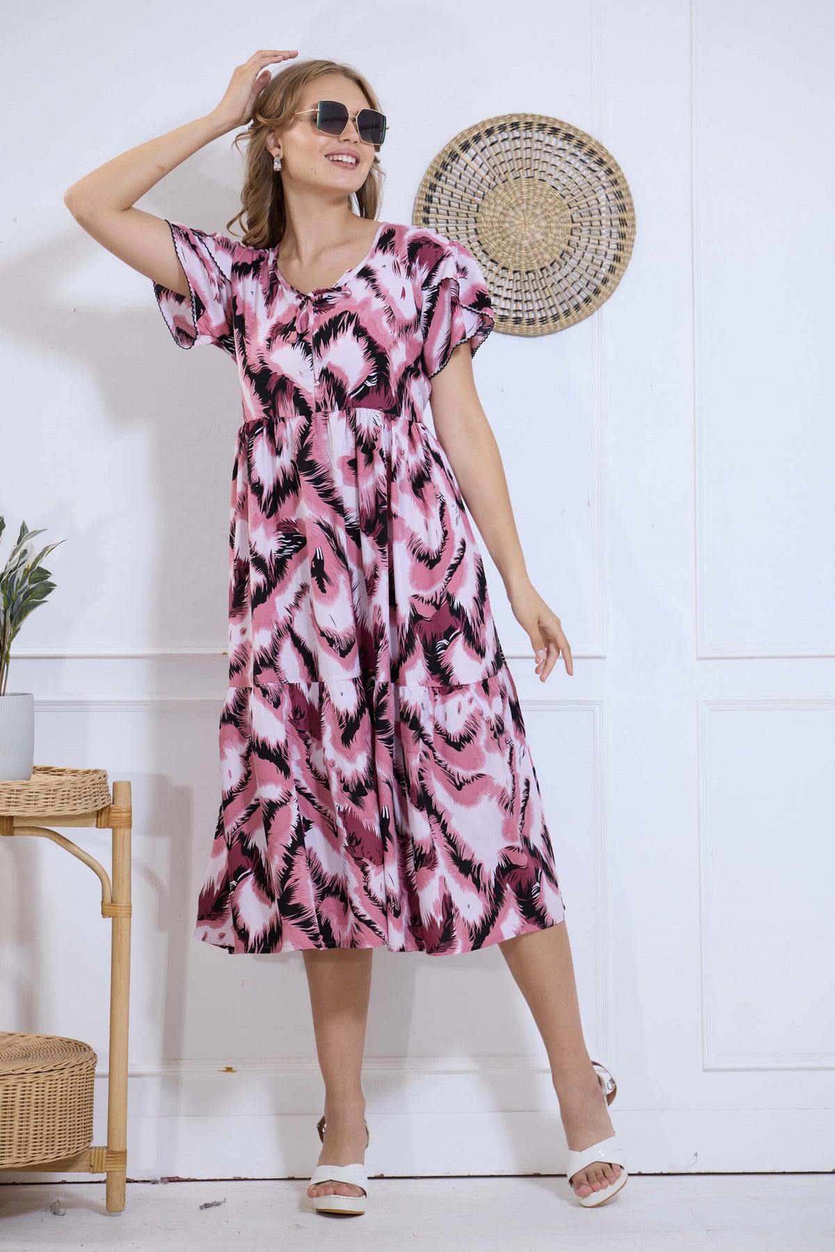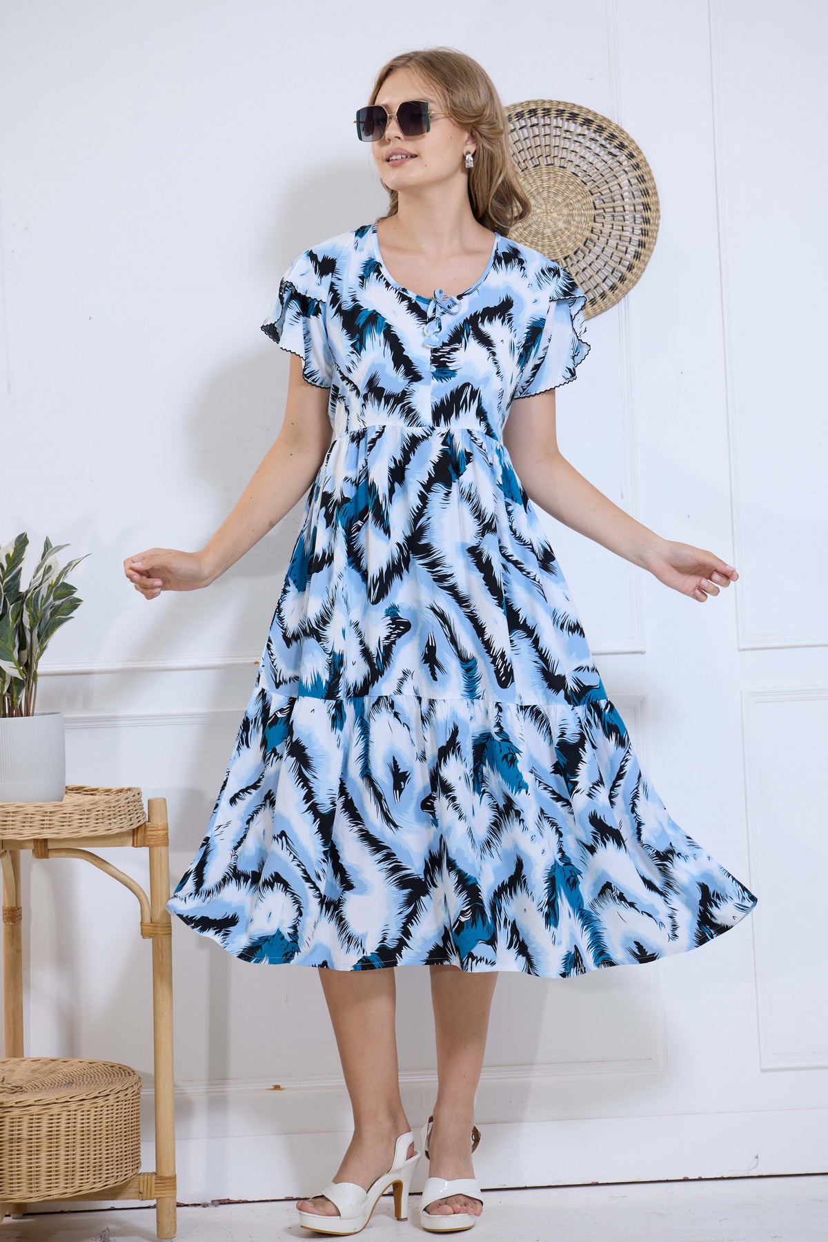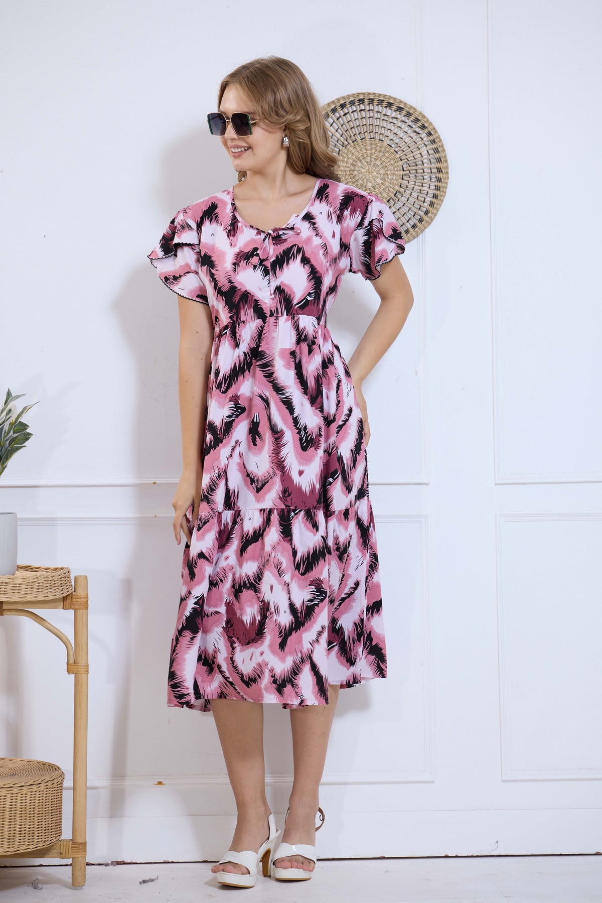 Imported Rayon MAXI FROCK Model Nighties | Fancy Petal Sleeve | Fancy Neck & Side Pocket | Pleated Frock MAXI Style | Trendy Collection's for Stylish Women & Teenage Girl (IRM)