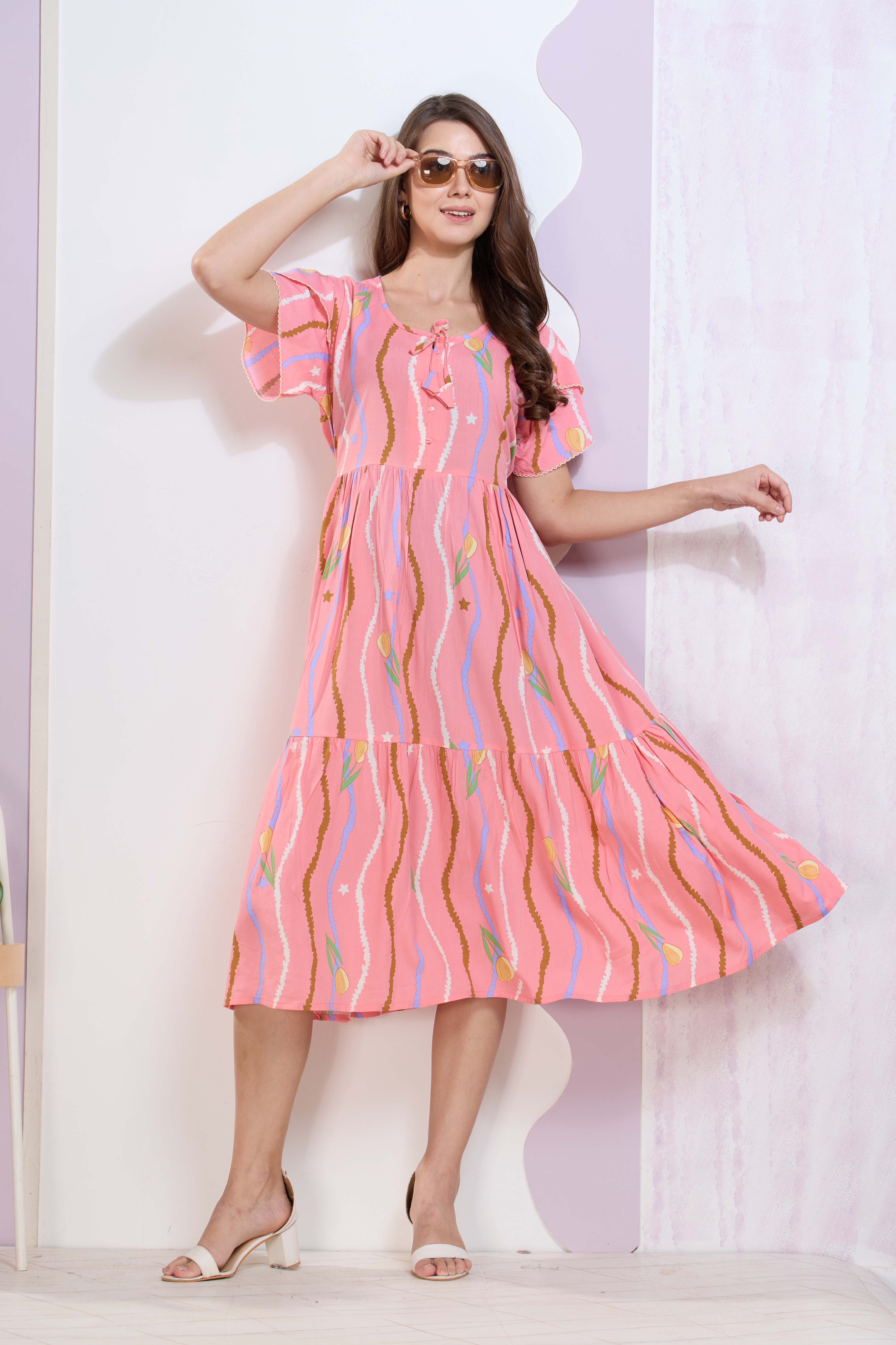Imported Rayon MAXI FROCK Model Nighties | Fancy Petal Sleeve | Fancy Neck & Side Pocket | Pleated Frock MAXI Style | Trendy Collection's for Stylish Women & Teenage Girl (IRM)