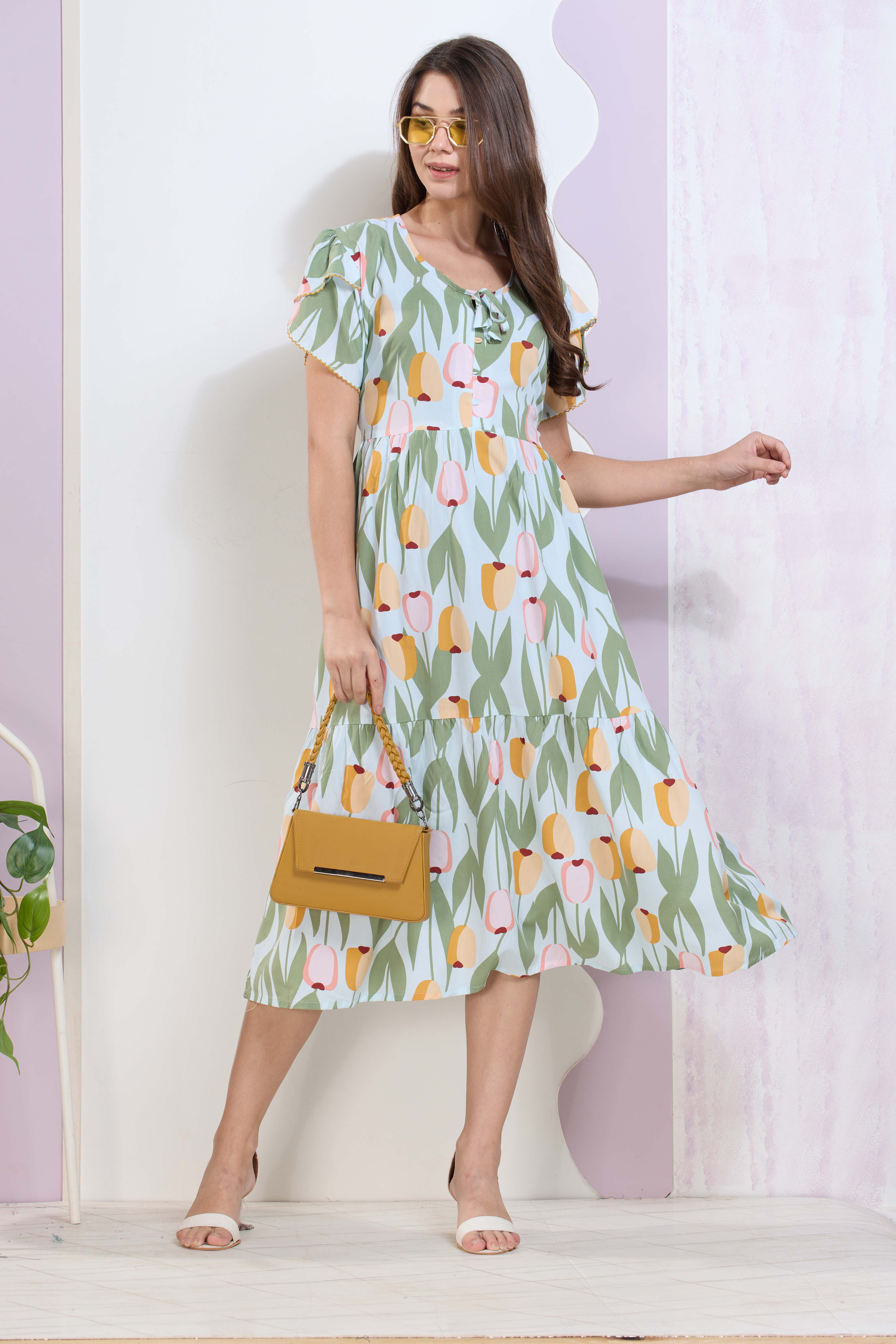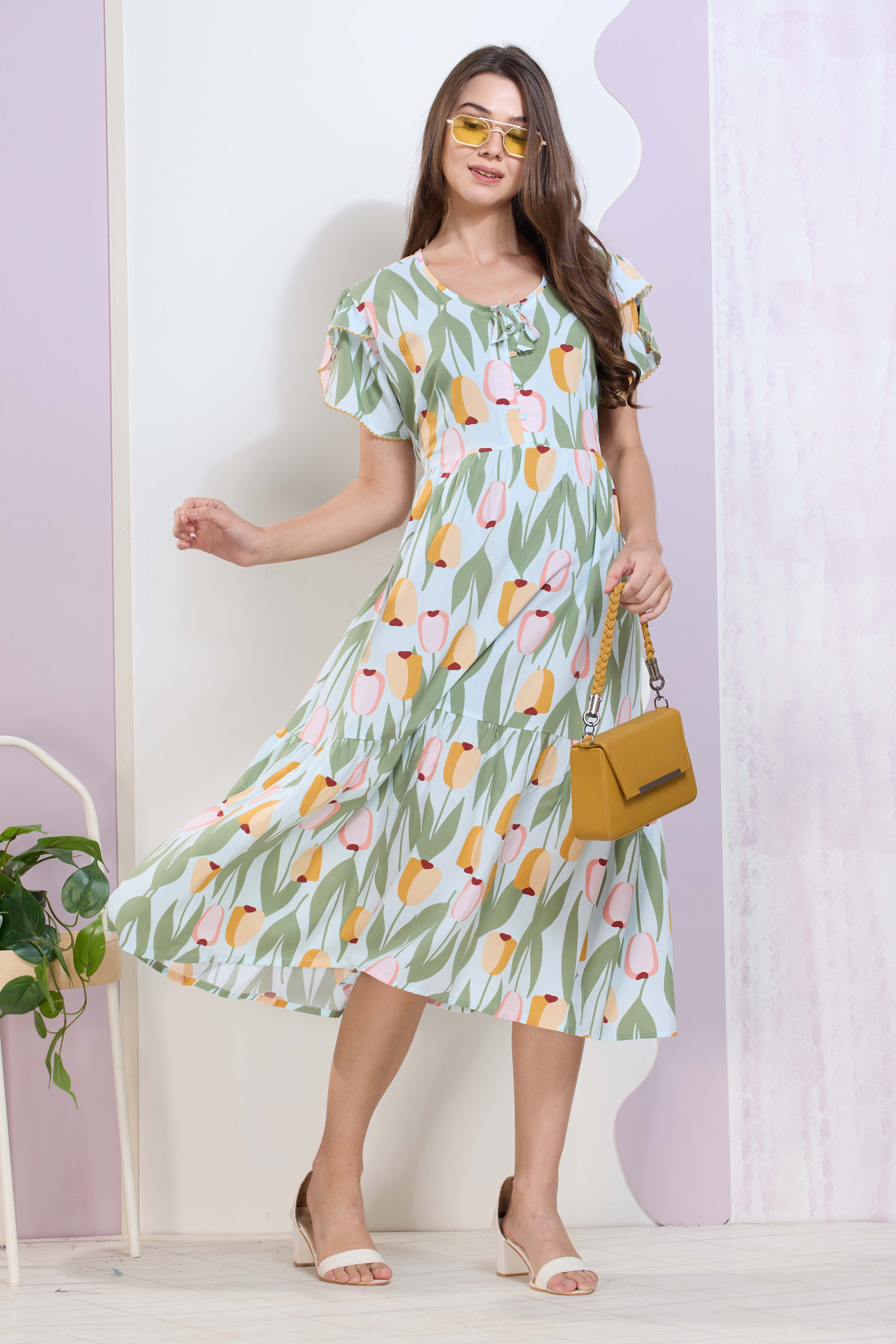 Imported Rayon MAXI FROCK Model Nighties | Fancy Petal Sleeve | Fancy Neck & Side Pocket | Pleated Frock MAXI Style | Trendy Collection's for Stylish Women & Teenage Girl (IRM)