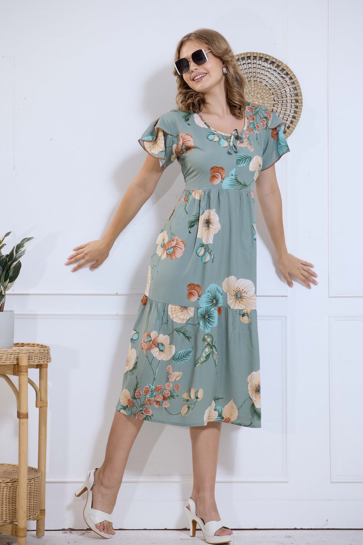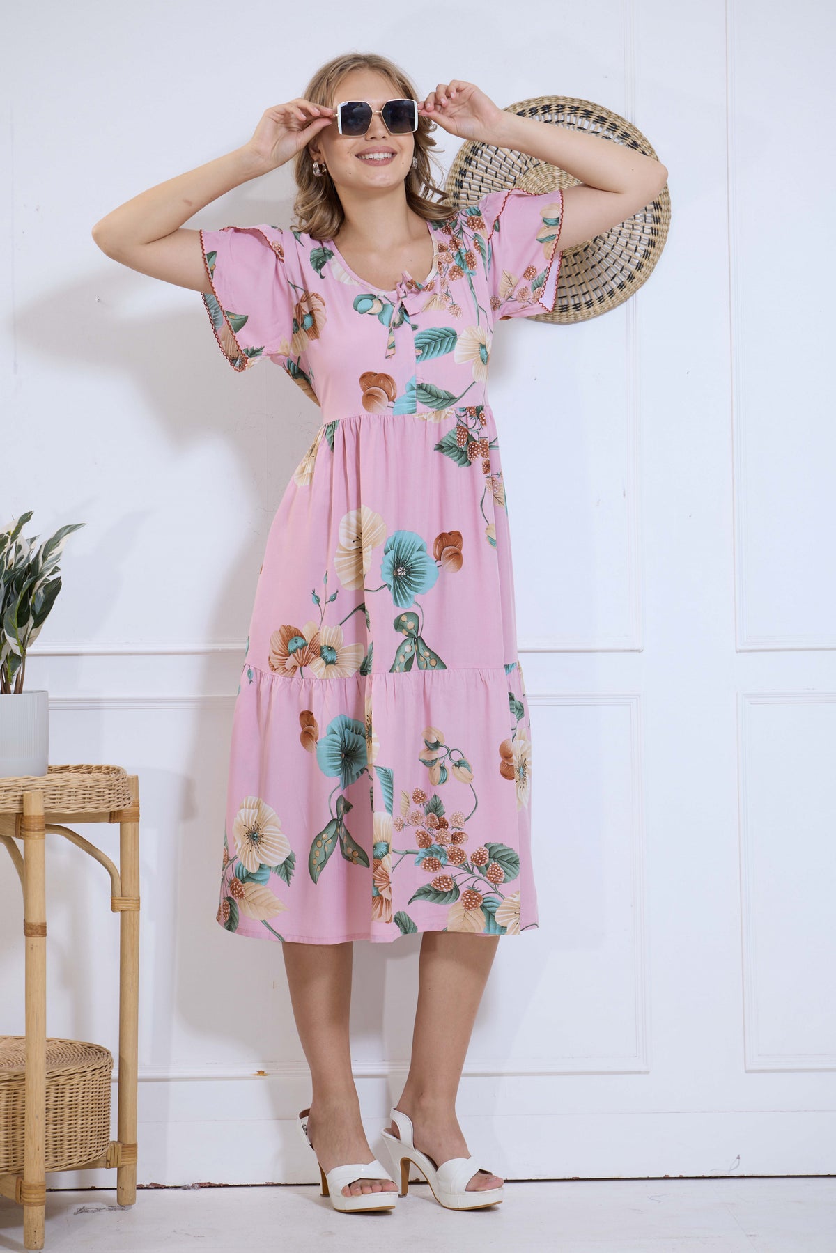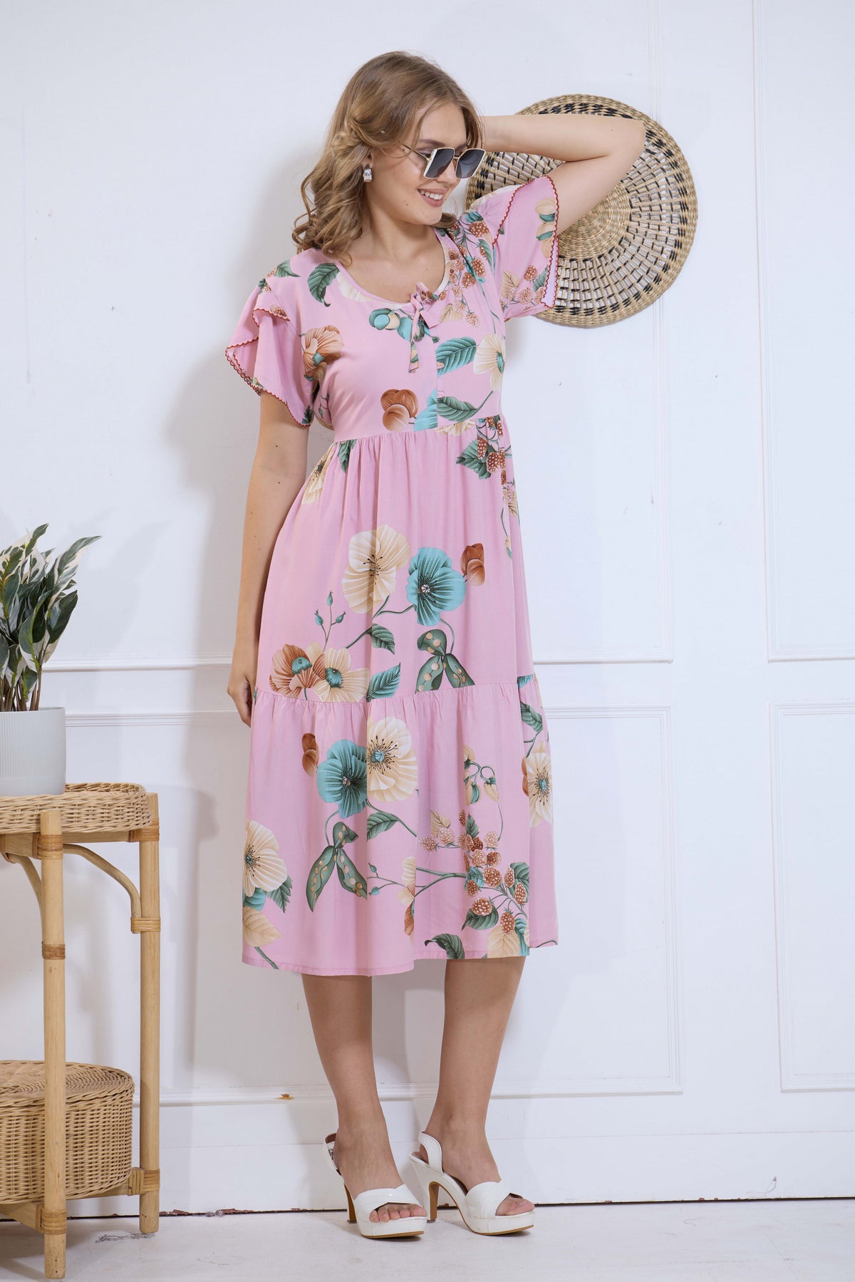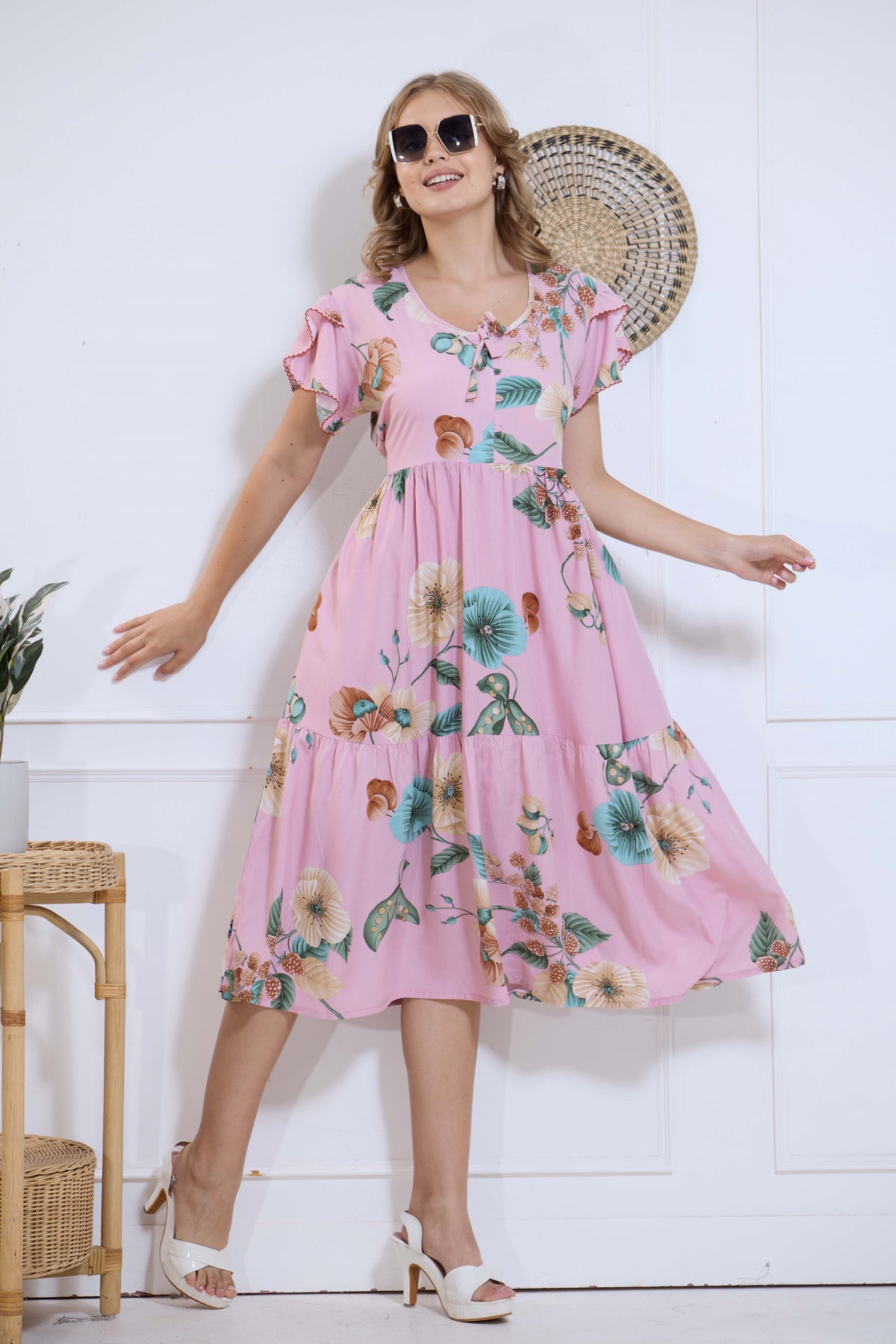 Imported Rayon MAXI FROCK Model Nighties | Fancy Petal Sleeve | Fancy Neck & Side Pocket | Pleated Frock MAXI Style | Trendy Collection's for Stylish Women & Teenage Girl (IRM)