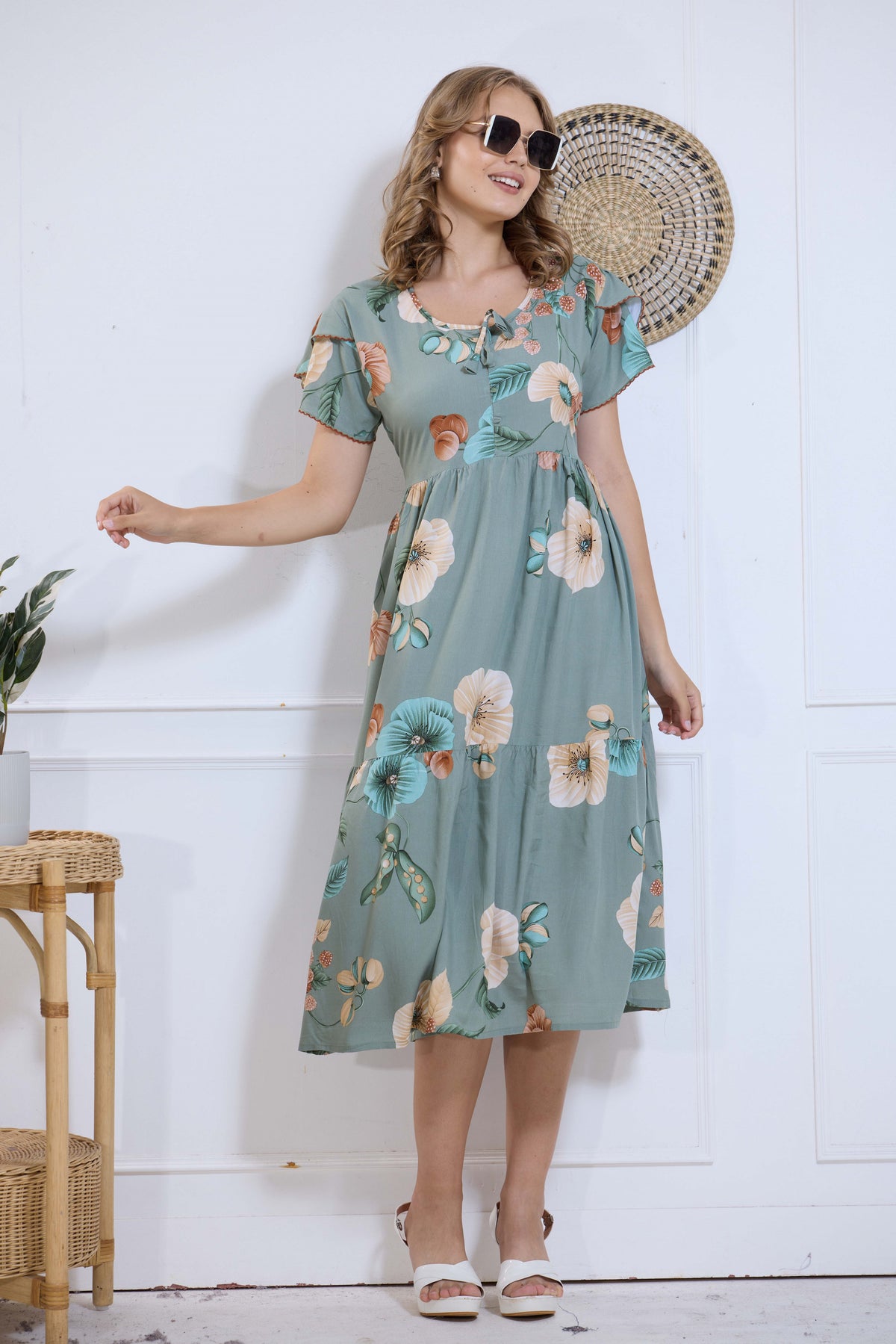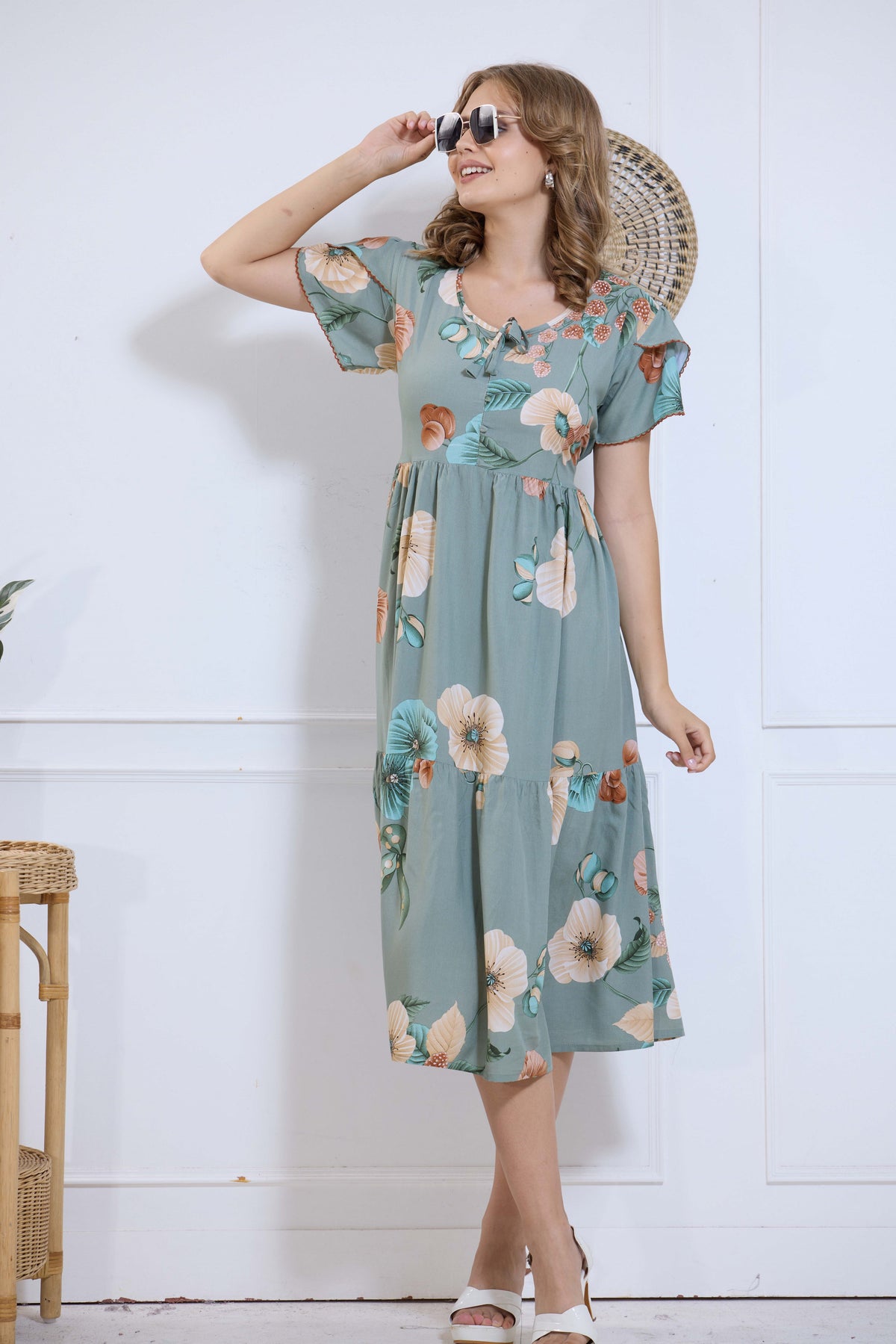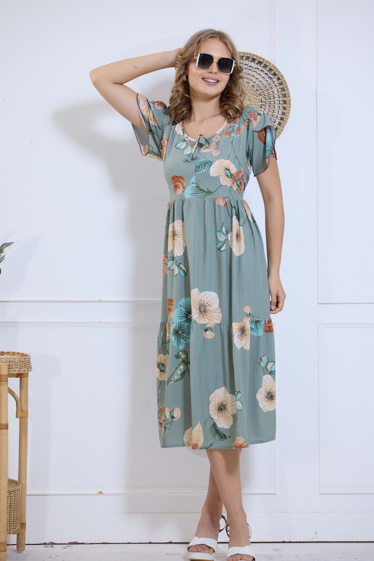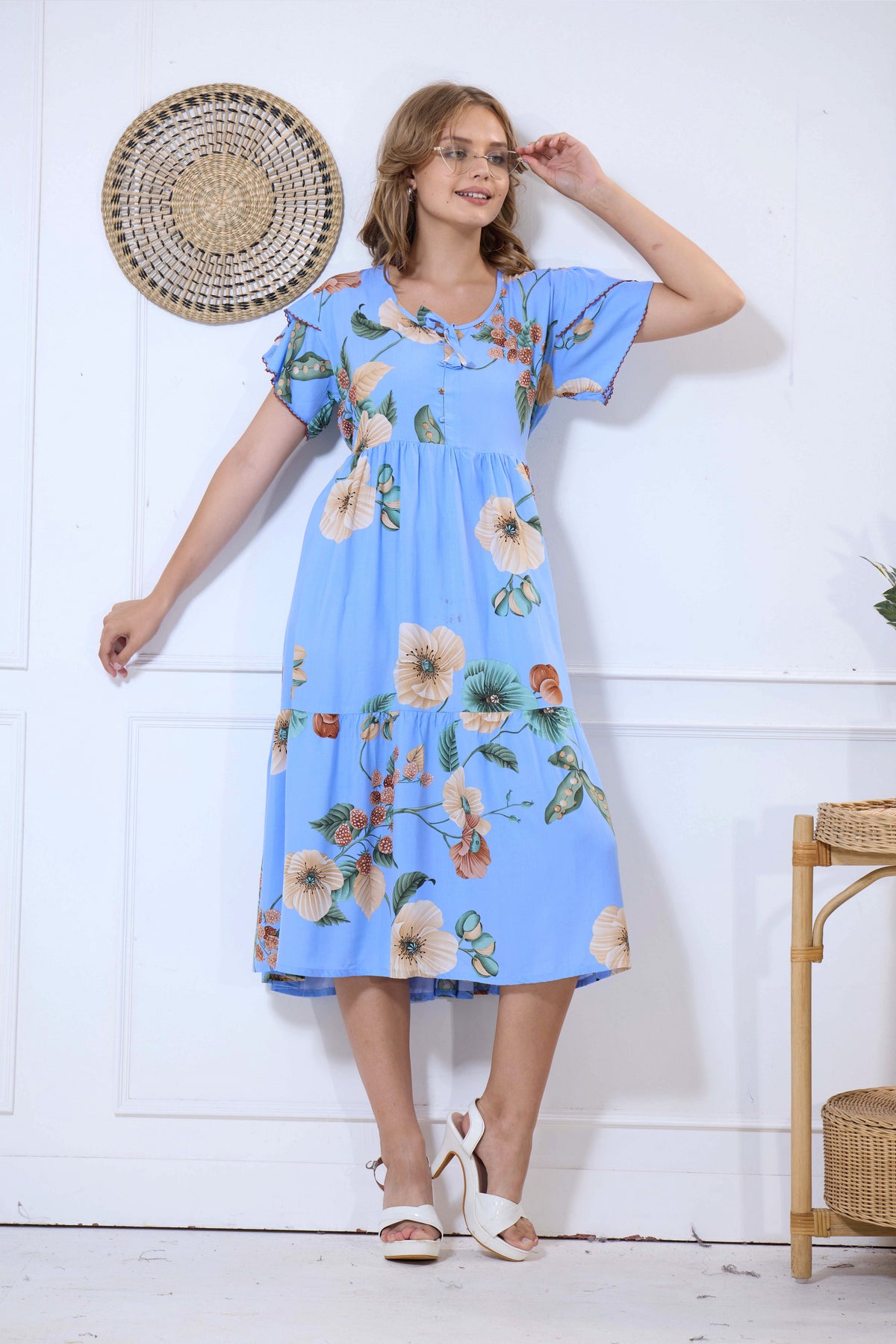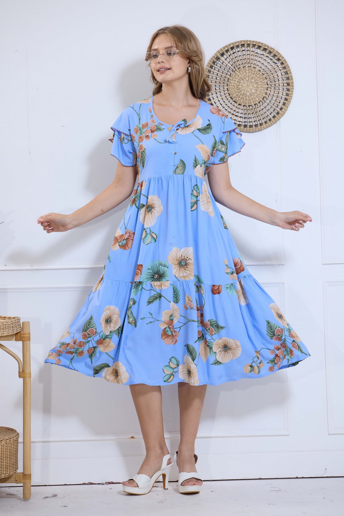 Imported Rayon MAXI FROCK Model Nighties | Fancy Petal Sleeve | Fancy Neck & Side Pocket | Pleated Frock MAXI Style | Trendy Collection's for Stylish Women & Teenage Girl (IRM)