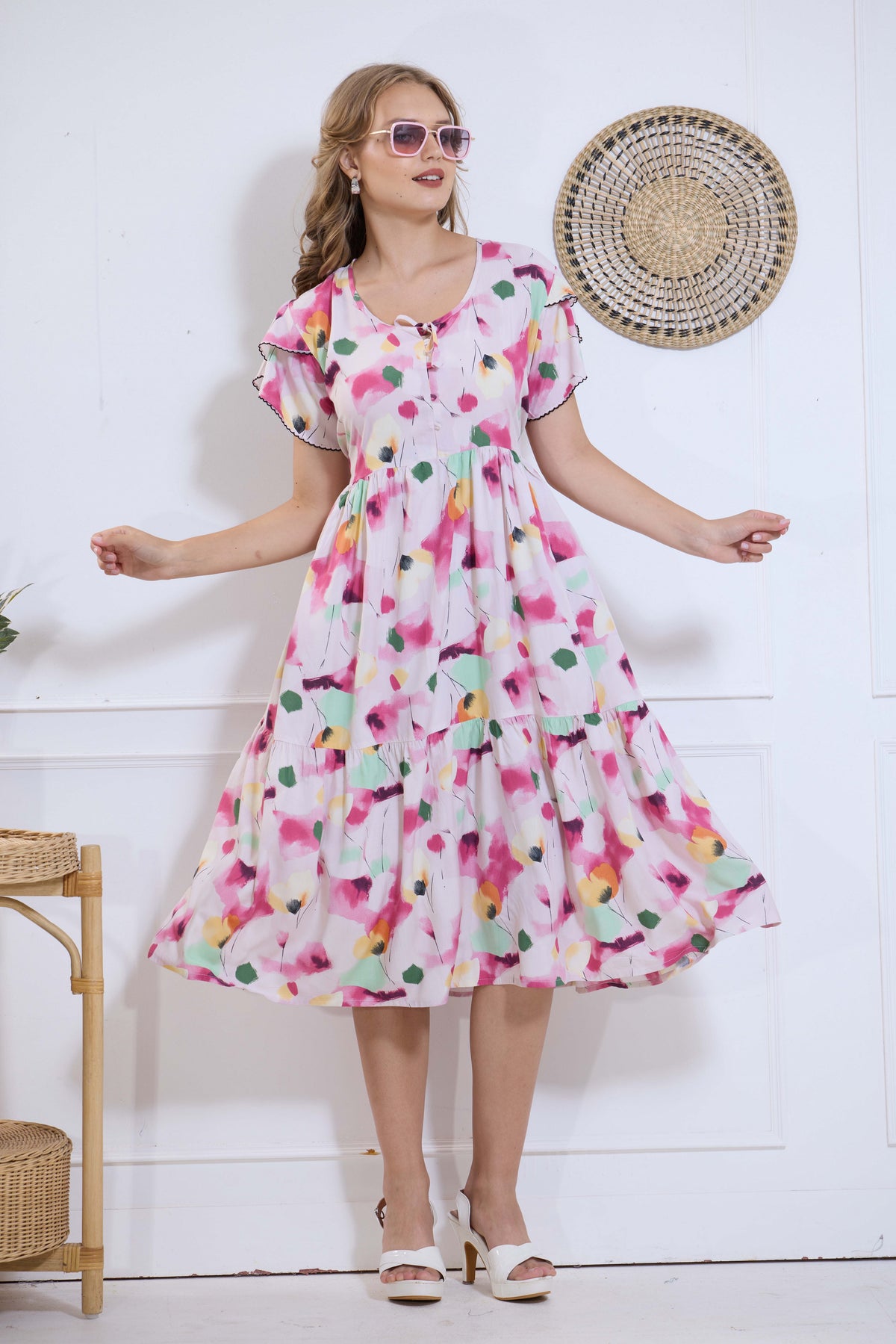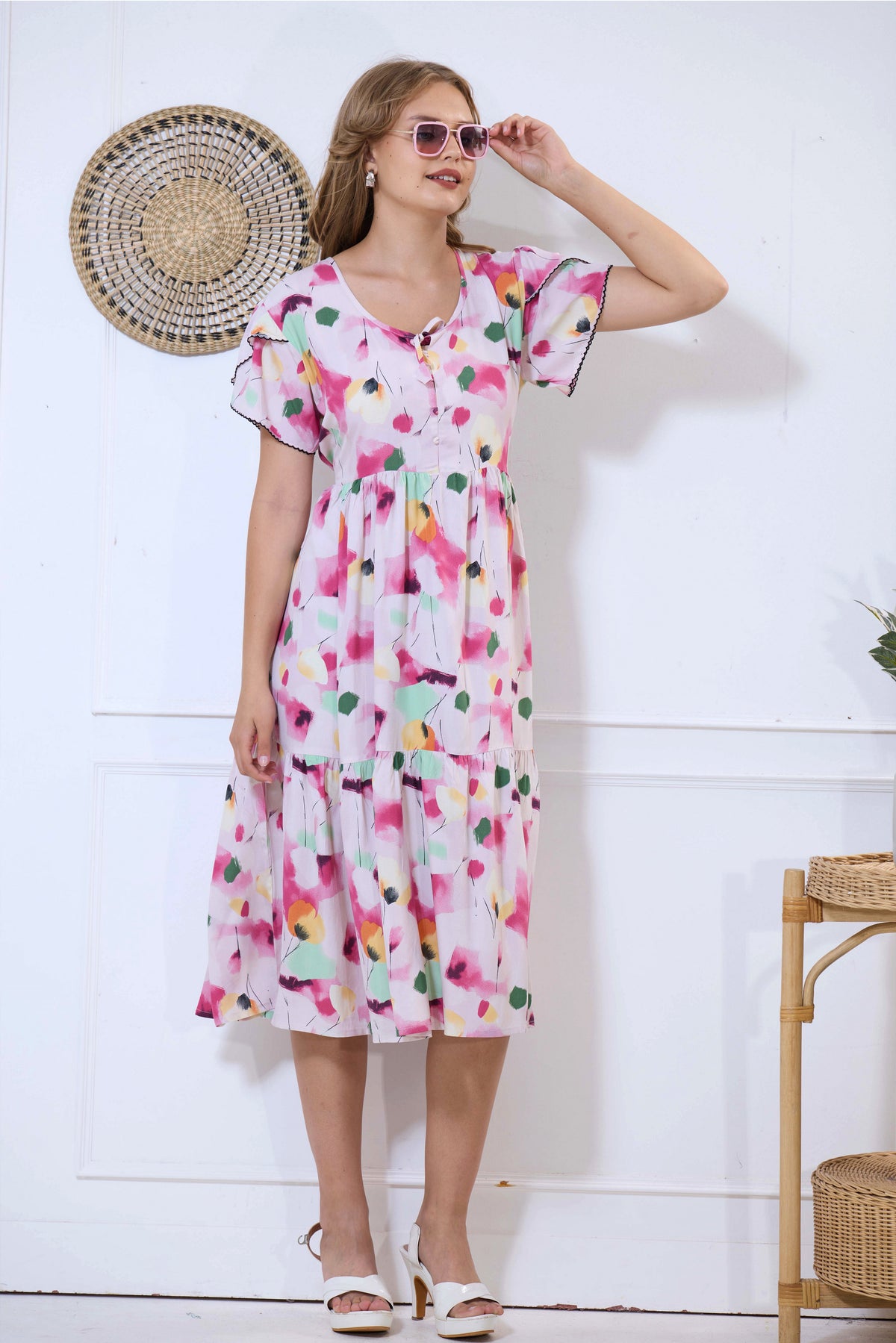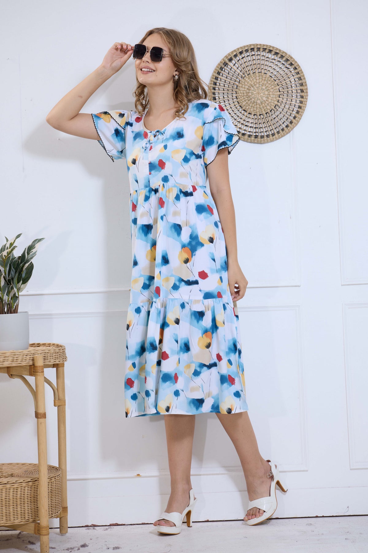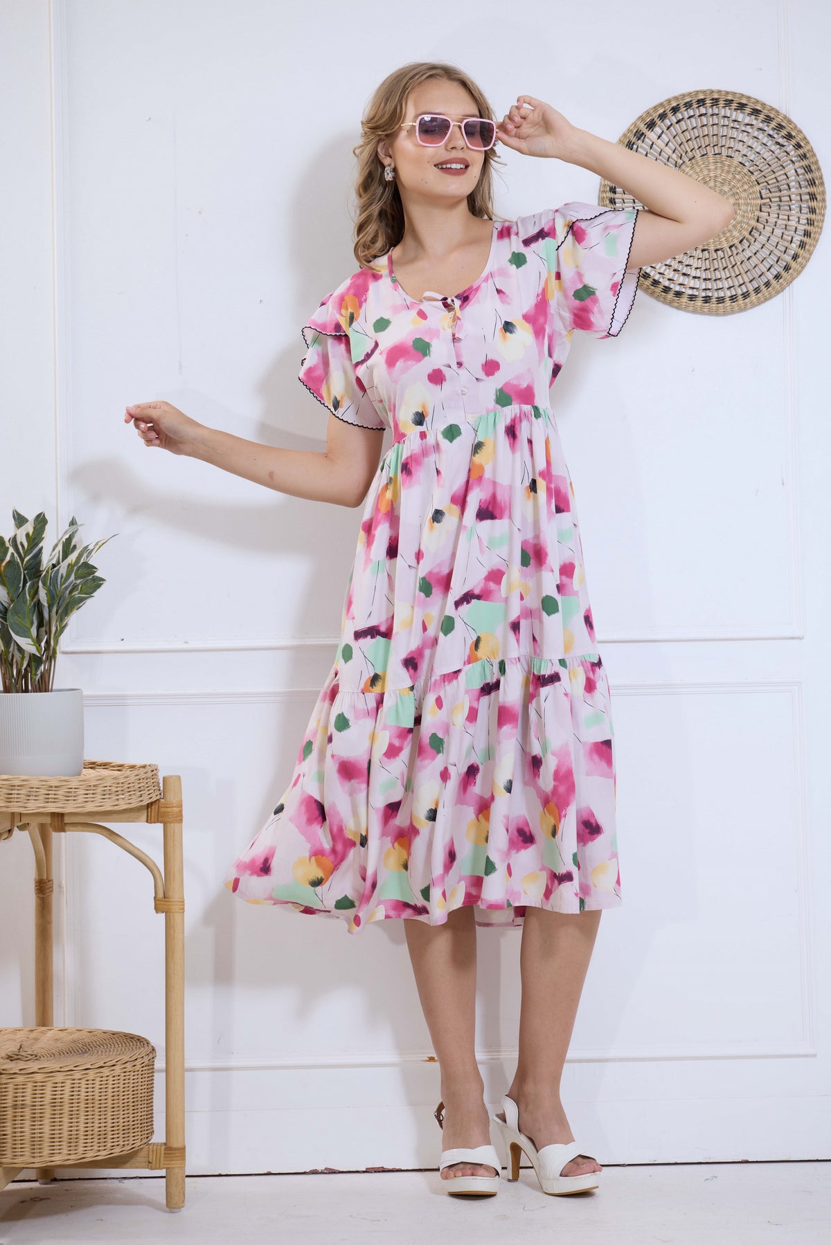 Imported Rayon MAXI FROCK Model Nighties | Fancy Petal Sleeve | Fancy Neck & Side Pocket | Pleated Frock MAXI Style | Trendy Collection's for Stylish Women & Teenage Girl (IRM)