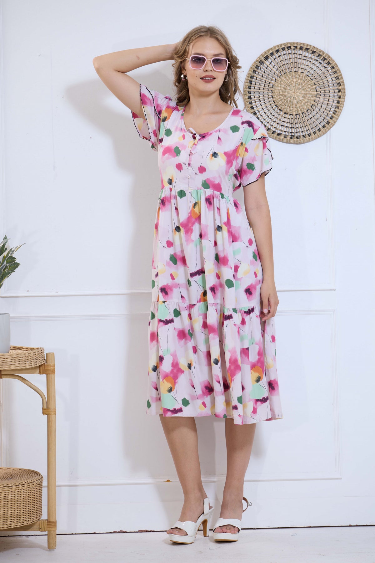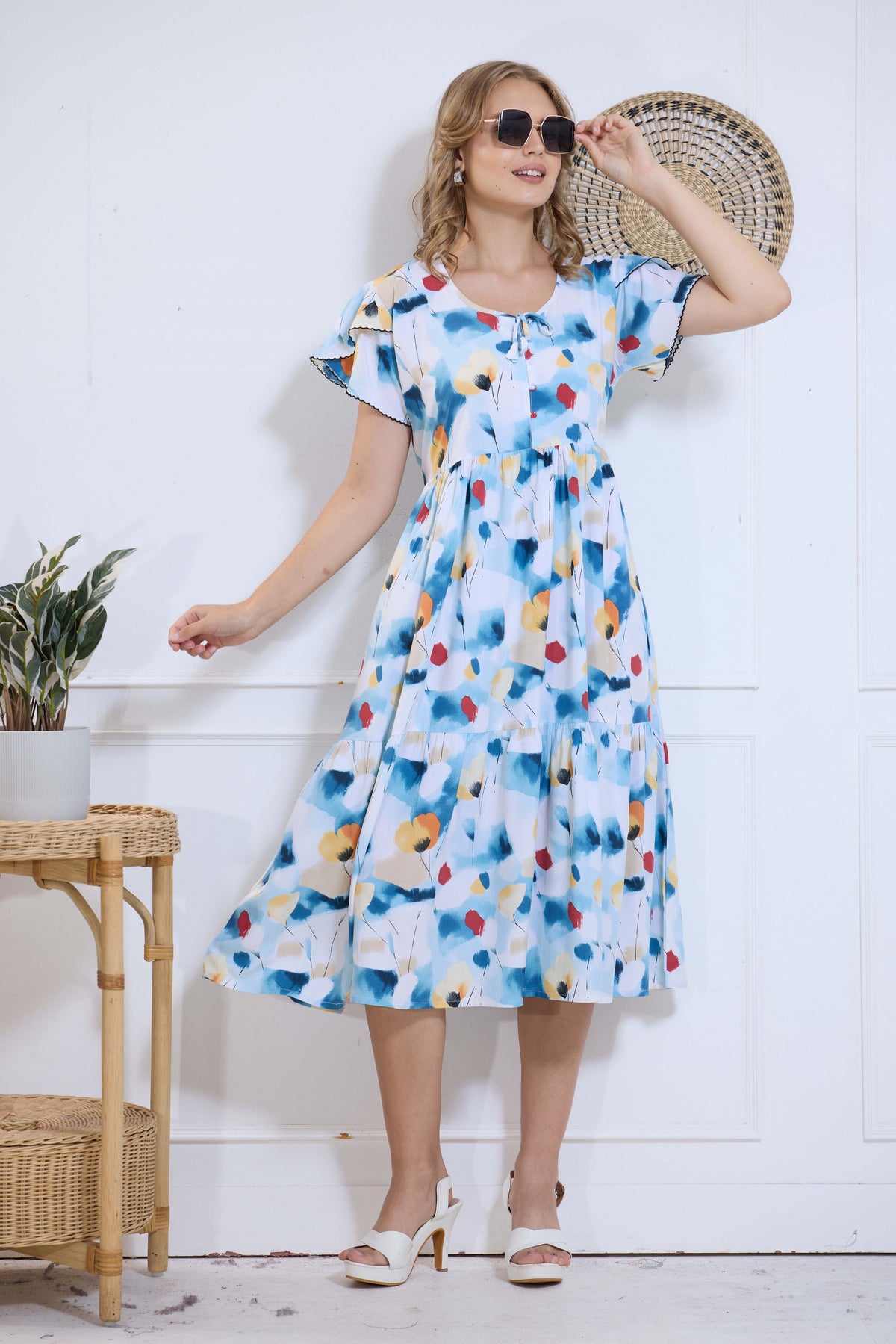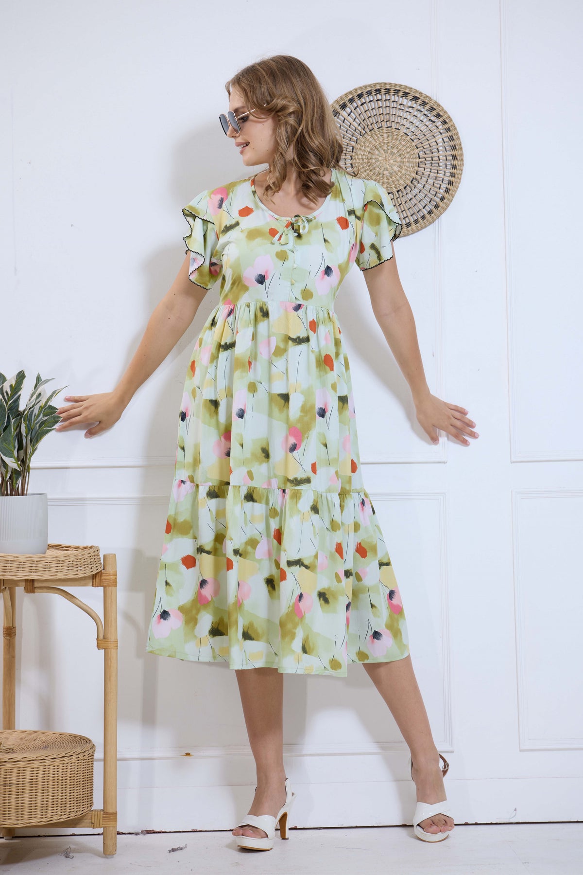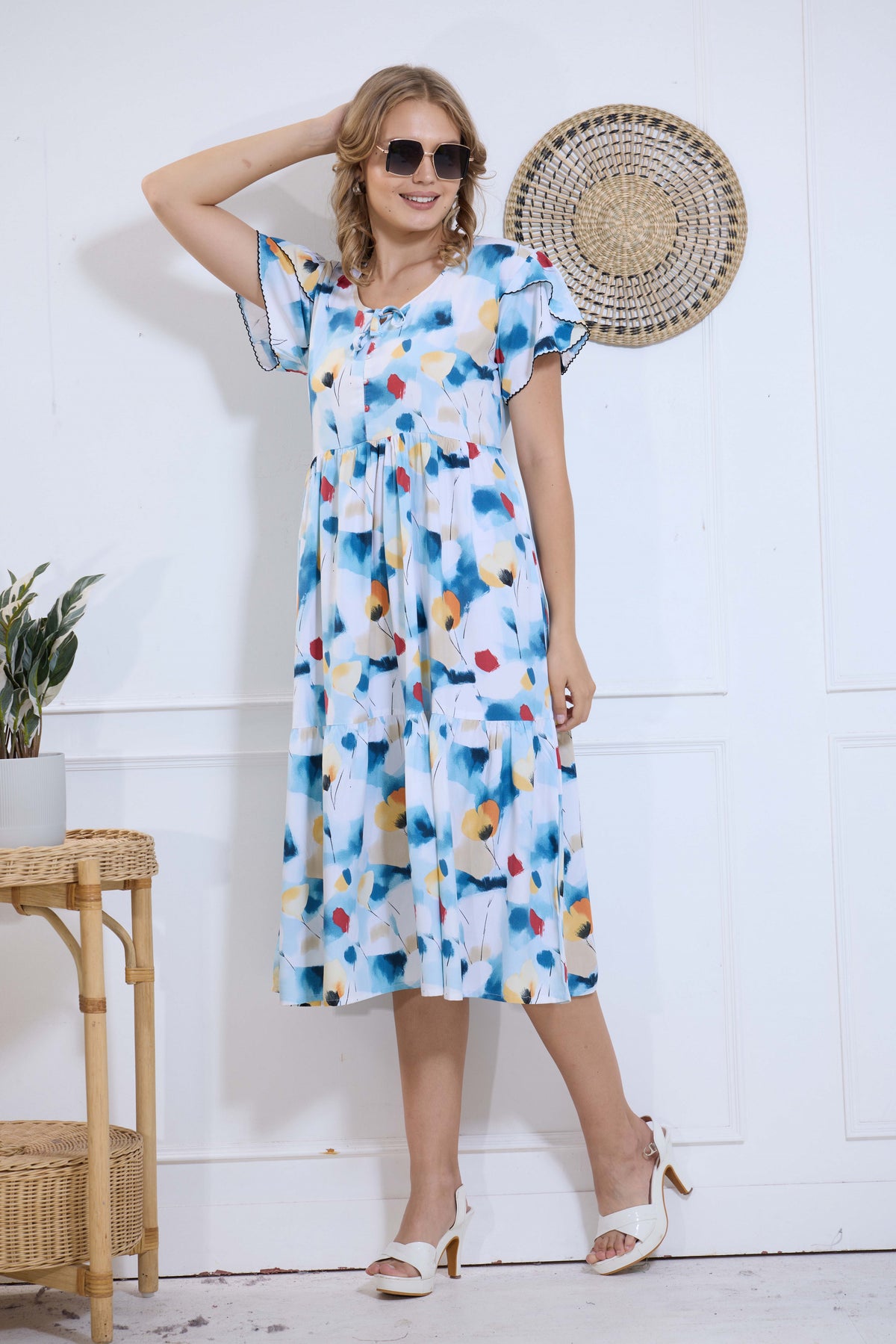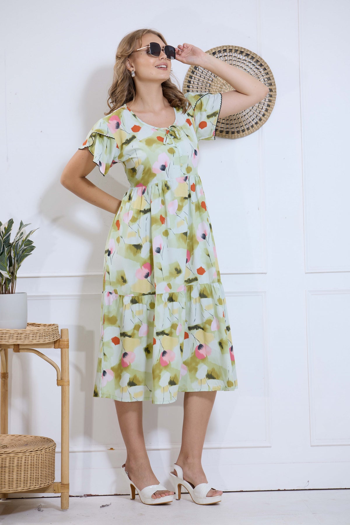 Imported Rayon MAXI FROCK Model Nighties | Fancy Petal Sleeve | Fancy Neck & Side Pocket | Pleated Frock MAXI Style | Trendy Collection's for Stylish Women & Teenage Girl (IRM)
