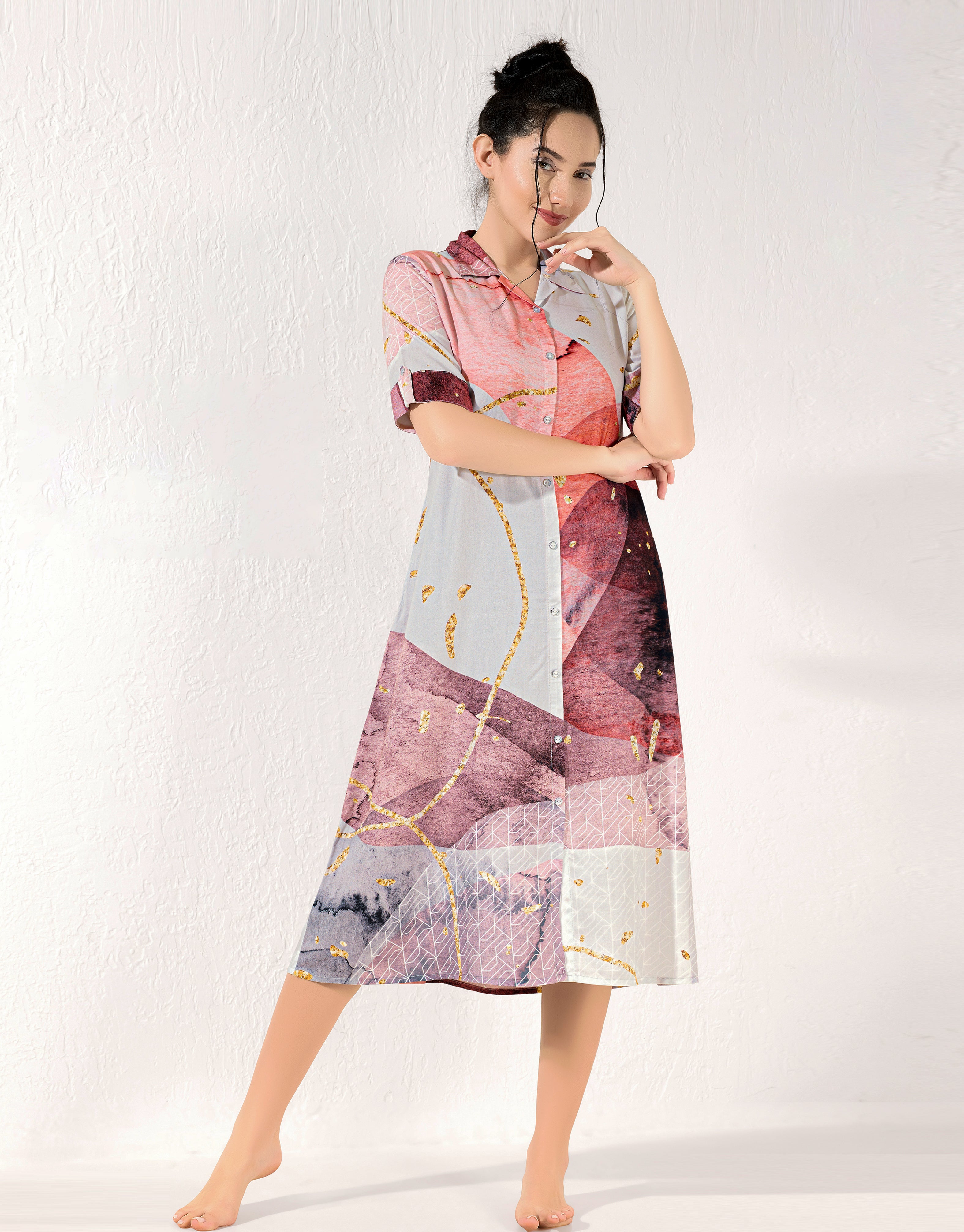 Style: New Collar MAXI Nighty (indicating a long, full-length nightgown with a collared neckline).