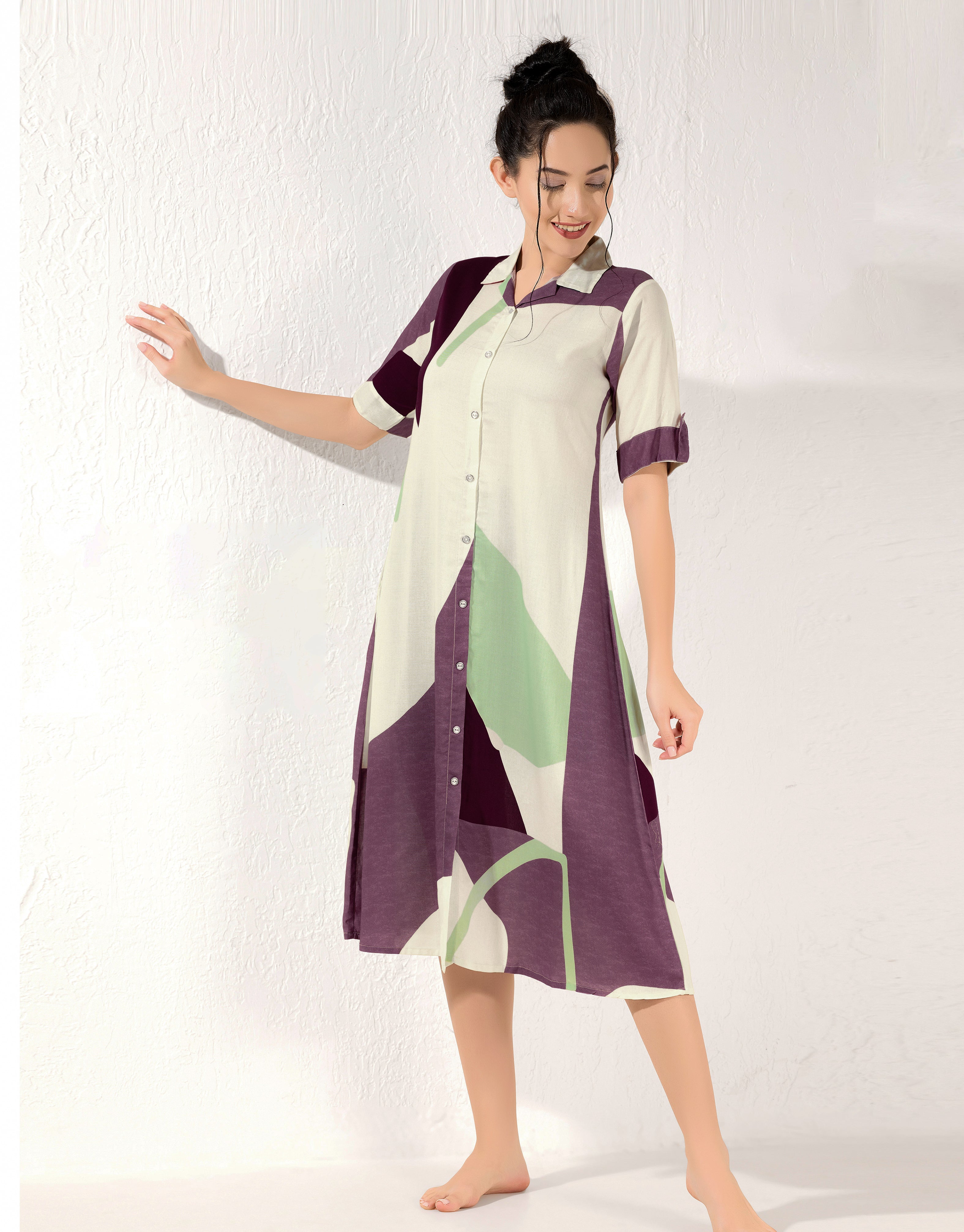Stay Cozy and Stylish this Season with MANGAI’s New Collar MAXI Nighty — crafted from superior-quality rayon for ultimate comfort. Designed with long sleeves and a modern collar style, this trendy nightwear is perfect for your winter wardrobe. Experience the perfect blend of elegance, warmth, and comfort — ideal for relaxing nights and lazy mornings..