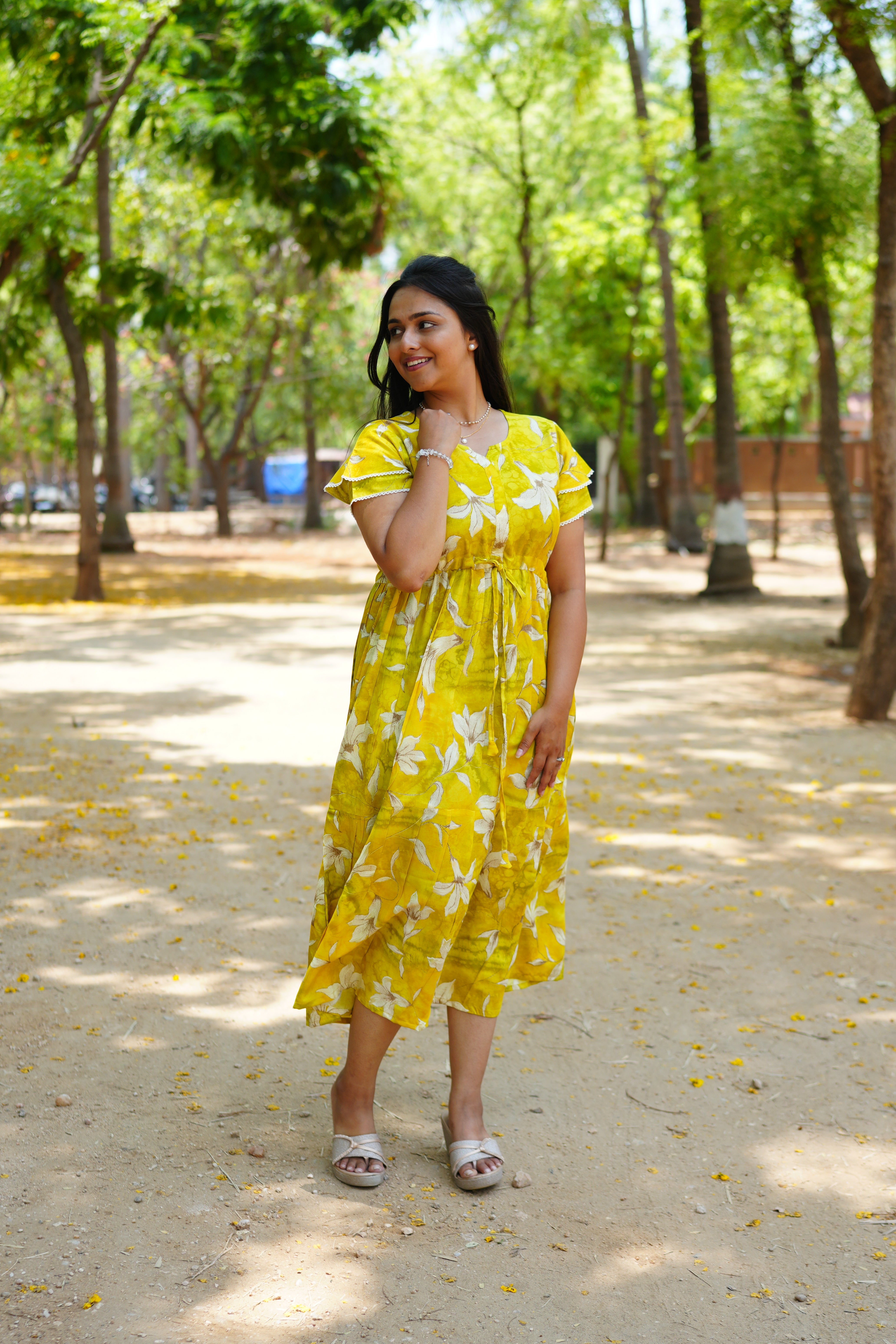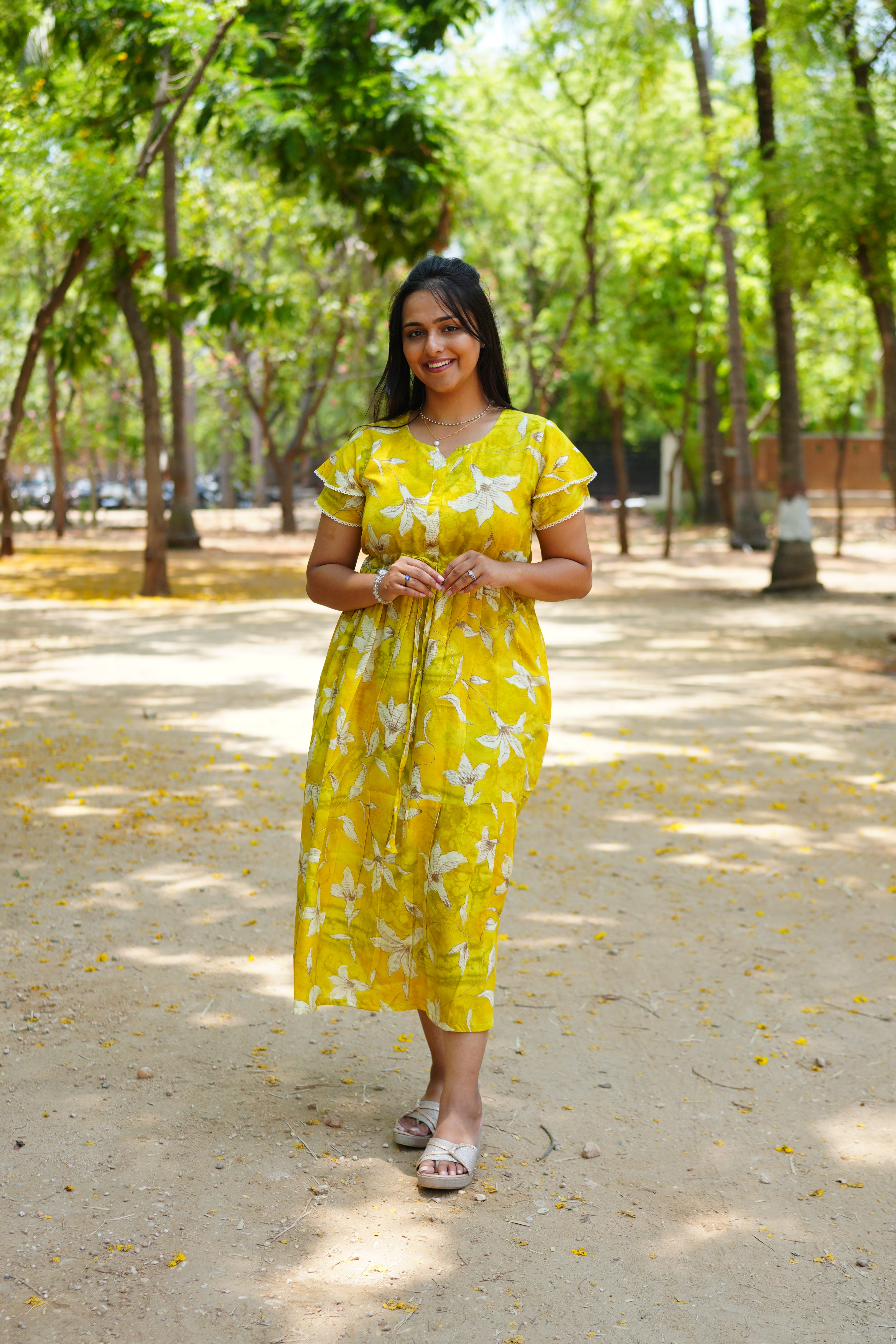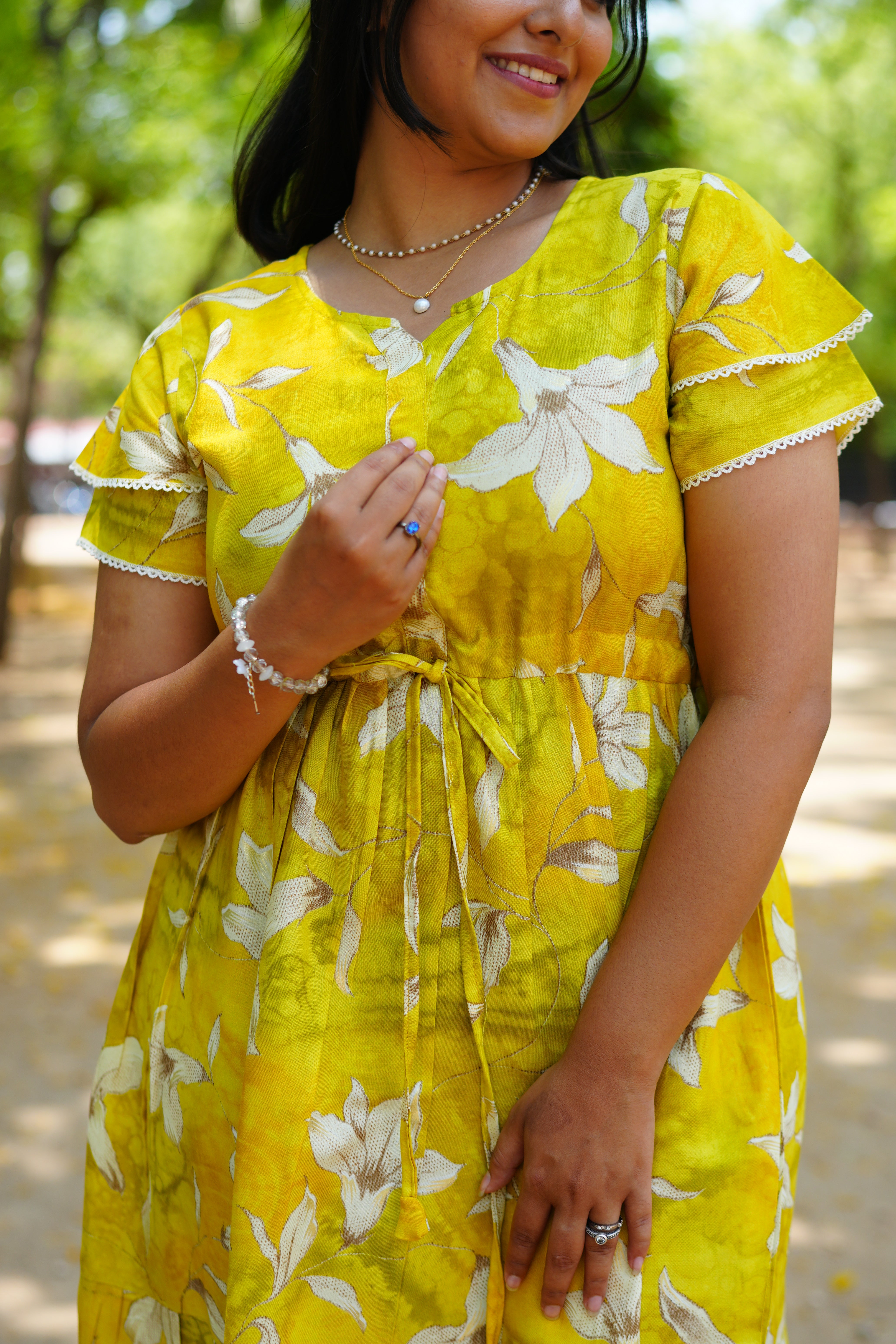 Adjustable Cinched Fit: The functional "Front-Tie Gathering Rope" allows you to define your waistline for a flattering A-line shape or leave it relaxed for an empire-style drape.