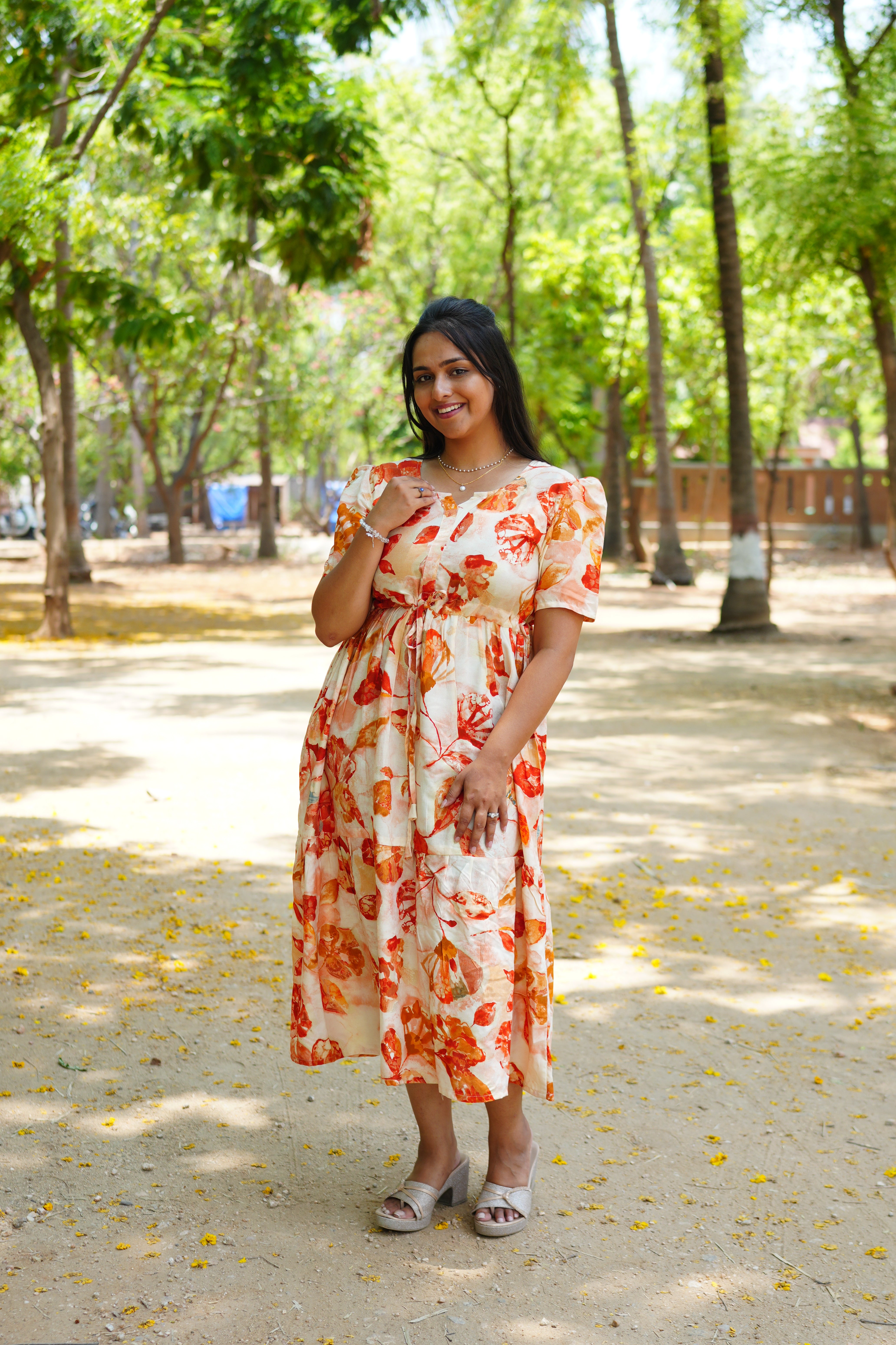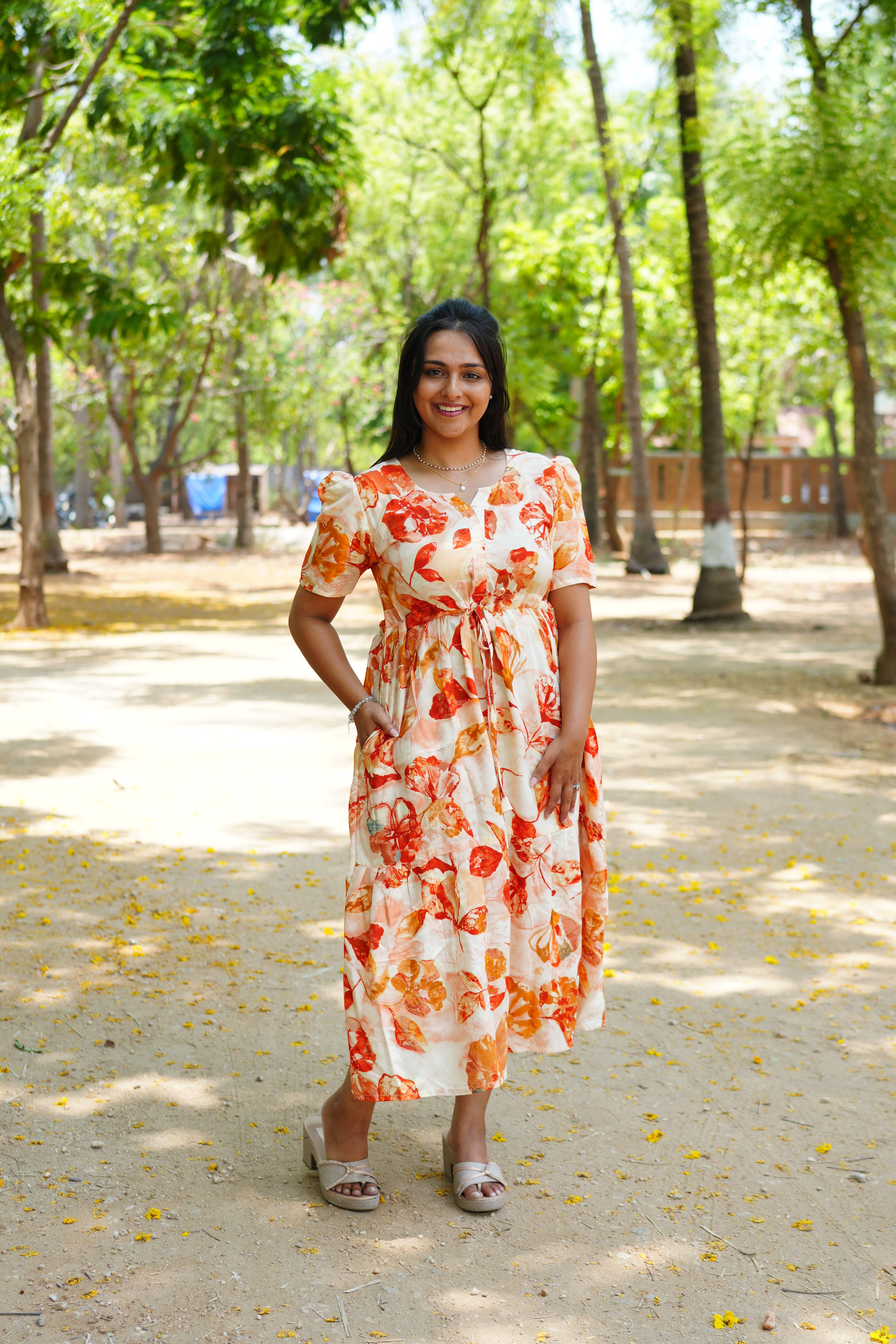 Step into effortless elegance with our latest Summer Arrival. This Soft Rayon Maxi Frock combines a refreshing botanical aesthetic with functional design, making it a versatile staple for both casual outings and garden gatherings.