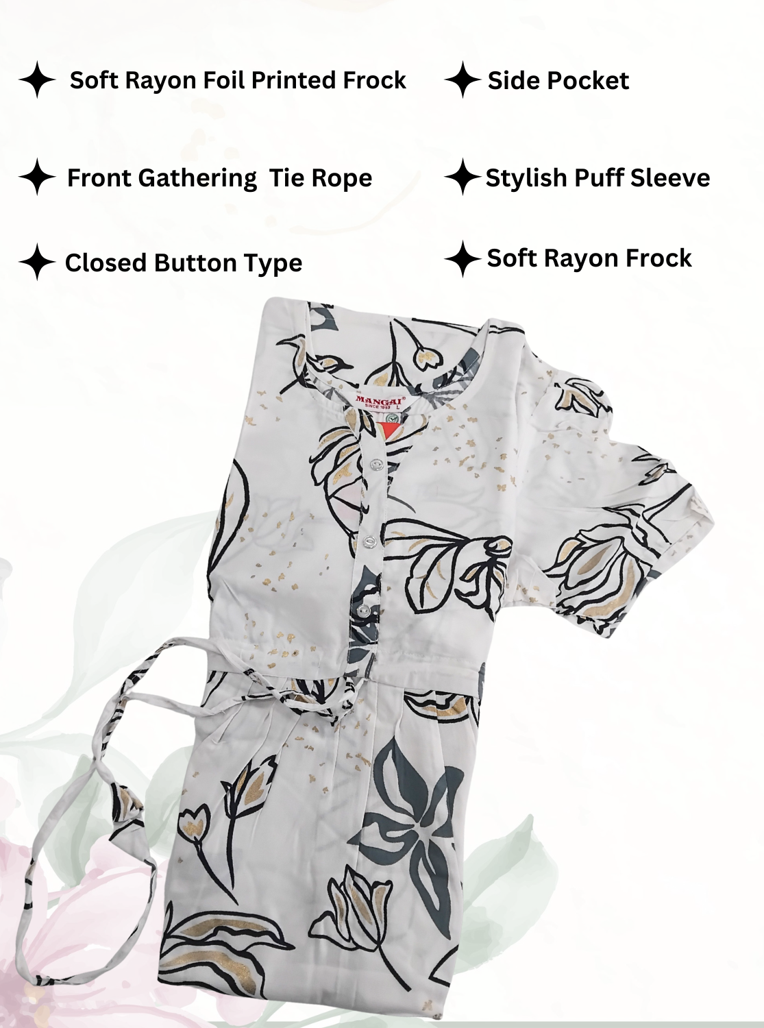 Rayon Colourful Foil Printing Gathering Frock Model Nighties | Side Pocket and Gathering Front Rope | Fancy Sleeve & Maxi Frock Nightwear for Stylish Women's (FGF)