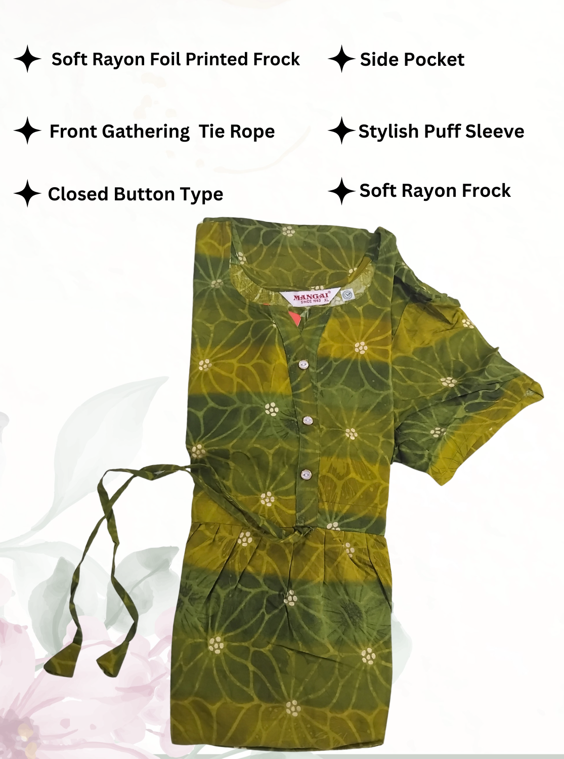 Rayon Colourful Foil Printing Gathering Frock Model Nighties | Side Pocket and Gathering Front Rope | Fancy Sleeve & Maxi Frock Nightwear for Stylish Women's (FGF)