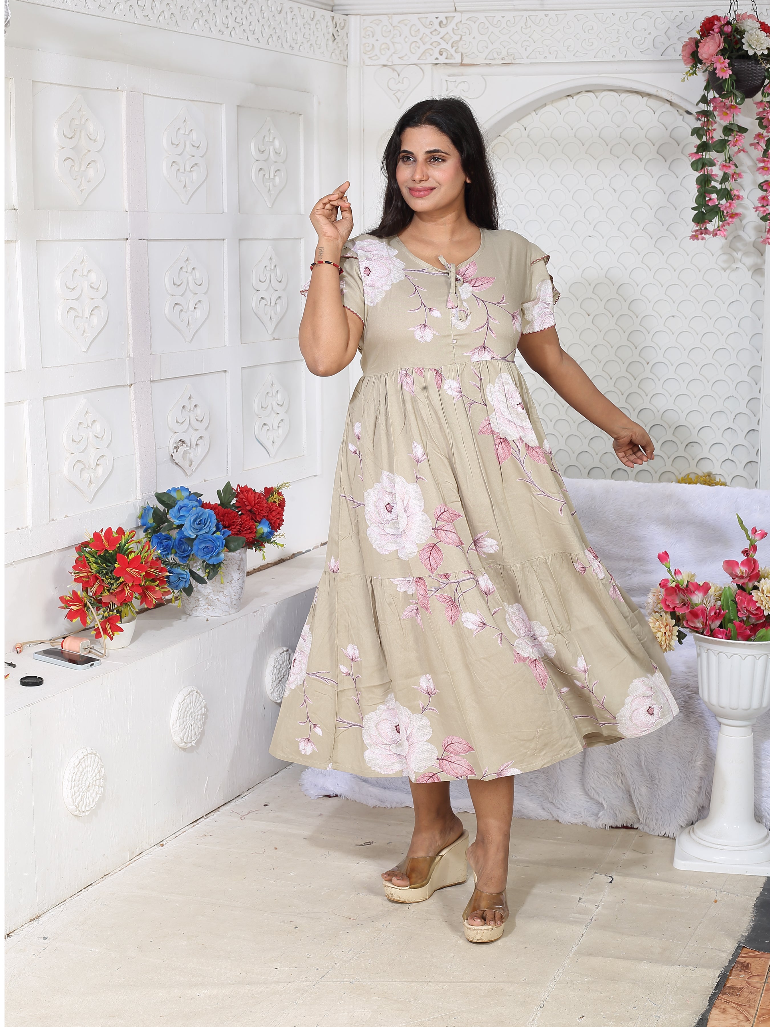 Rayon MAXI FROCK Model Nighties | Fancy Petal Sleeve | Fancy Neck & Side Pocket | Pleated Frock MAXI Style | Trendy Collection's for Stylish Women & Teenage Girl (FSF)