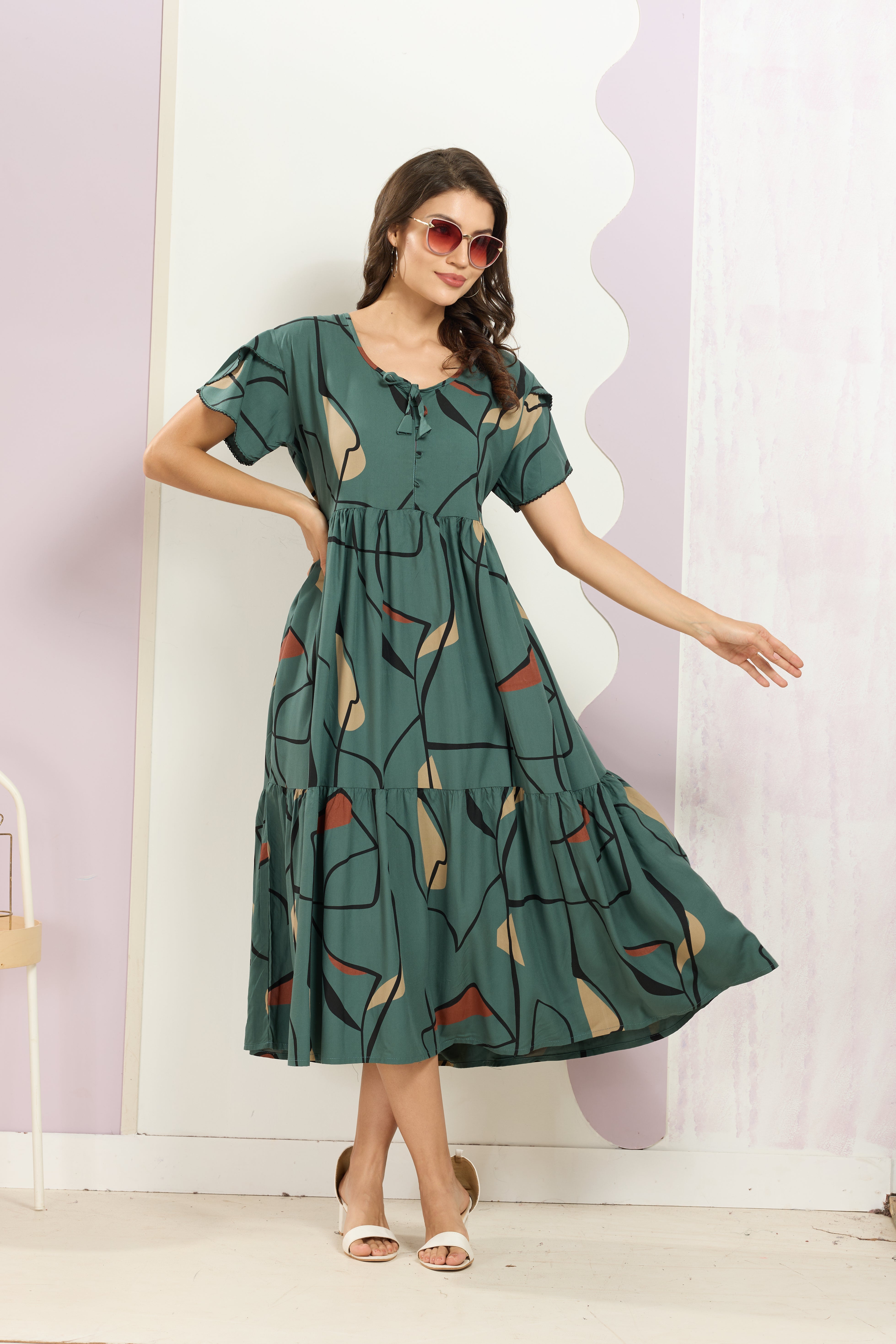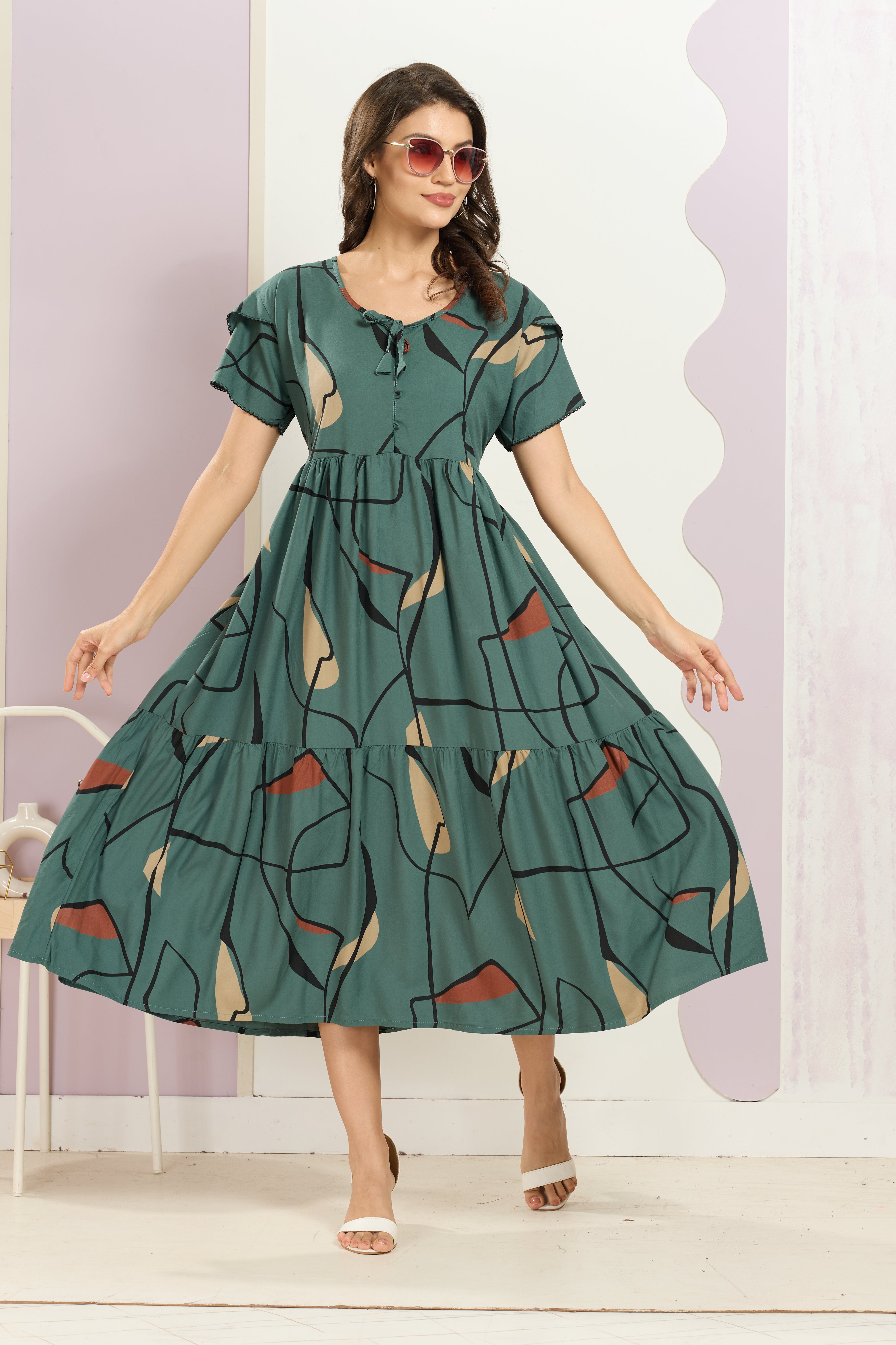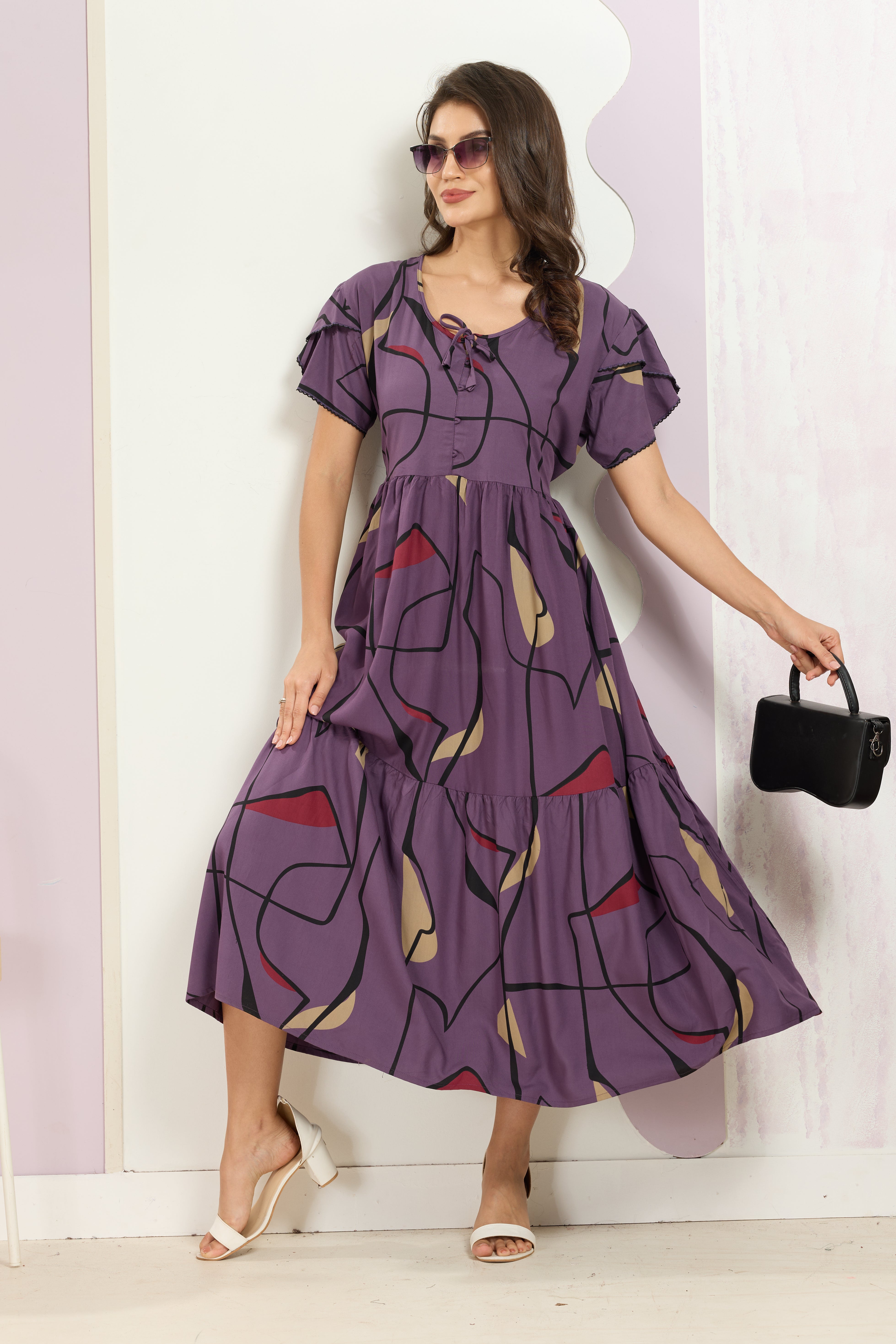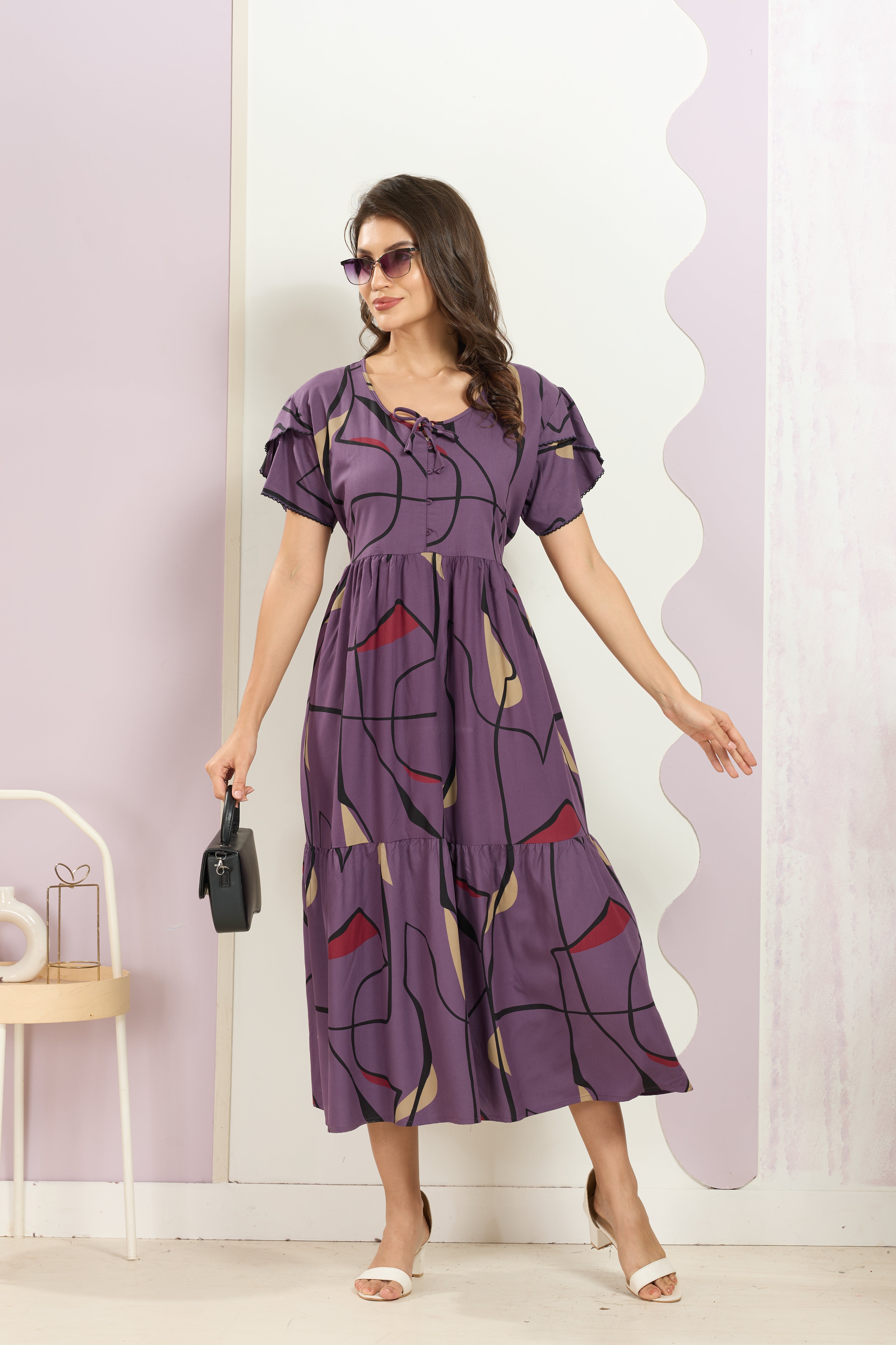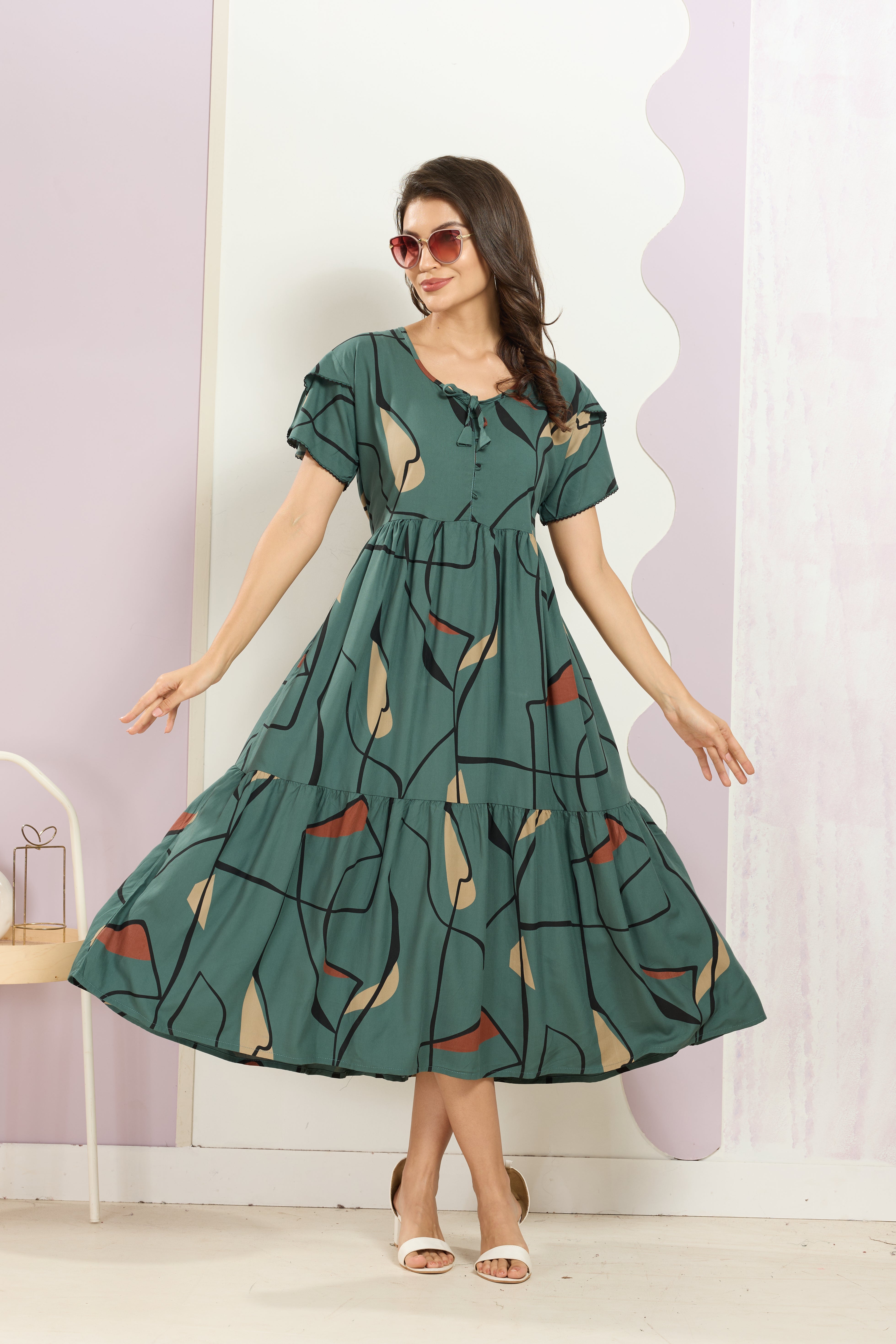 Rayon MAXI FROCK Model Nighties | Fancy Petal Sleeve | Fancy Neck & Side Pocket | Pleated Frock MAXI Style | Trendy Collection's for Stylish Women & Teenage Girl (FSF)