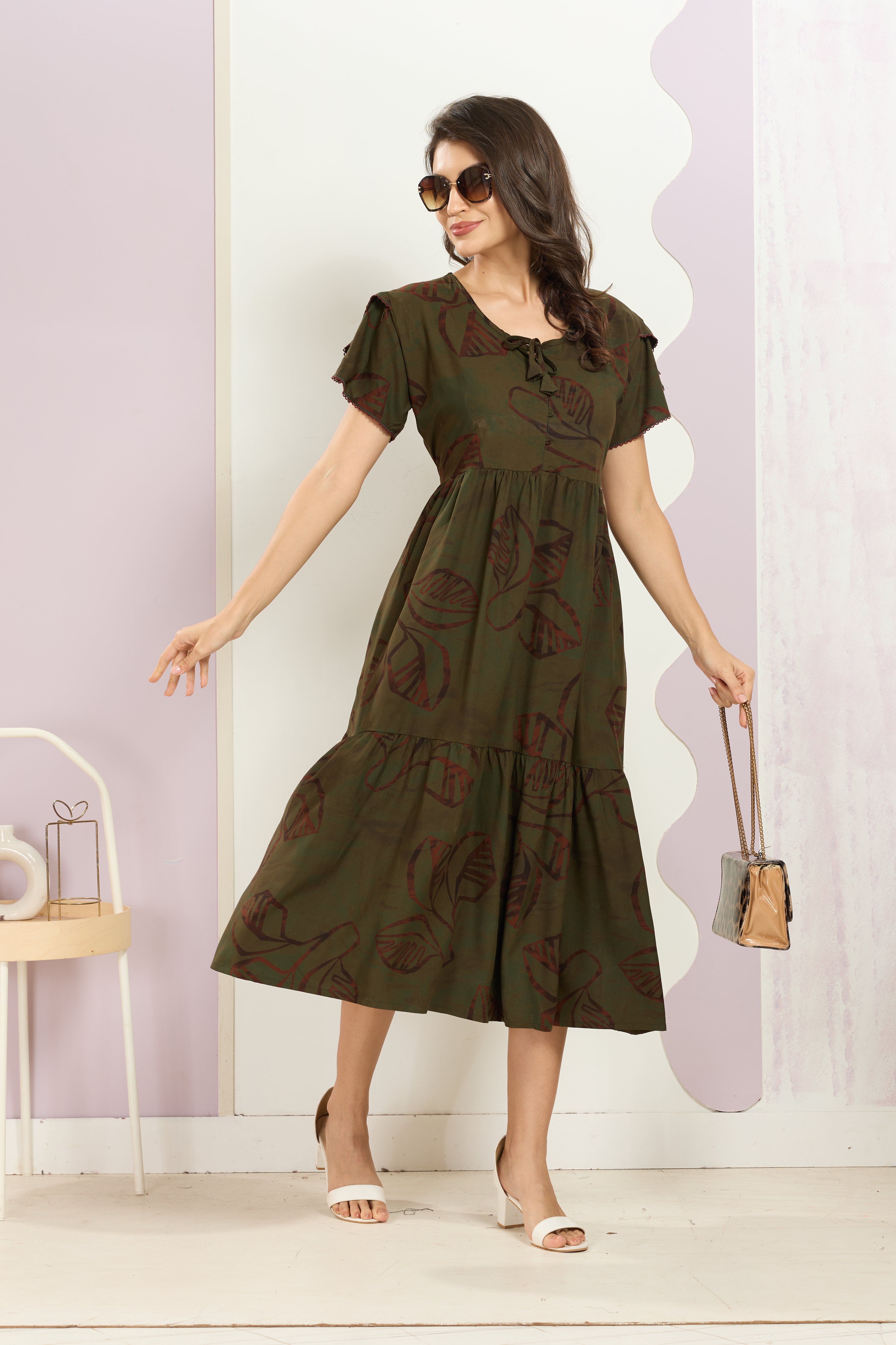 Rayon MAXI FROCK Model Nighties | Fancy Petal Sleeve | Fancy Neck & Side Pocket | Pleated Frock MAXI Style | Trendy Collection's for Stylish Women & Teenage Girl (FSF)