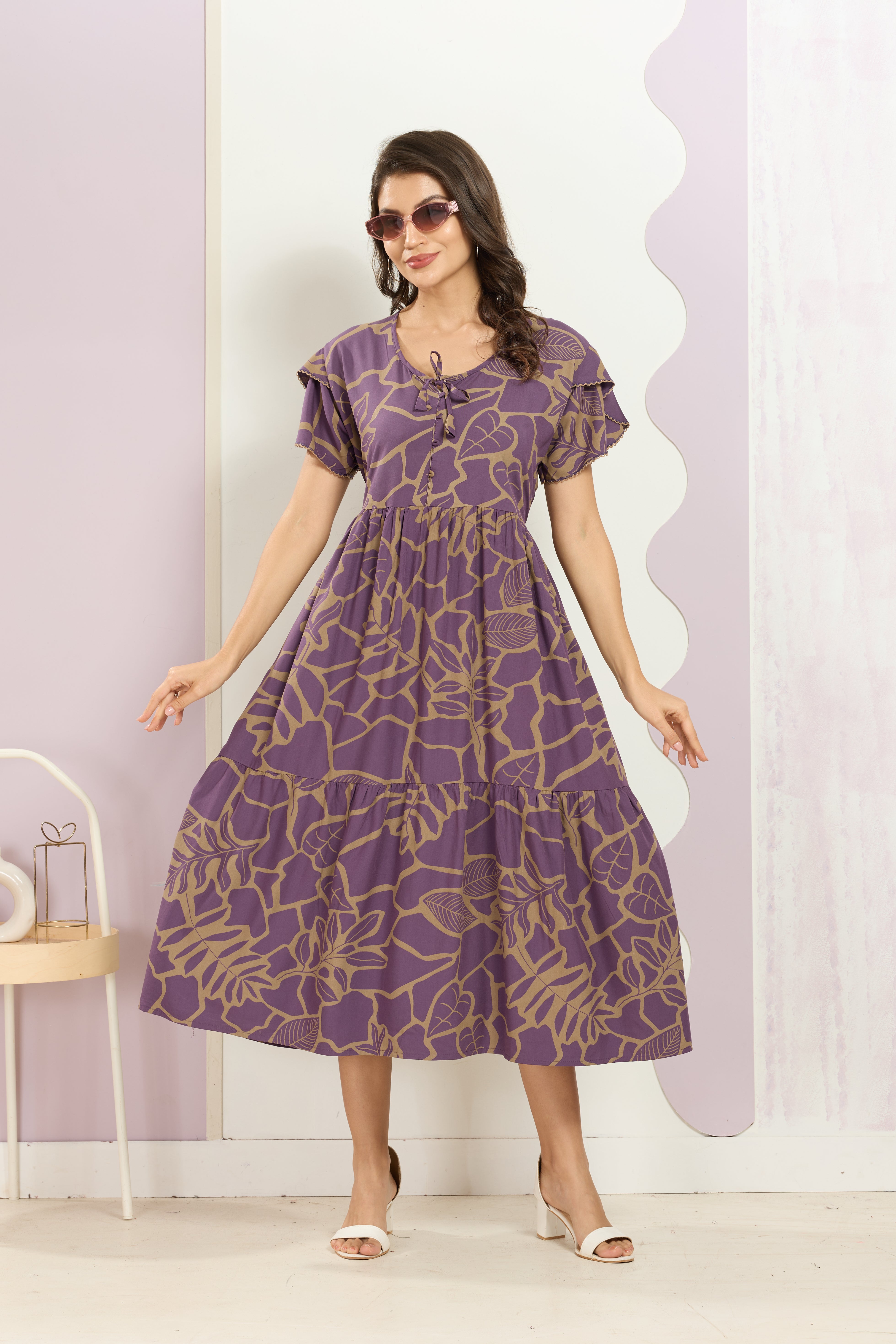 Rayon MAXI FROCK Model Nighties | Fancy Petal Sleeve | Fancy Neck & Side Pocket | Pleated Frock MAXI Style | Trendy Collection's for Stylish Women & Teenage Girl (FSF)