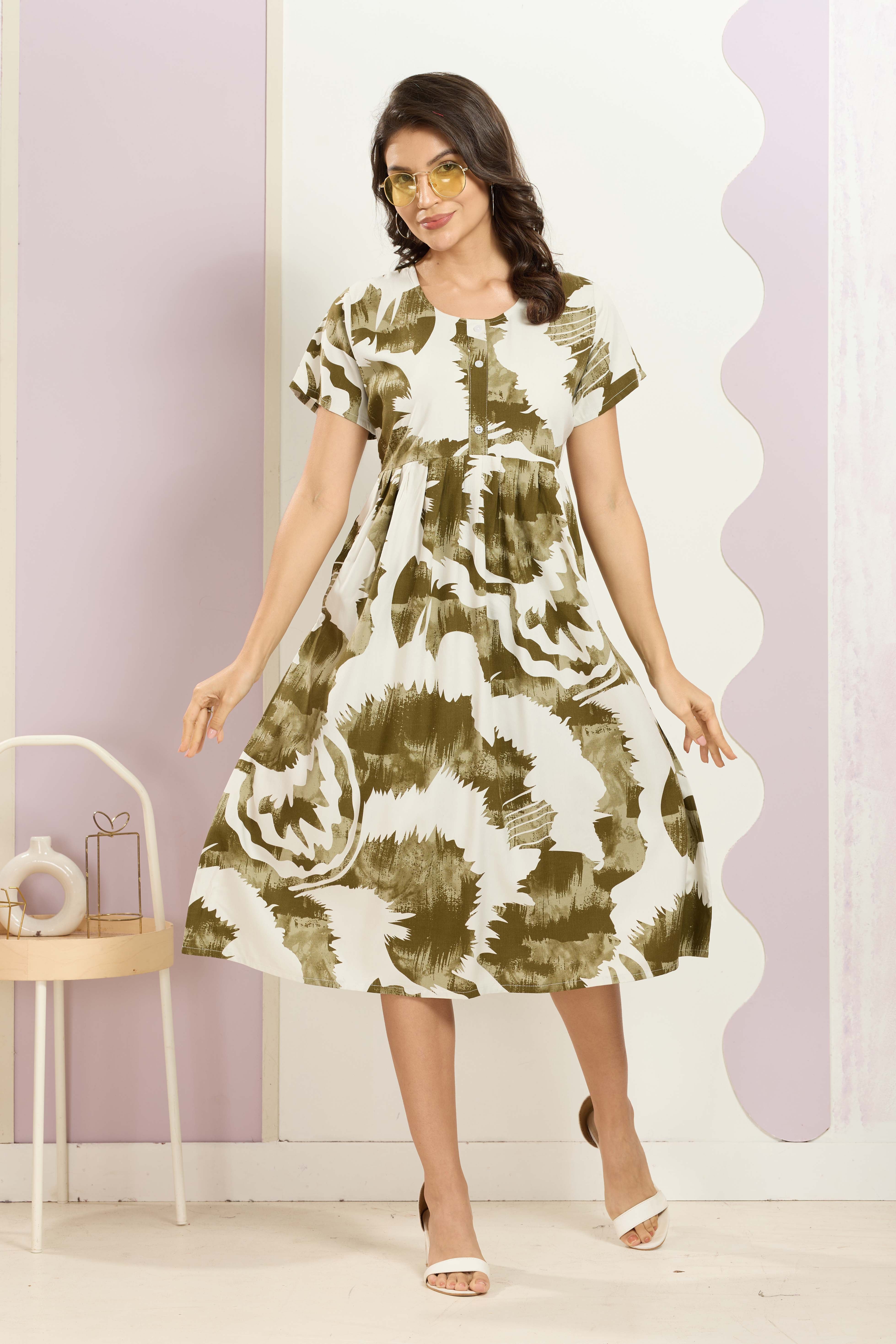 Rayon MAXI FROCK Model Nighties | Round Neck & Side Pocket | Pleated Frock MAXI Style | Trendy Collection's for Stylish Women & Teenage Girl (FRH)