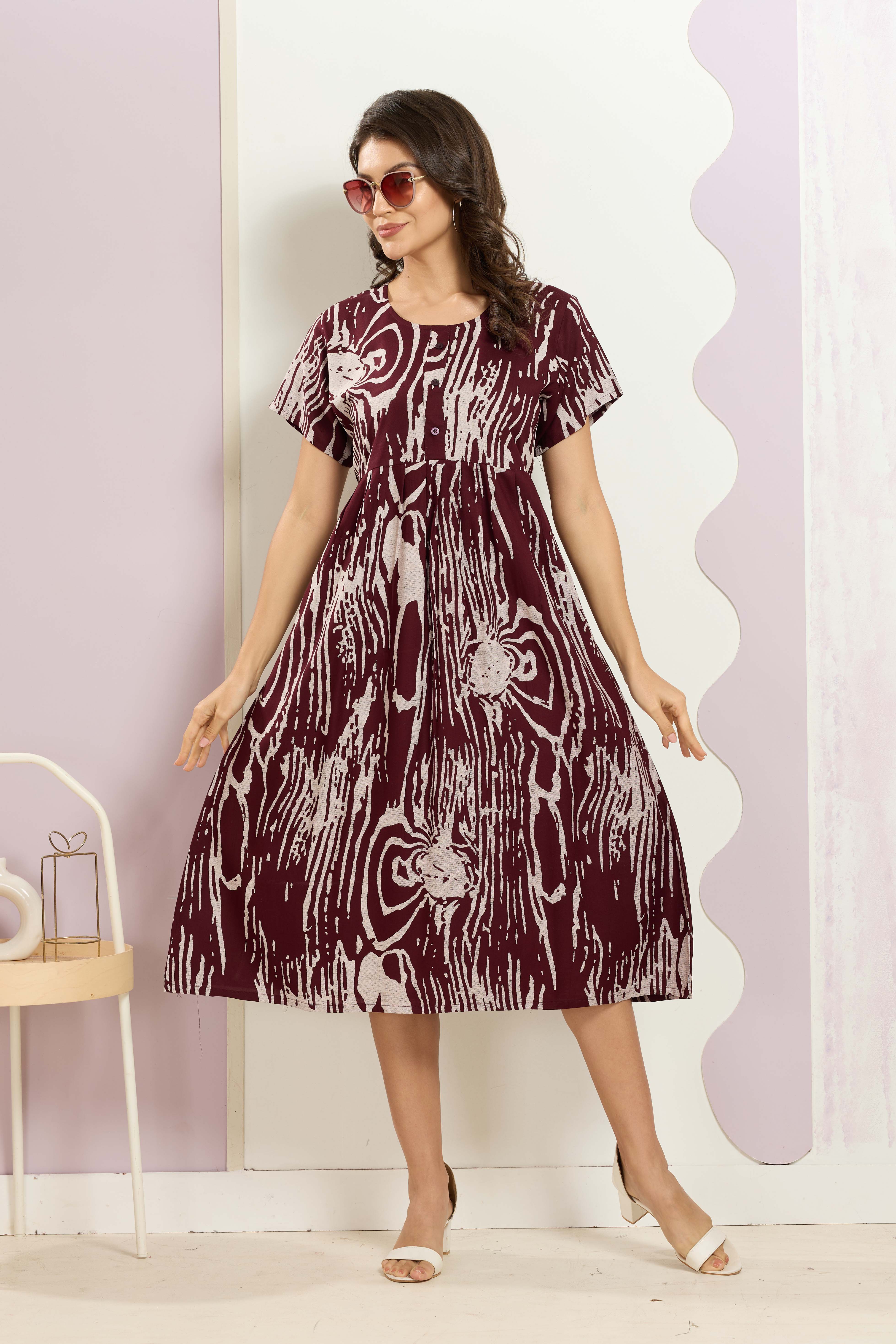 Rayon MAXI FROCK Model Nighties | Round Neck & Side Pocket | Pleated Frock MAXI Style | Trendy Collection's for Stylish Women & Teenage Girl (FRH)