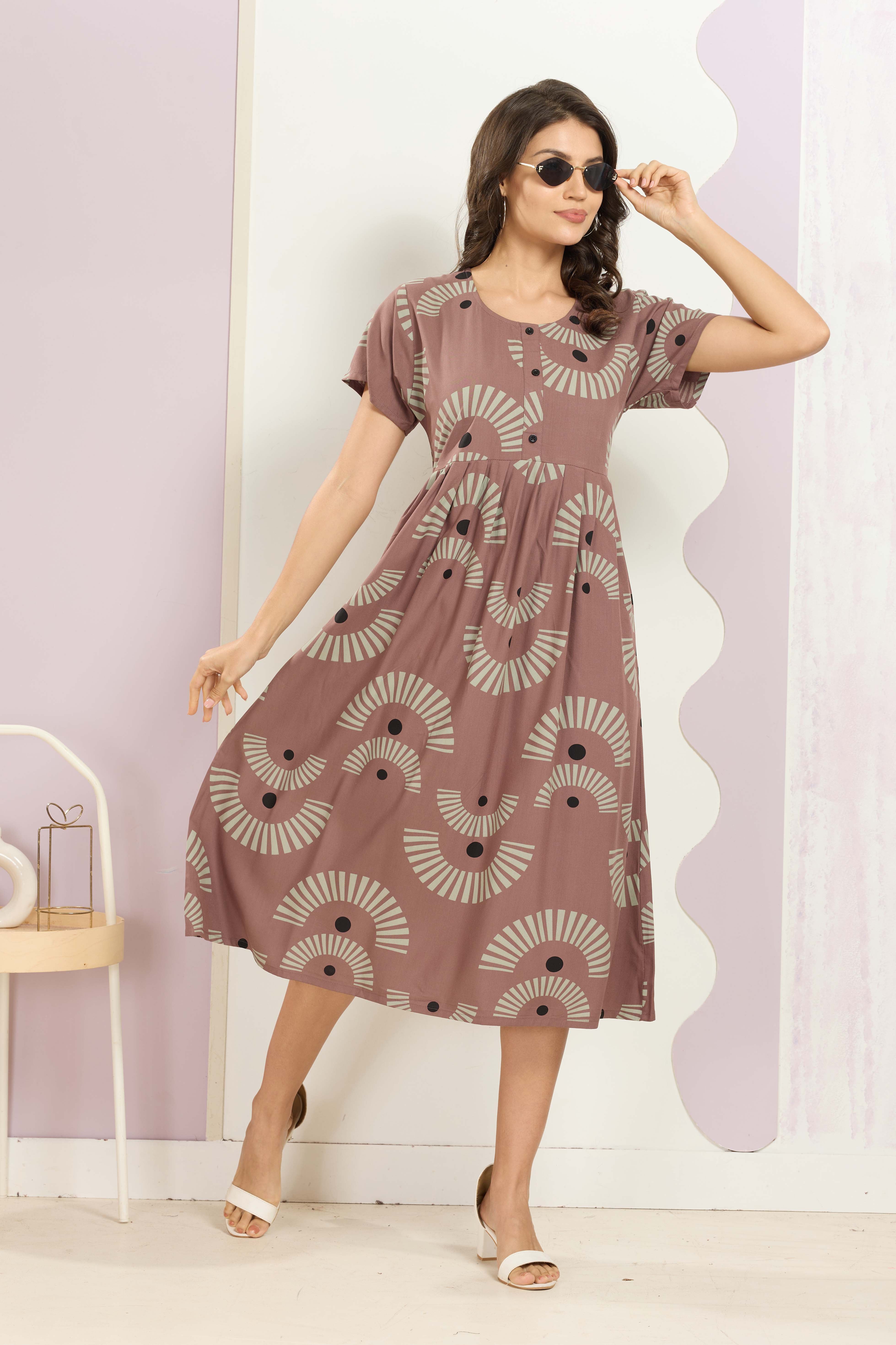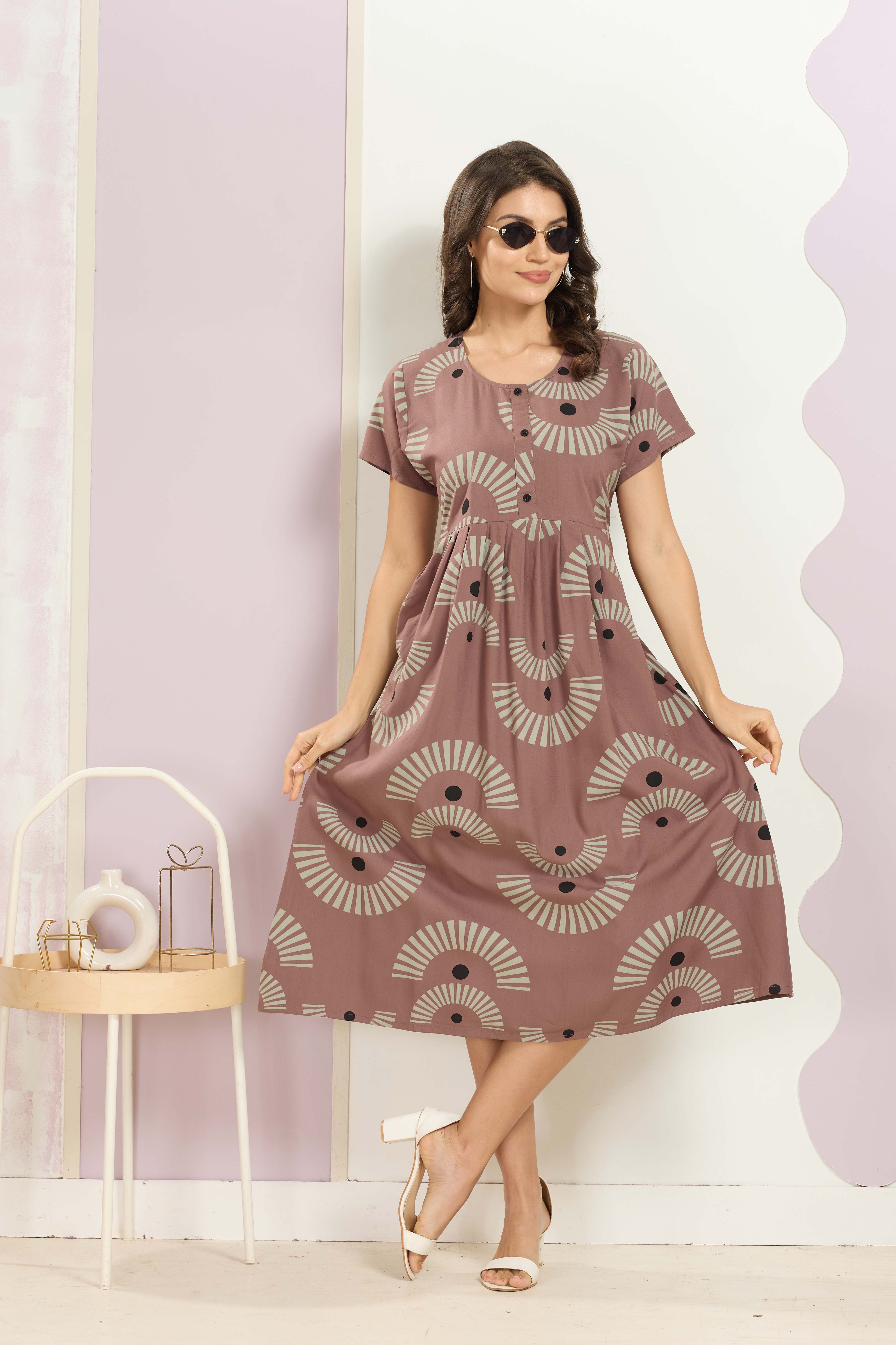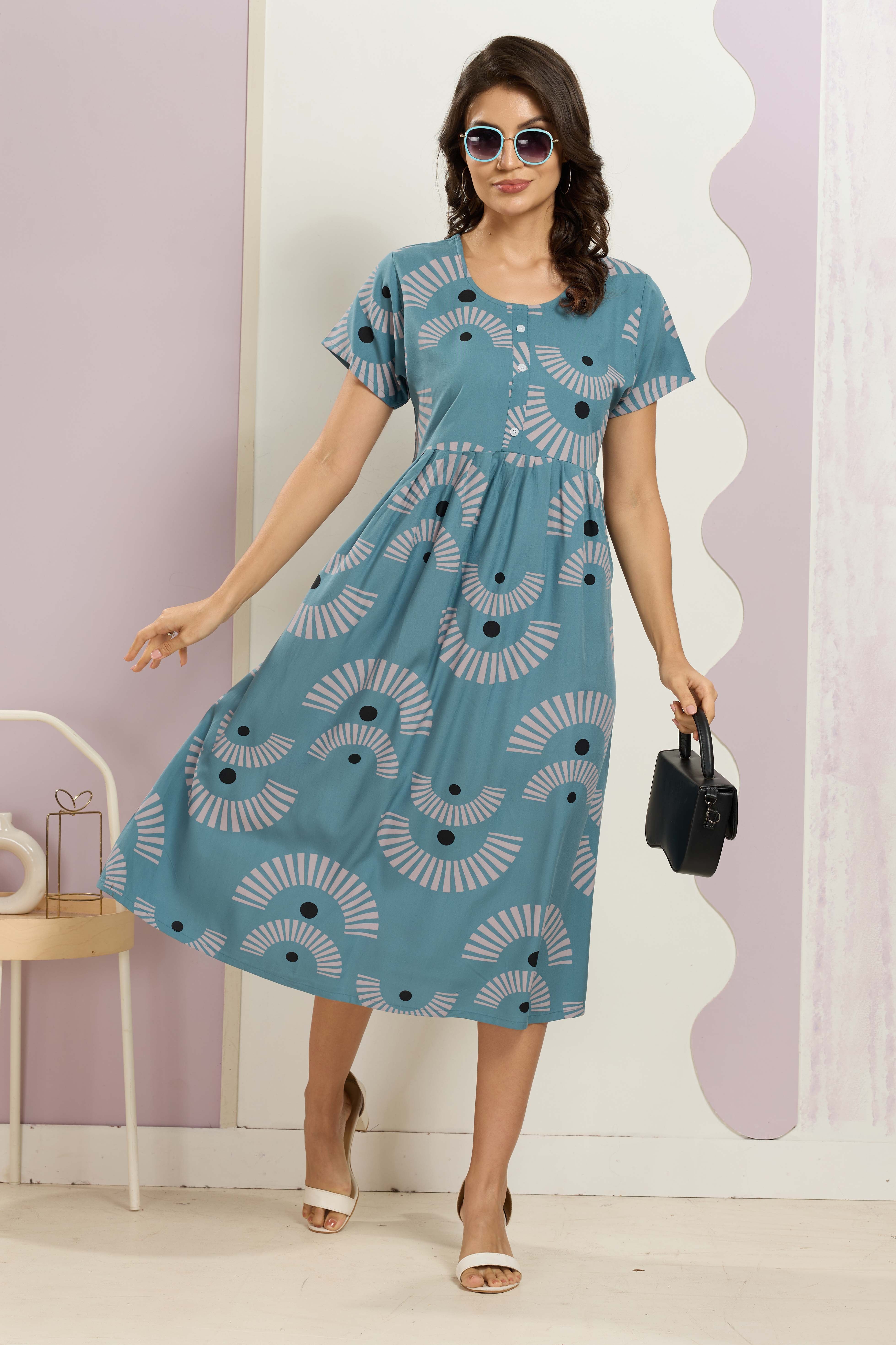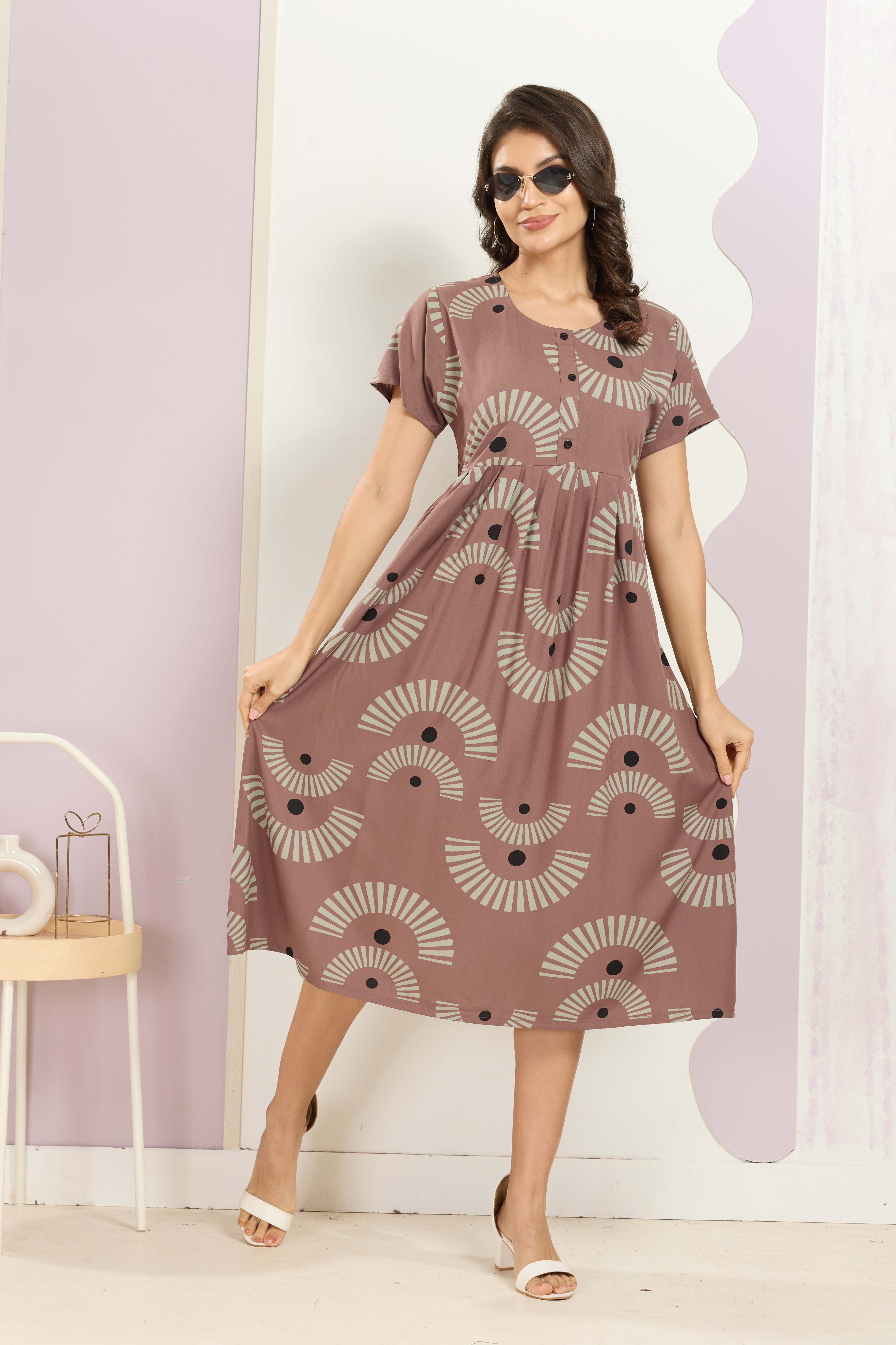 Rayon MAXI FROCK Model Nighties | Round Neck & Side Pocket | Pleated Frock MAXI Style | Trendy Collection's for Stylish Women & Teenage Girl (FRH)
