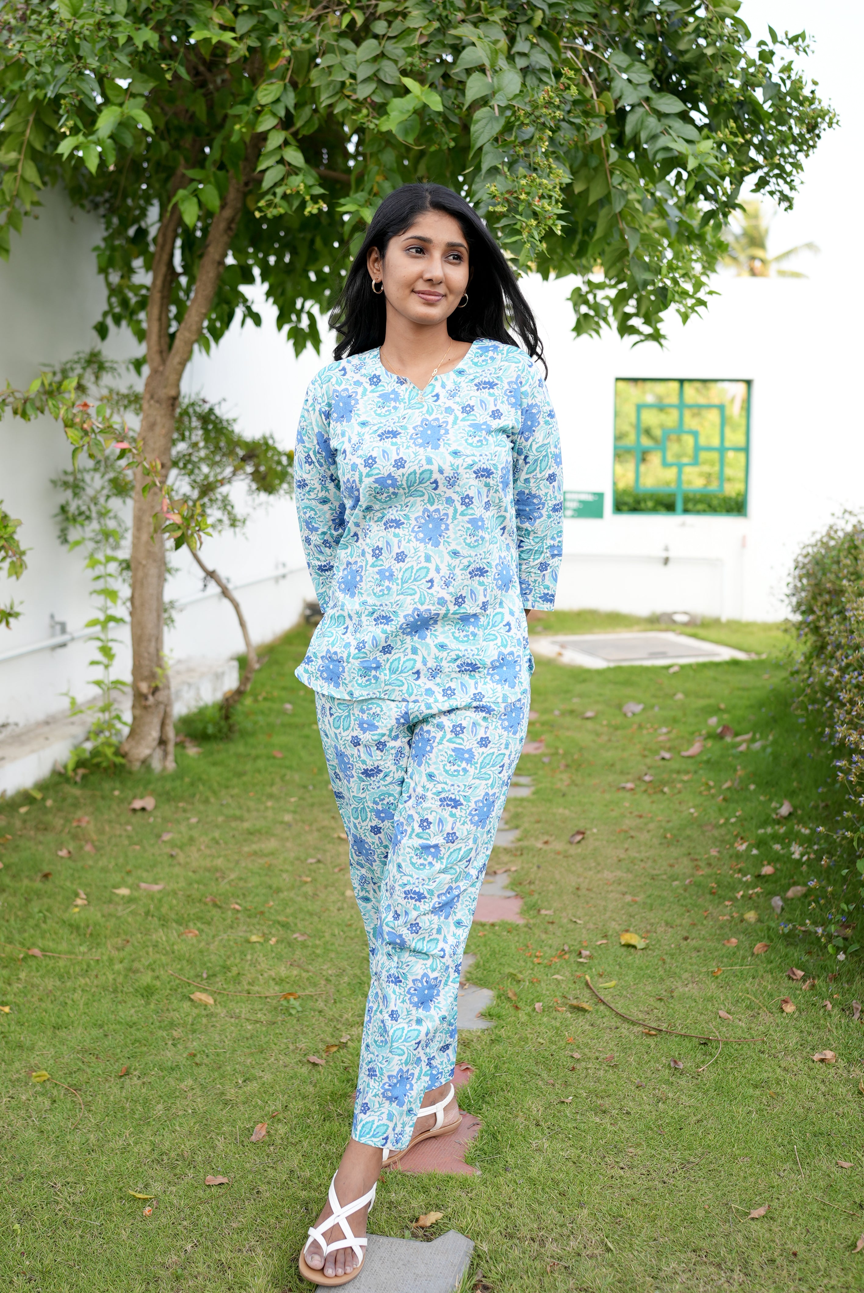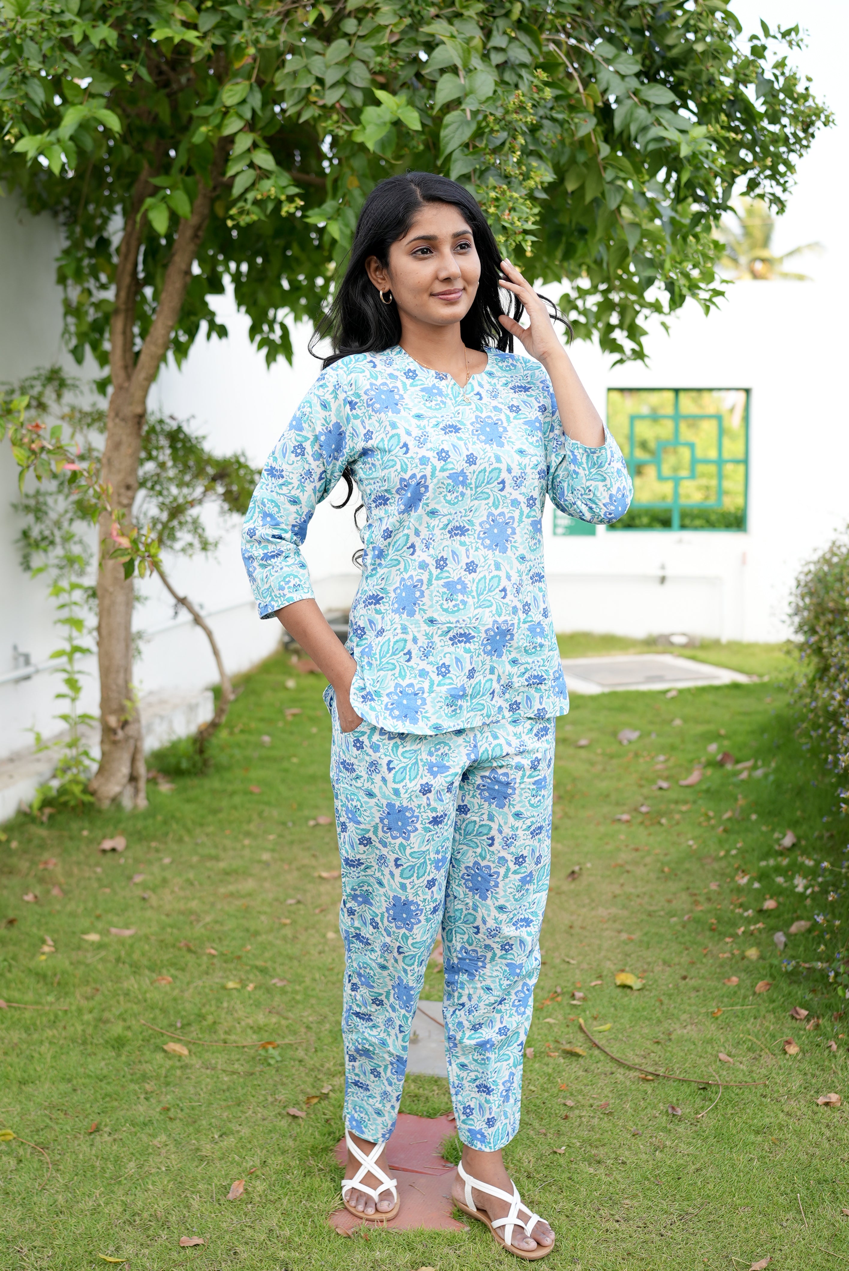 MANGAI Premium Cotton Printed Night Suits | Stylish Print's All Over | Top & Bottom Set | 3/4 Sleeve | Trendy Night Suits for Stylish Women's (TPS-3/4)