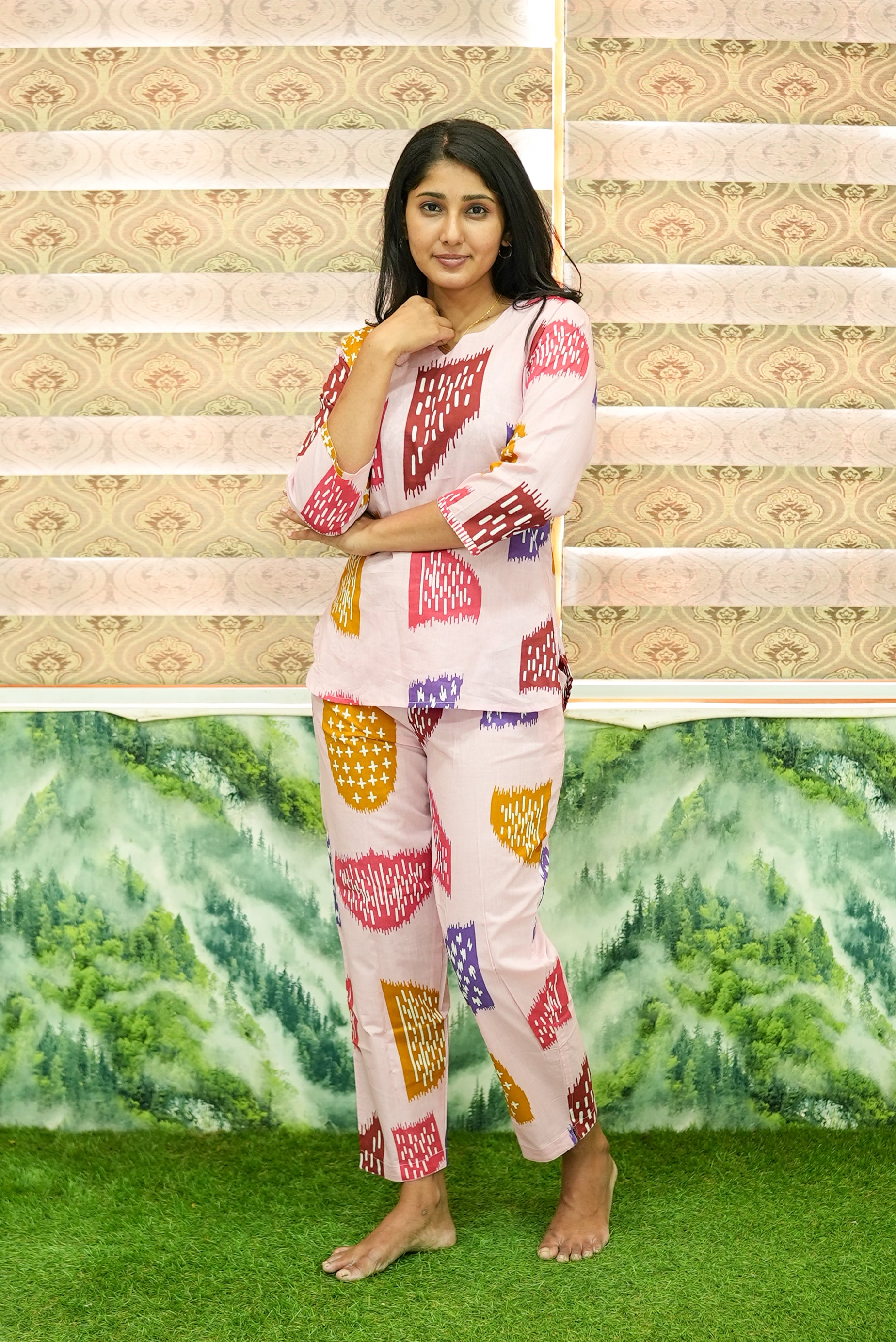 Whether you're lounging at home or getting a peaceful night's sleep, this cord set is your perfect nightwear companion. Designed for all stylish women who love comfort with elegance.