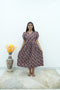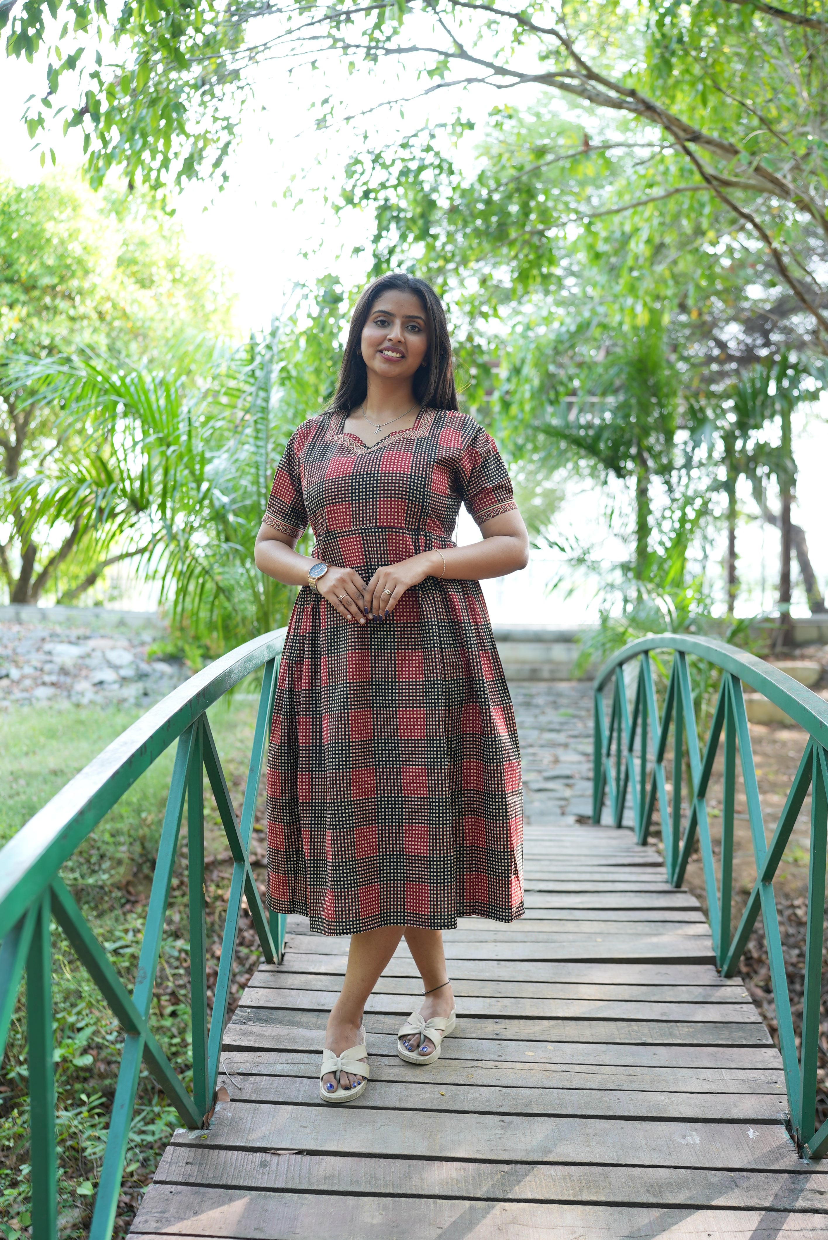 Premium Soft Cotton Maternity Maxi Frock – Invisible Dual Feeding Zippers with Stylish Neck Puff Sleeves & Geometric Check Print