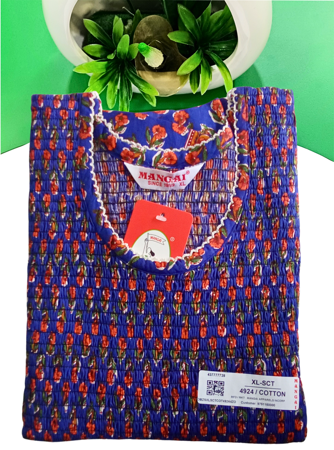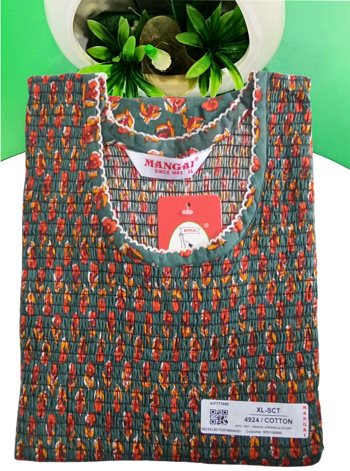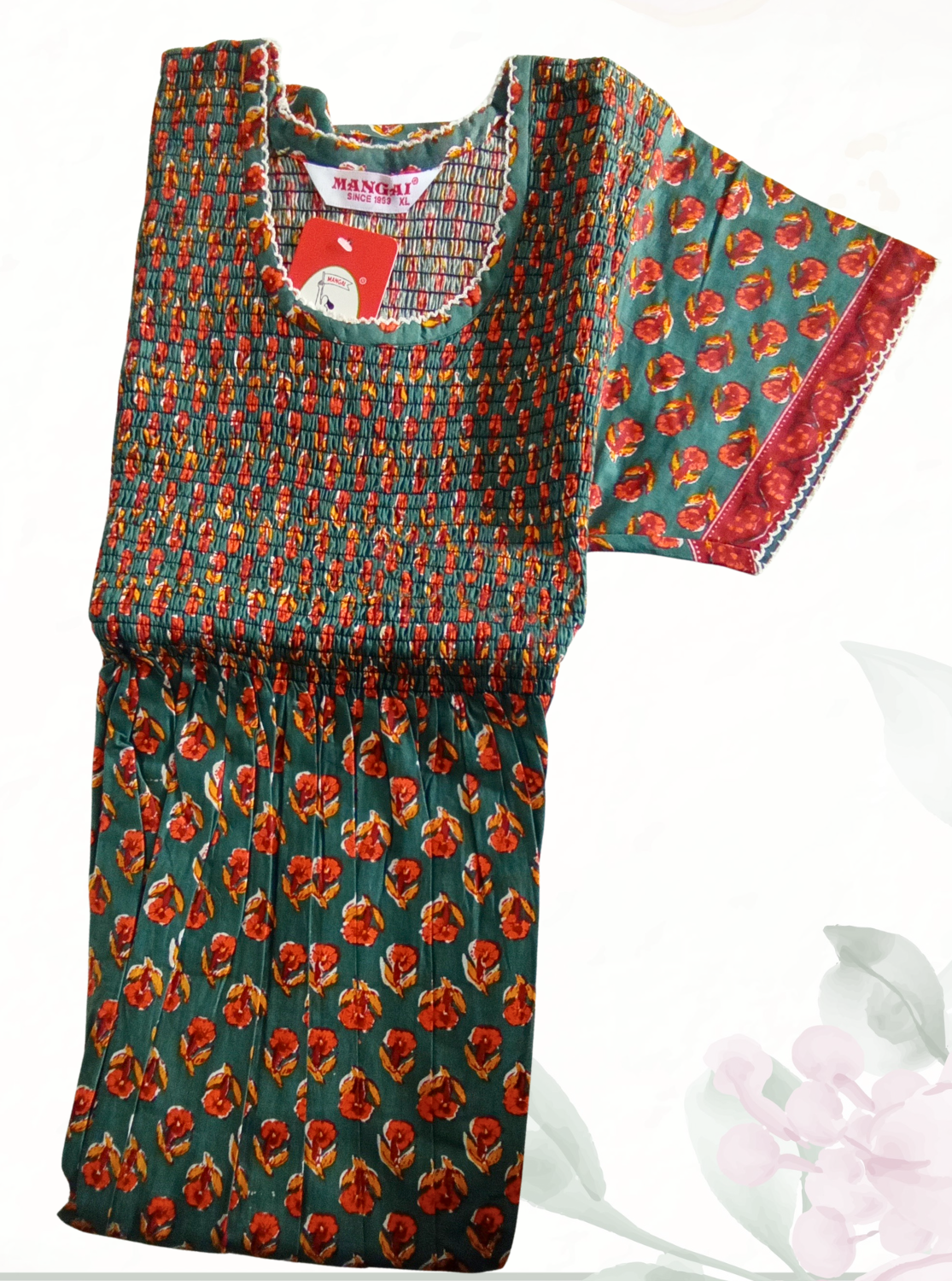 Indulge in ultimate comfort and style with the MANGAI Premium Cotton Printed Smokey Nighty. This exquisite nightwear piece is designed for the modern woman who values both comfort and fashion.