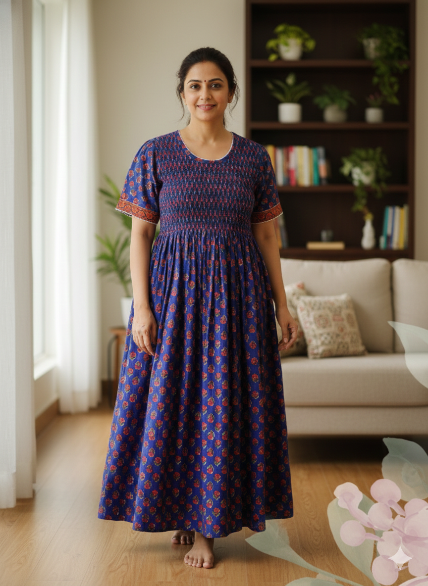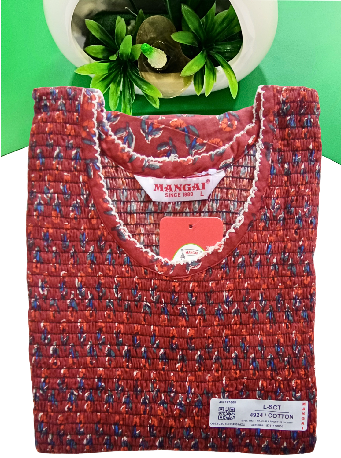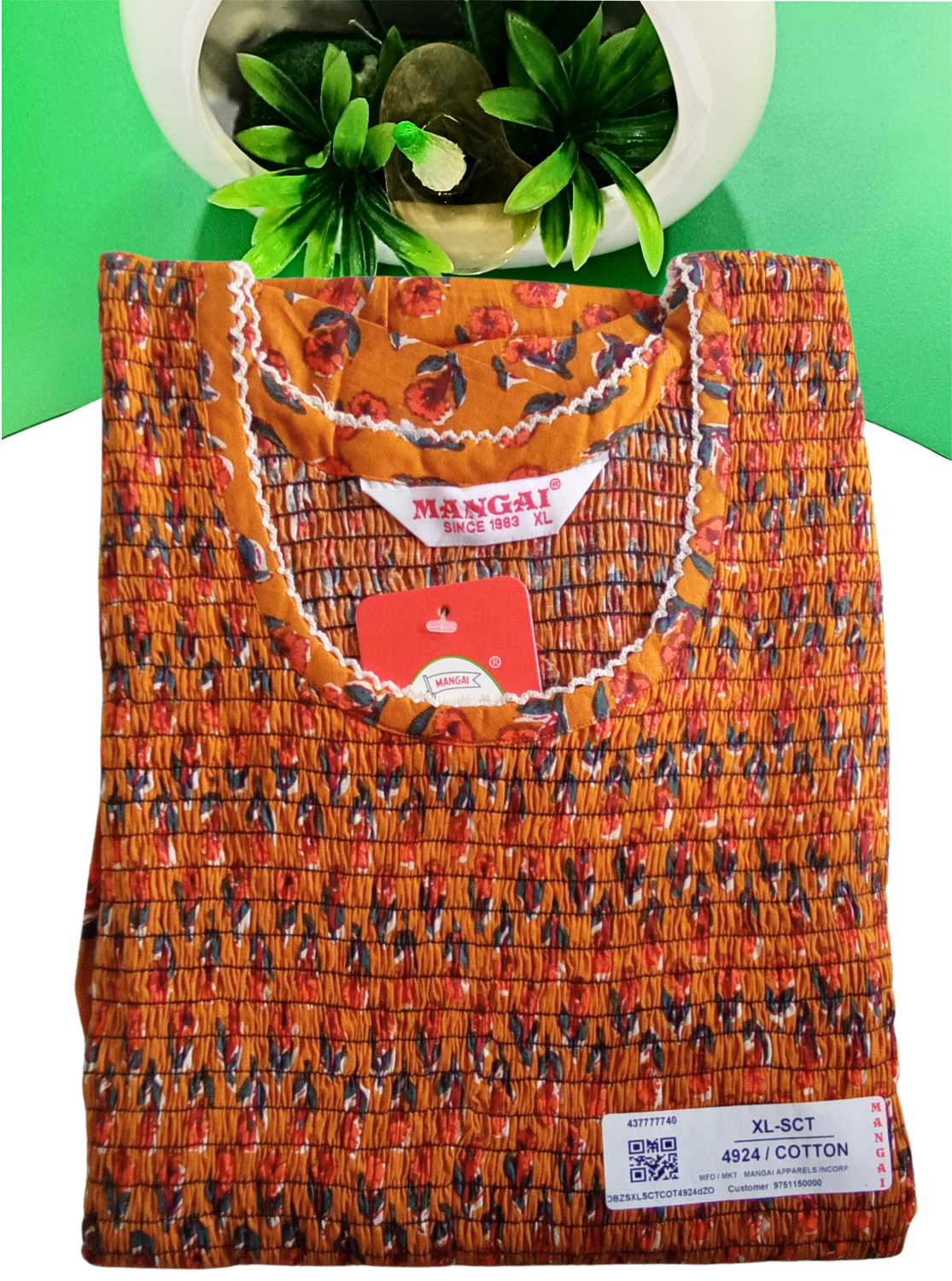 Indulge in ultimate comfort and style with the MANGAI Premium Cotton Printed Smokey Nighty. This exquisite nightwear piece is designed for the modern woman who values both comfort and fashion.