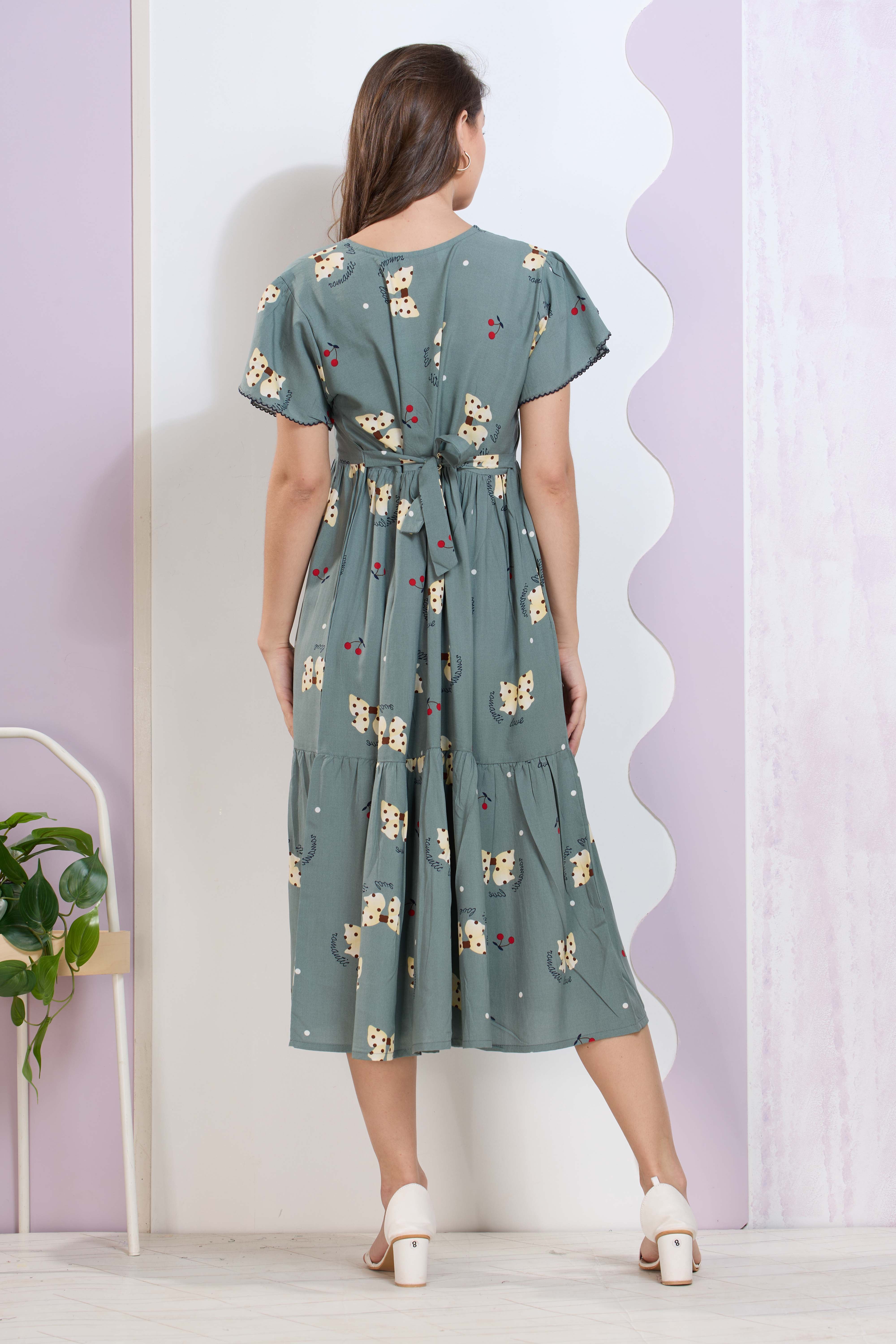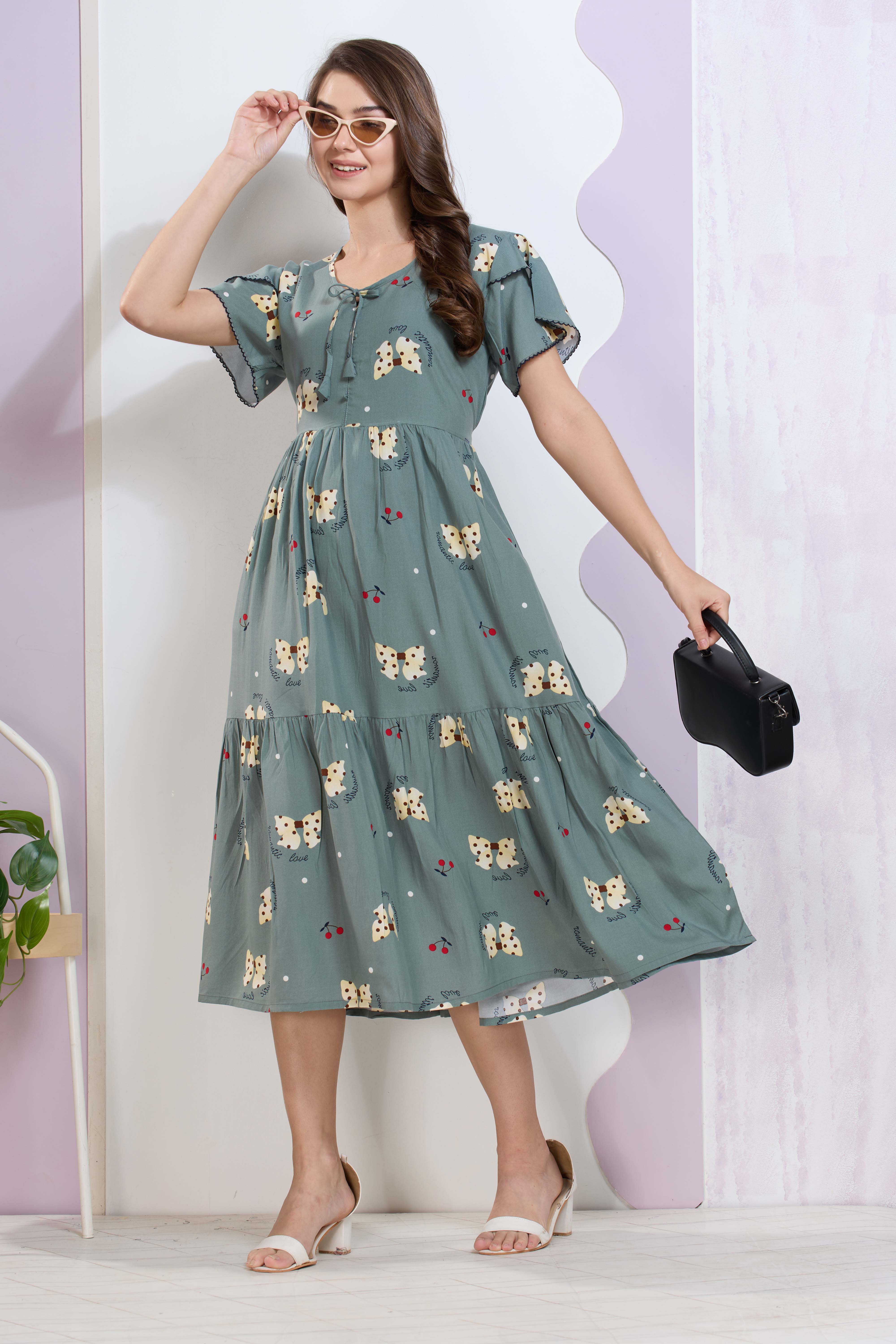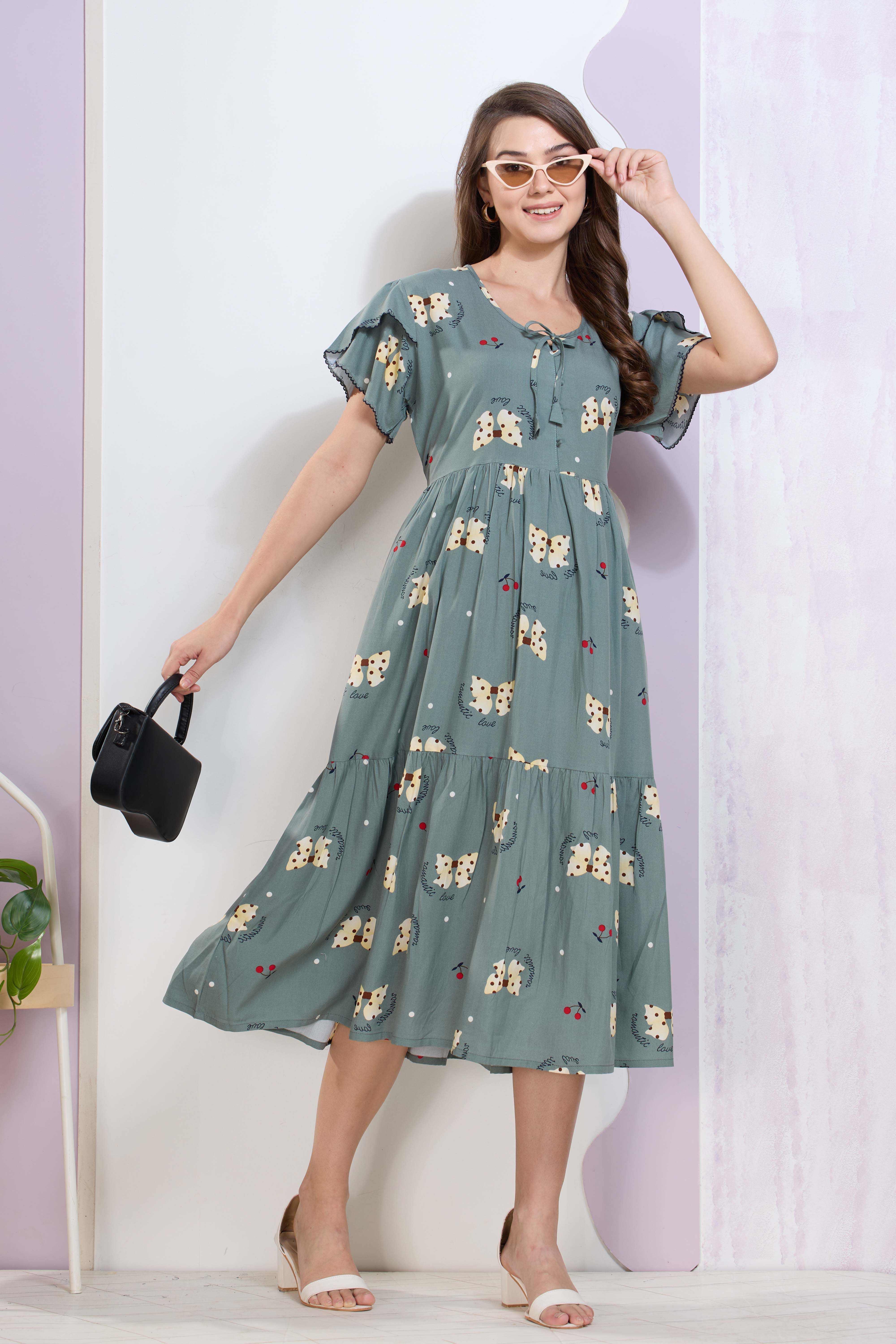 Imported Rayon MAXI FROCK Model Nighties | Fancy Petal Sleeve | Fancy Neck & Side Pocket | Pleated Frock MAXI Style | Trendy Collection's for Stylish Women & Teenage Girl (IRM)