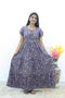 This beautiful full-length nightdress features a graceful 3-layer flared bottom that gives a rich and flowy look. The stylish double layer sleeves add a trendy touch, while the attractive fancy neckline with tie-up detail enhances the overall design.