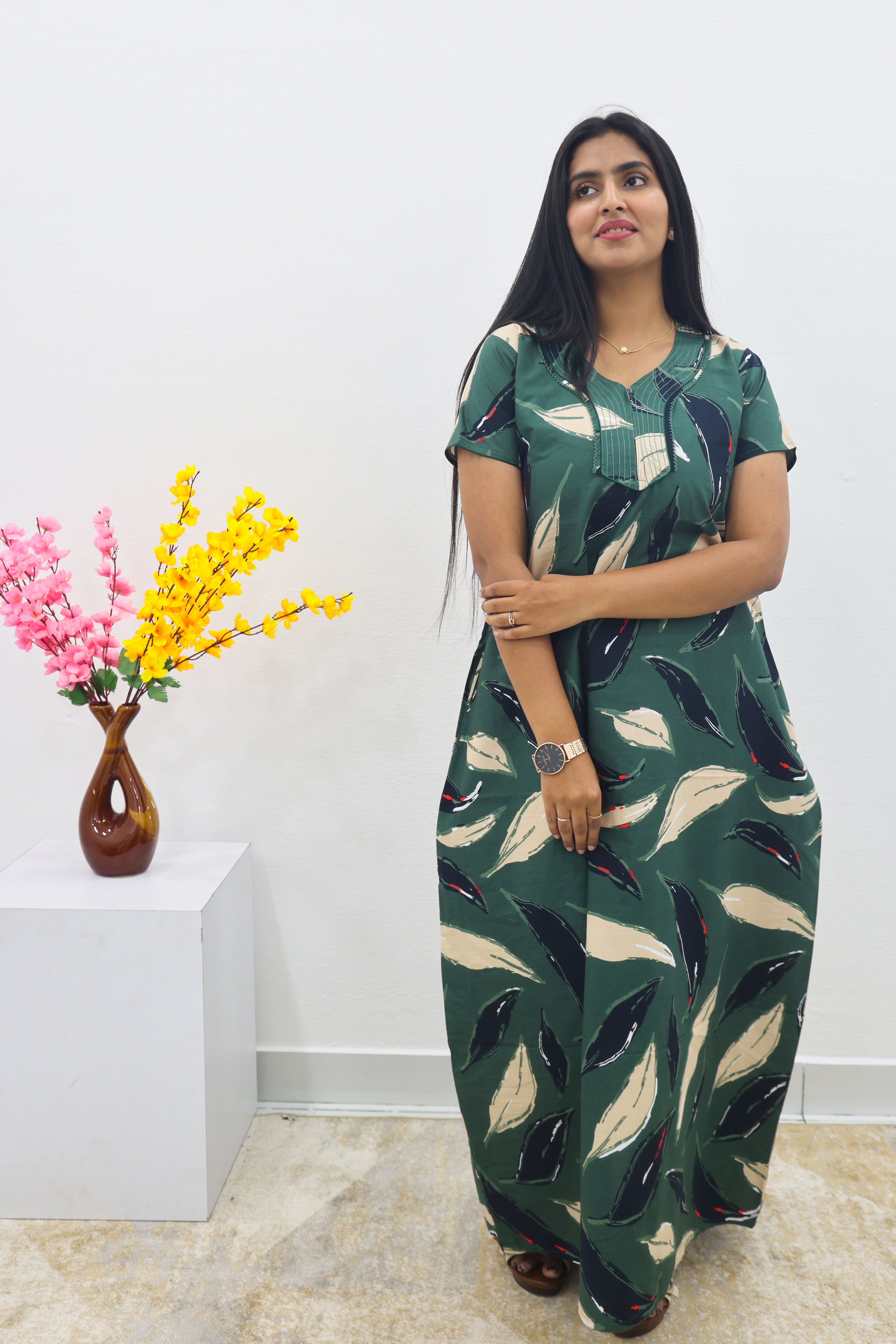 MANGAI New Regular Fit Cotton Printed Nighties - All Over Printed Stylish Nightwear for Stylish Women | Side Cut Pocket | Beautiful Nighties for Stylish Women's | Colourful Printed Cotton Nighties (SLB)